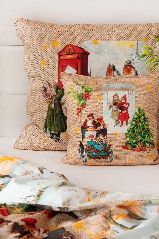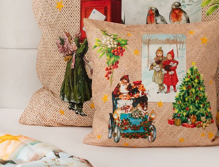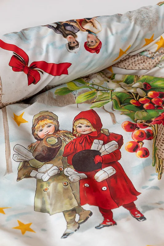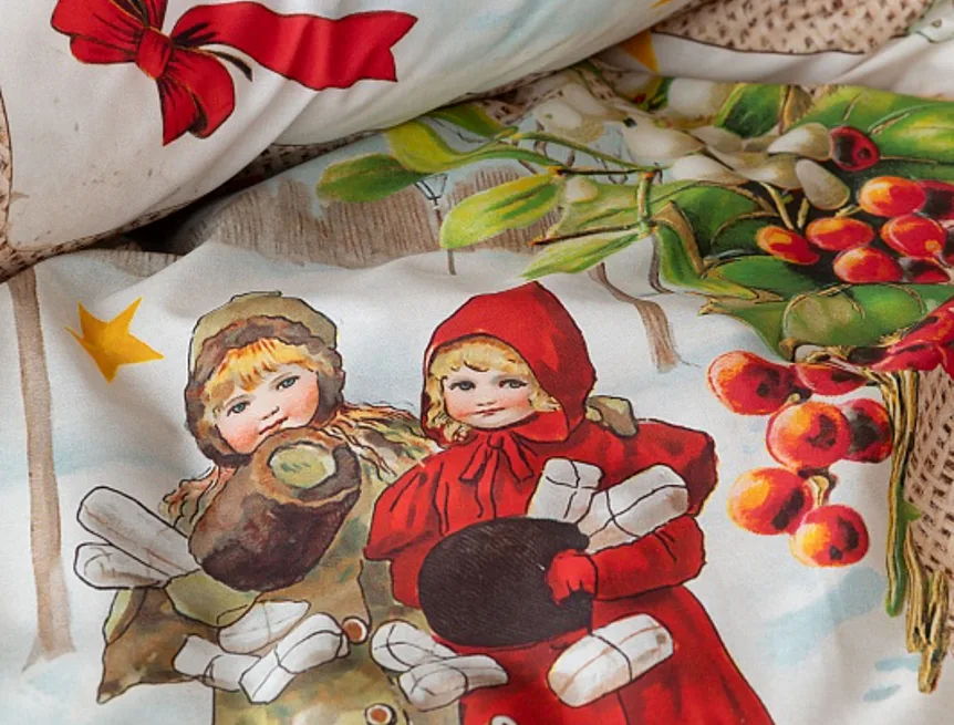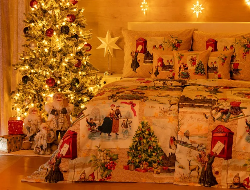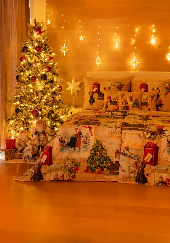 Veselé bavlněné povlečení Christmas Vintage je tím pravým poslem Vánoc. Snad všechny tradiční motivy, které se vám vybaví v souvislosti s těmito kouzelnými svátky, najdete v důmyslně sestavené koláži. Pokud máte smysl pro detail a zalíbení ve vánočních dekoracích, pořiďte si tento sváteční klenot do ložnice i do dětského pokojíčku.