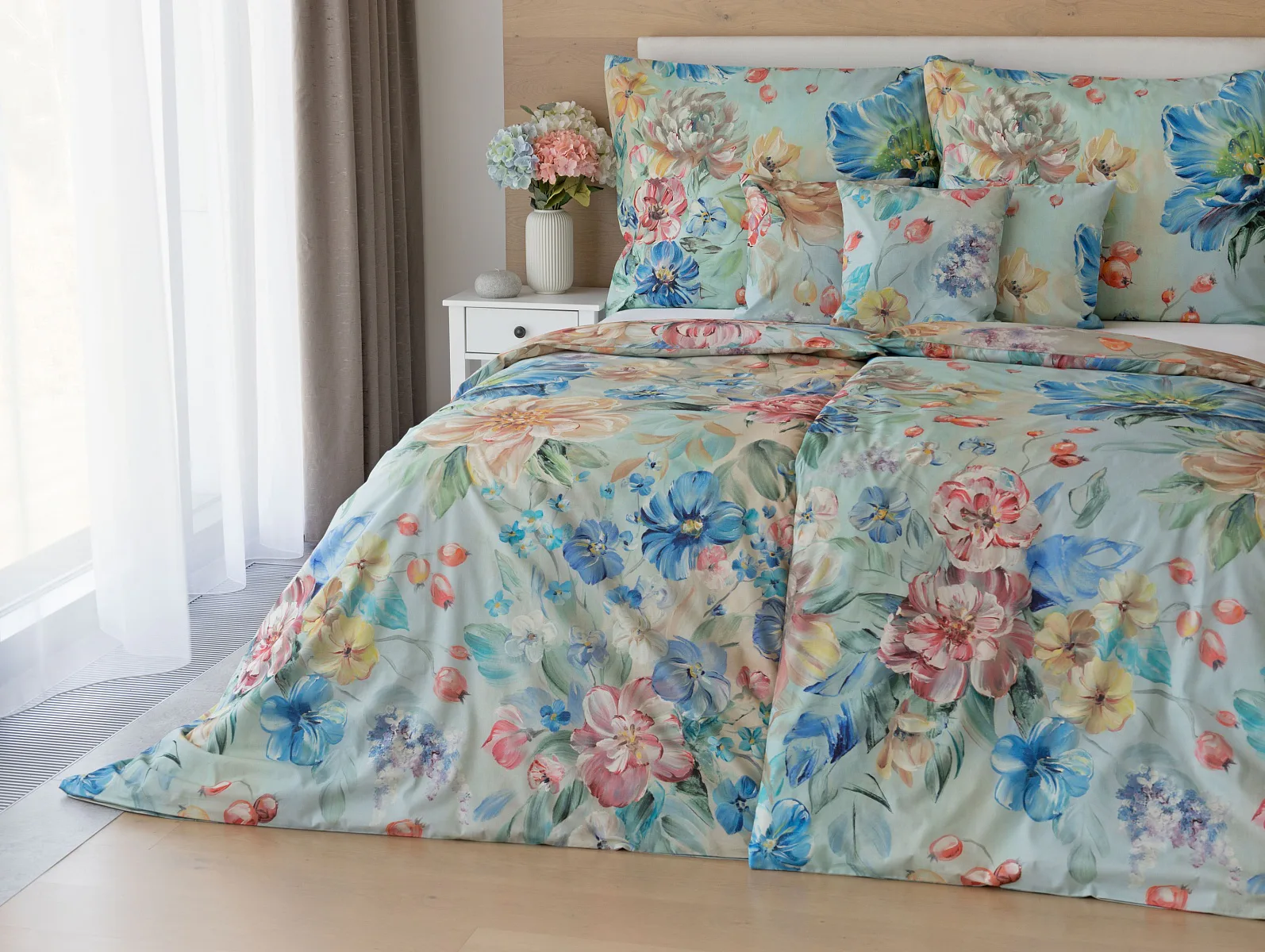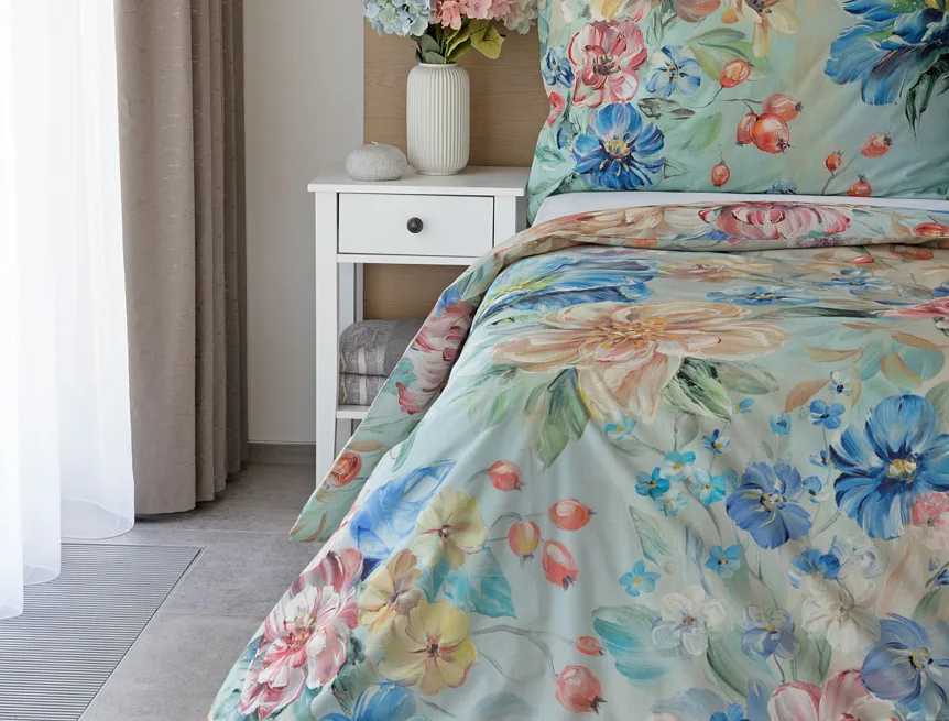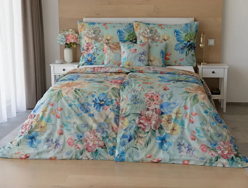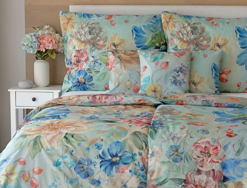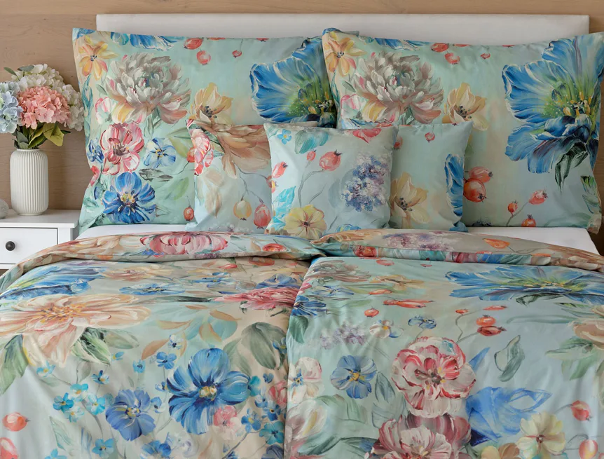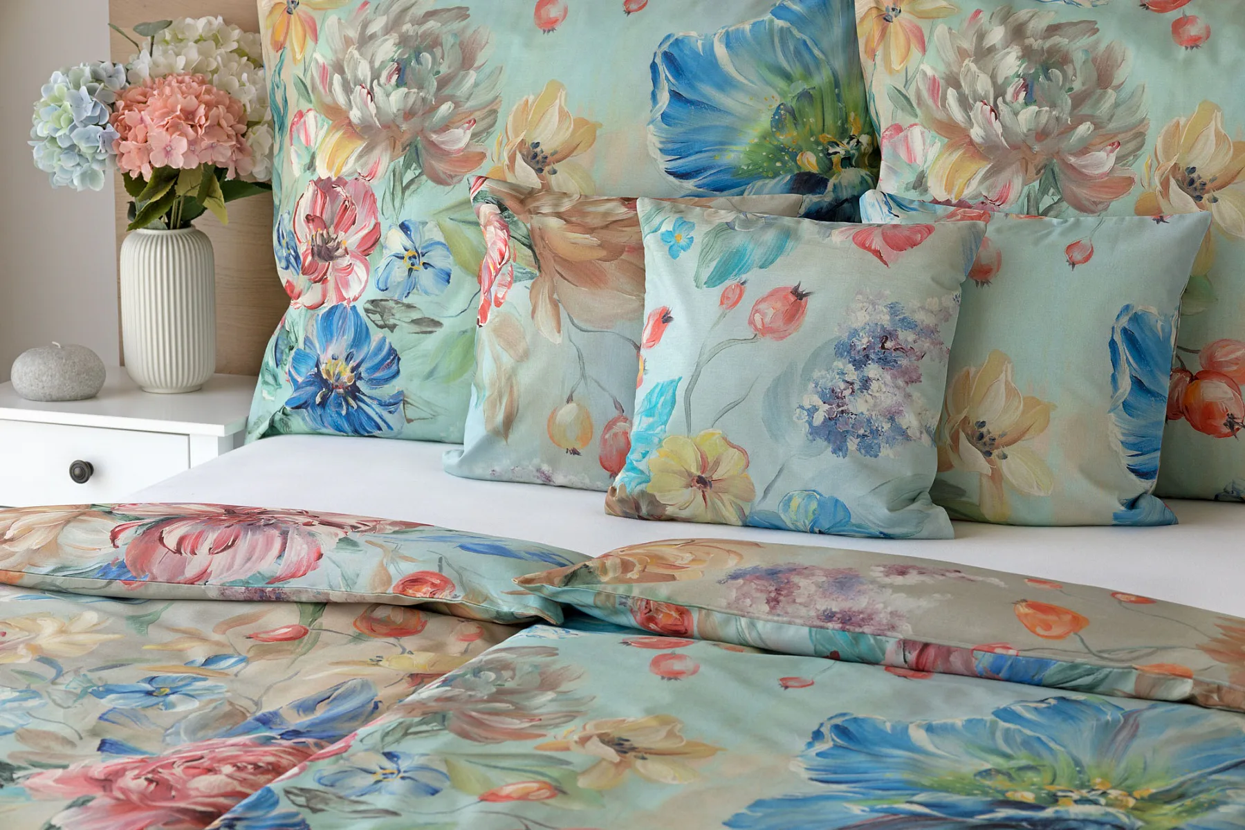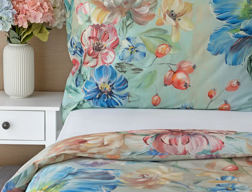 Bavlněné ložní povlečení Clara rozzáří vaši ložnici. Podkladem pestrobarevného květinového motivu se stala originální olejová malba, která i na látce vyniká v precizním detailu díky nejmodernějšímu digitálnímu tisku.