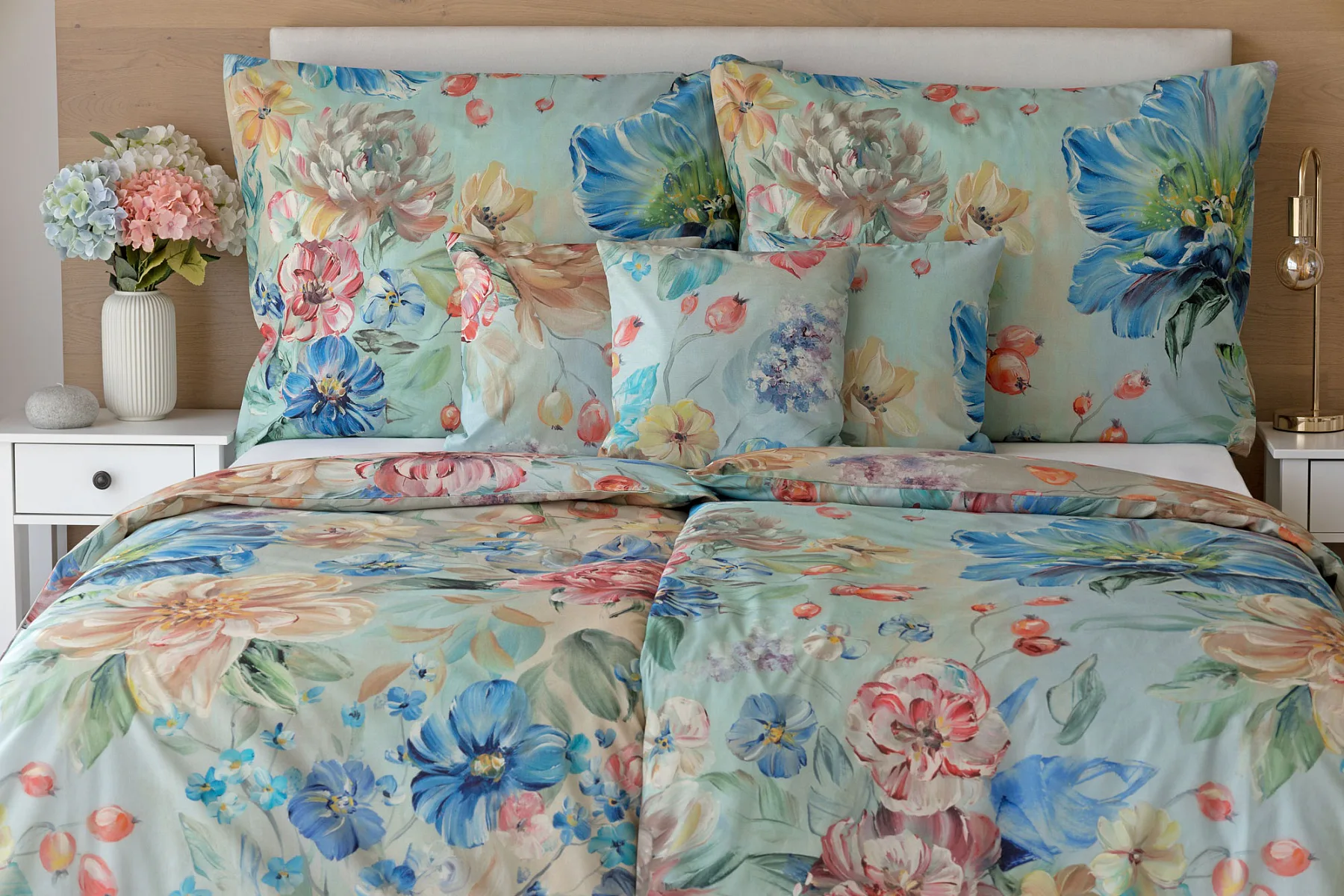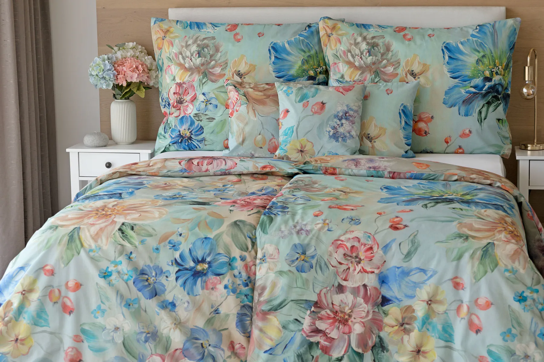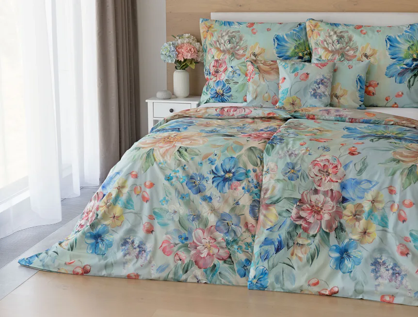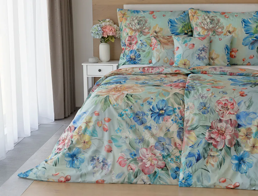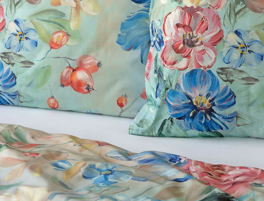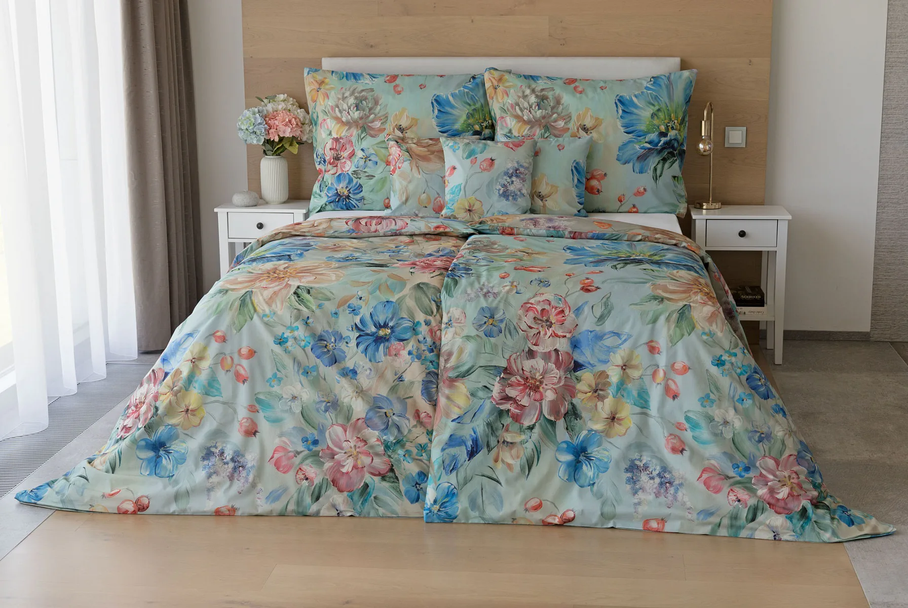 Bavlněné ložní povlečení Clara rozzáří vaši ložnici. Podkladem pestrobarevného květinového motivu se stala originální olejová malba, která i na látce vyniká v precizním detailu díky nejmodernějšímu digitálnímu tisku.
