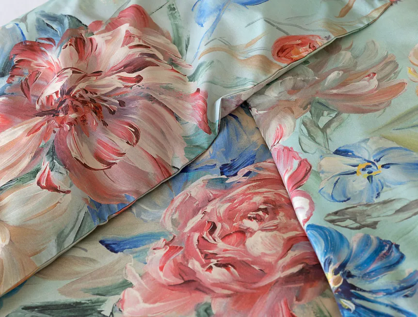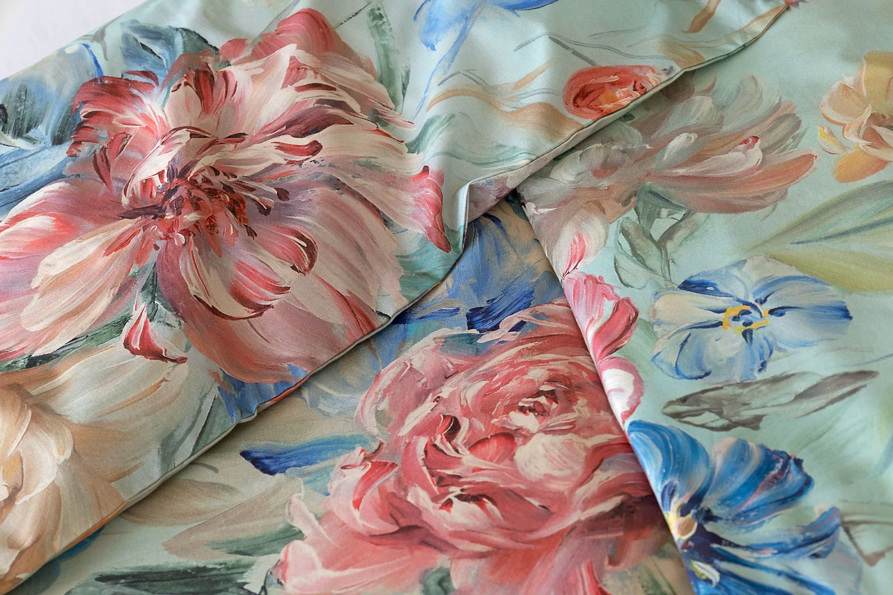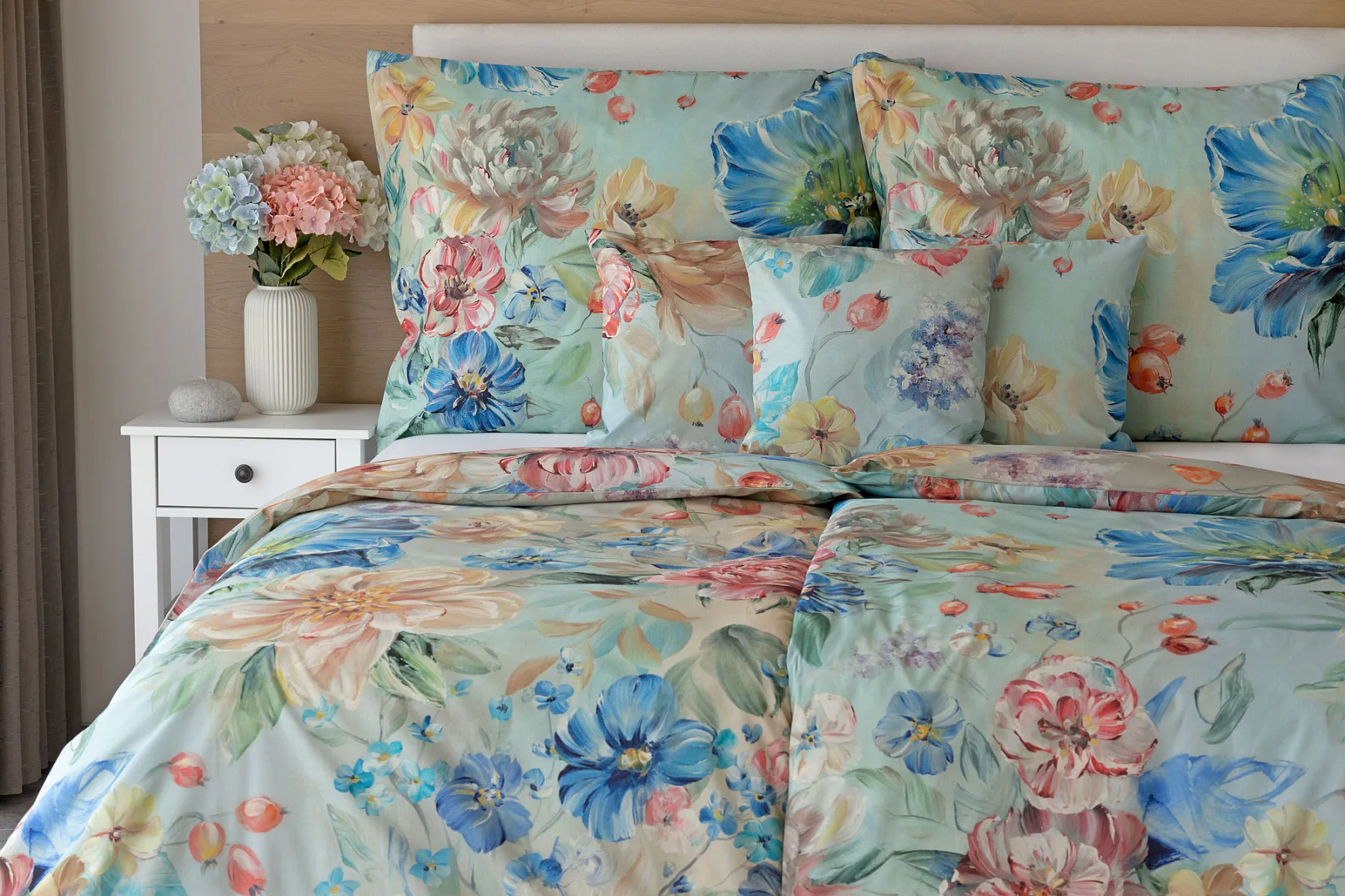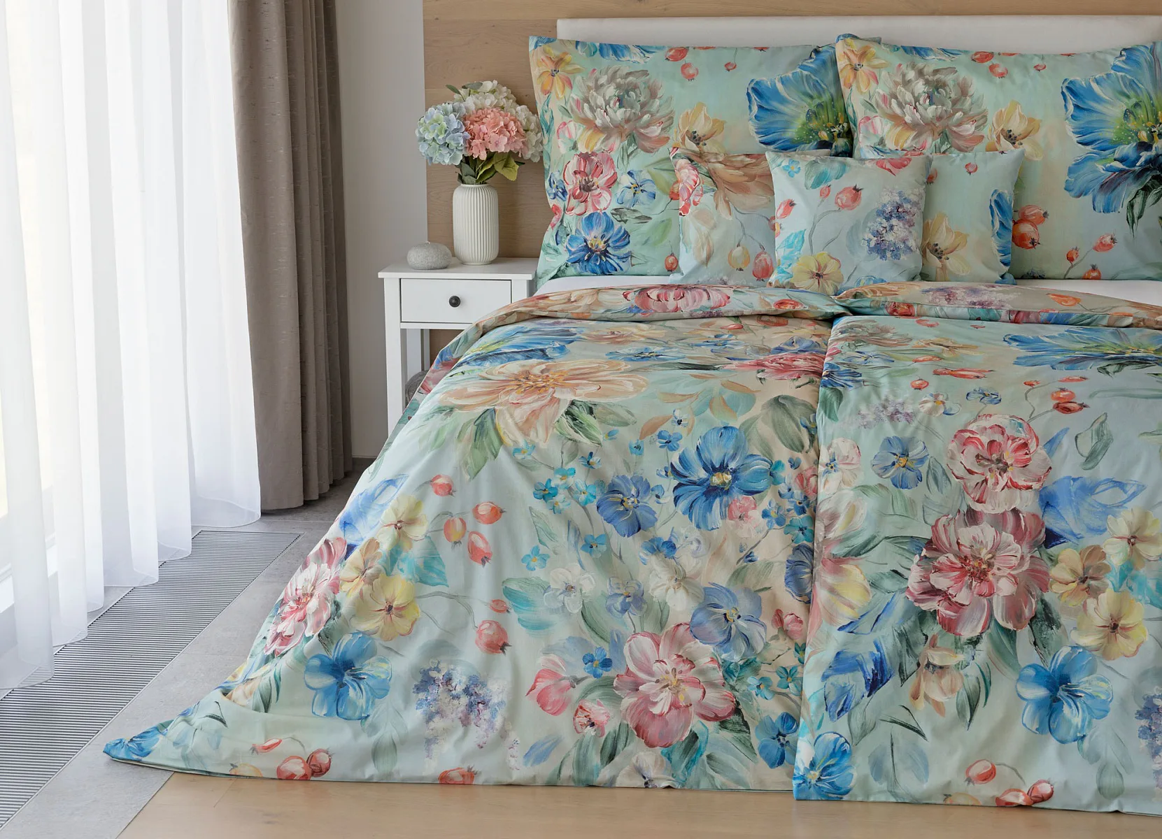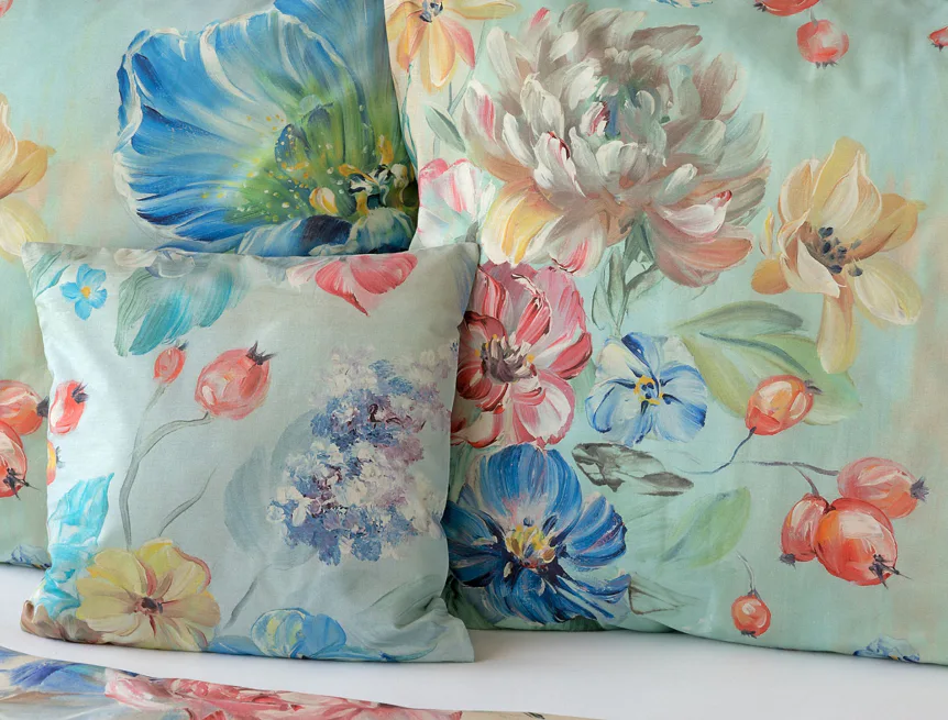 Bavlněné ložní povlečení Clara rozzáří vaši ložnici. Podkladem pestrobarevného květinového motivu se stala originální olejová malba, která i na látce vyniká v precizním detailu díky nejmodernějšímu digitálnímu tisku.