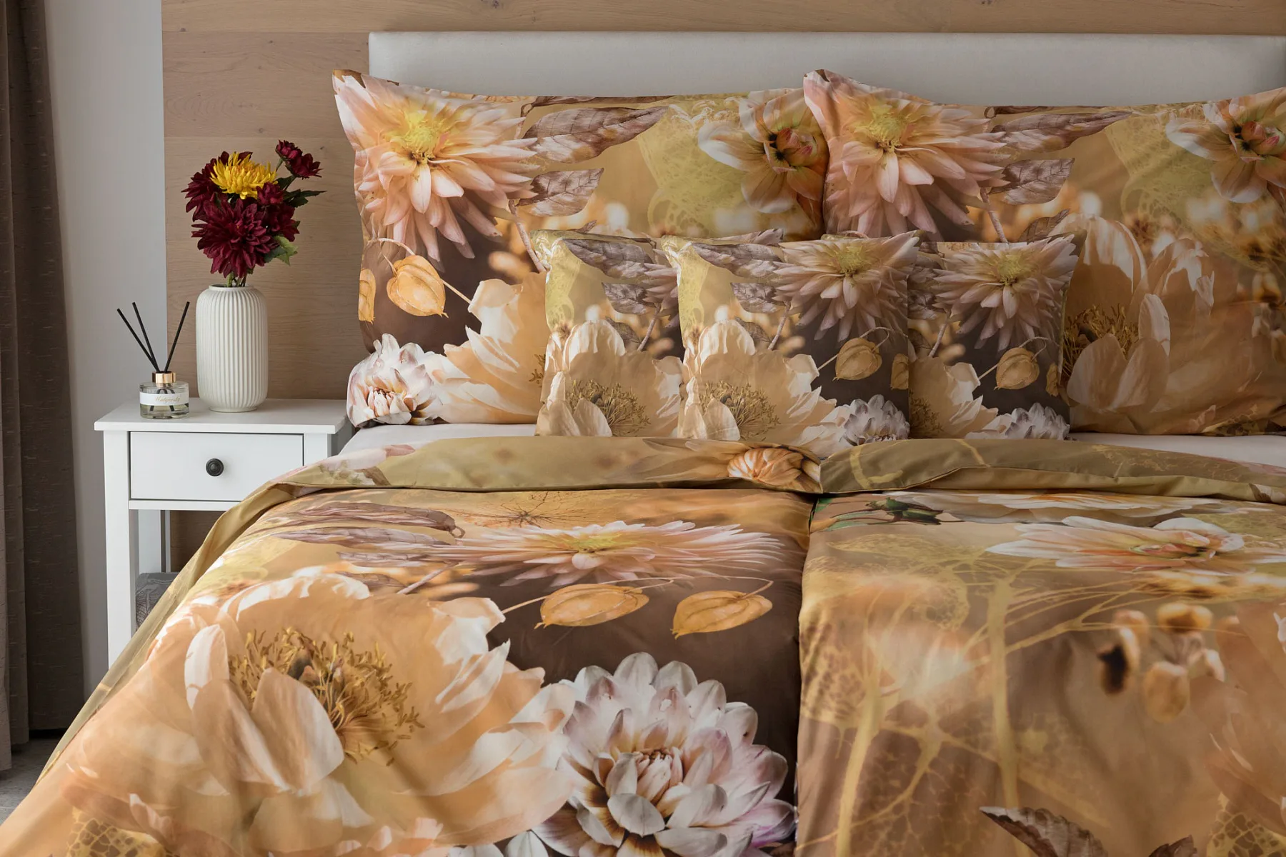 Svěží vůni květů neucítíte, ale všemi ostatními smysly můžete vnímat kouzlo přírody s ložním povlečením Daniela. Impozantní květinový vzor upoutá zrak, vyvolá chuť se zachumlat a poslechnout si ticho noci. Dotek hebké výběrové bavlny se postará o váš spokojený spánek.
