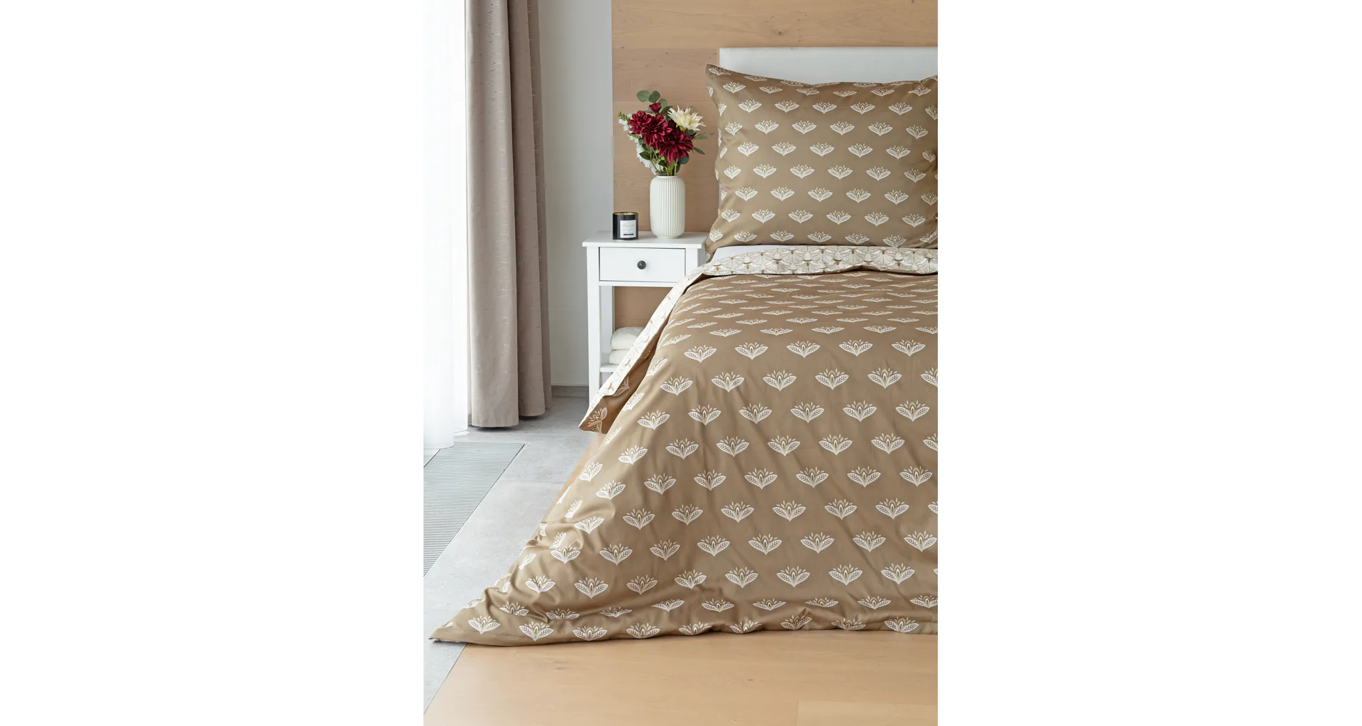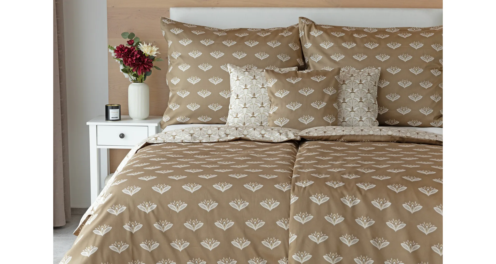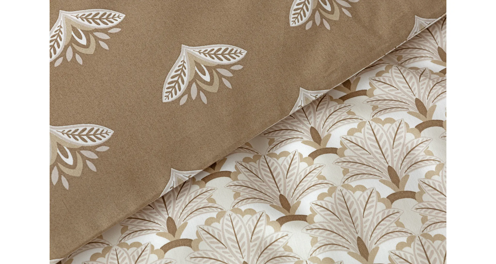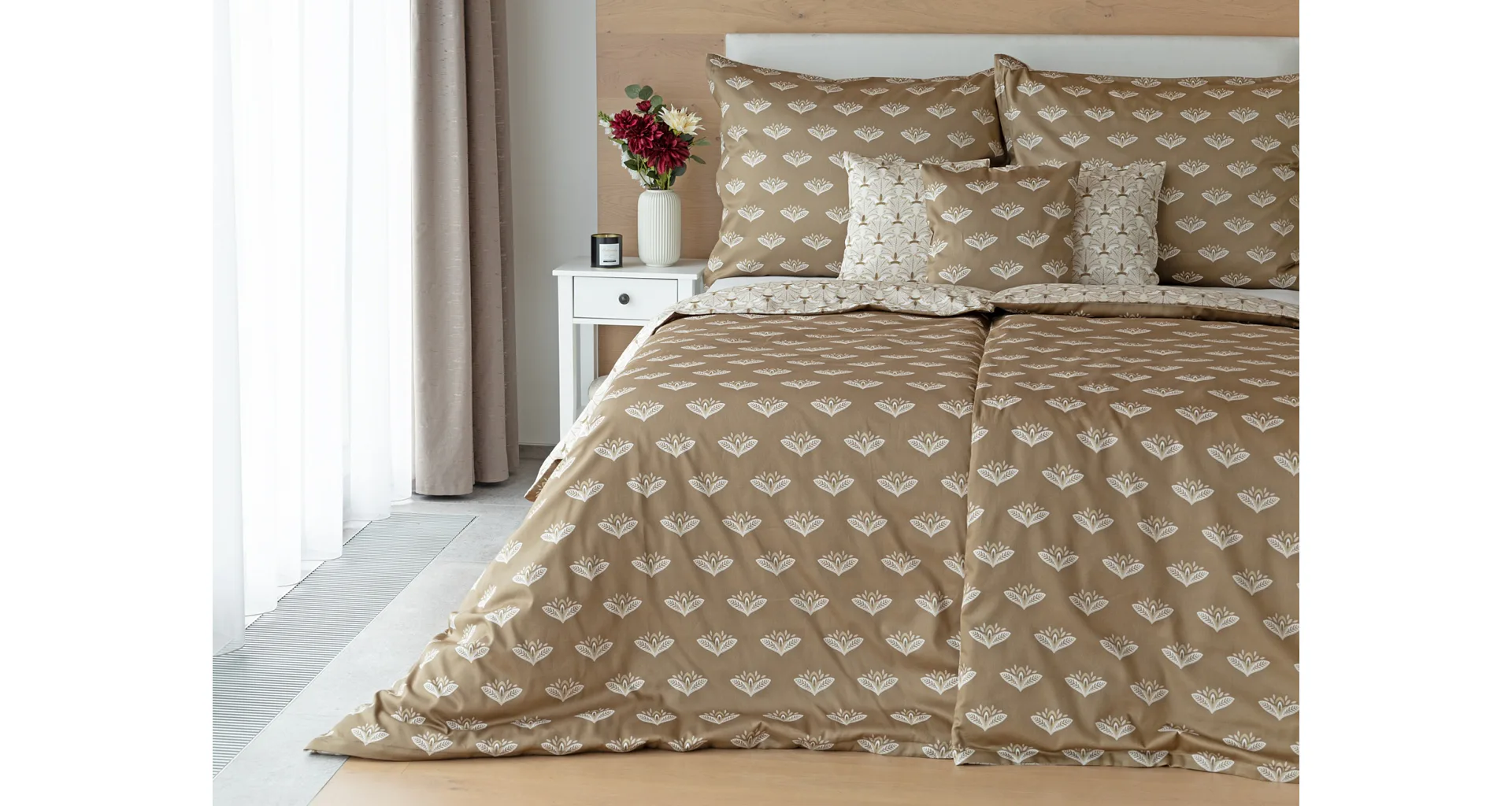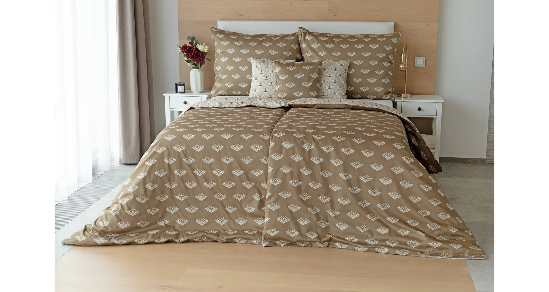 Elegantní saténové povlečení Dario se stane klenotem vaší ložnice. Noblesní vějířový vzor v kombinaci krémově bílé s tmavě bronzovou vyniká z každé strany povlečení na jiném podkladu. Díky tomuto oblíbenému oboustrannému provedení můžete při stlaní hravě experimentovat! O vaše pohodlí se postará hebký bavlněný satén vyrobený ze 100% prvotřídní bavlny.
