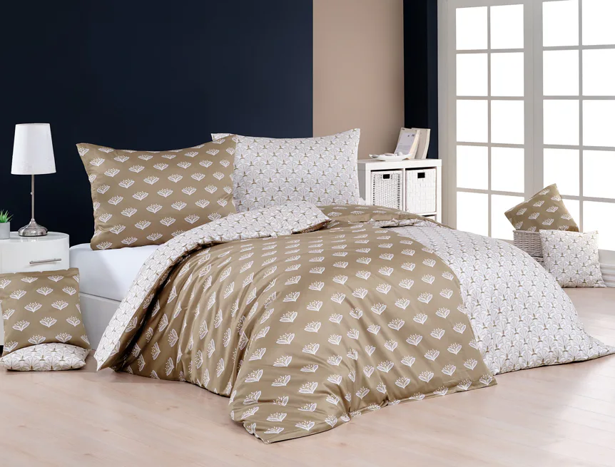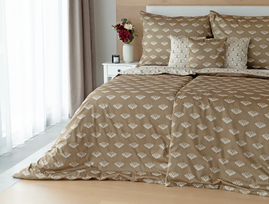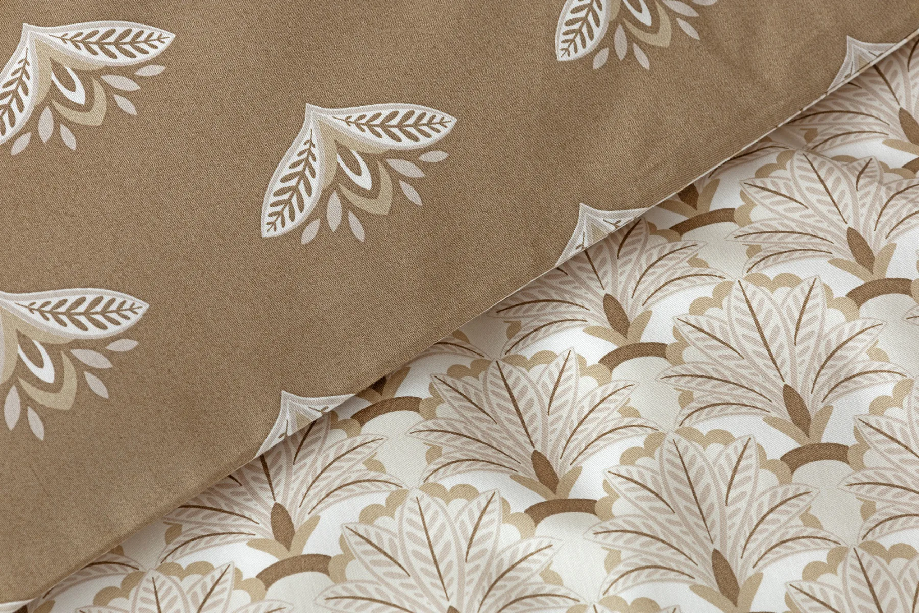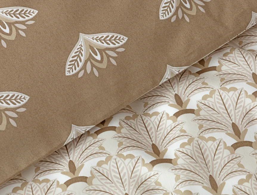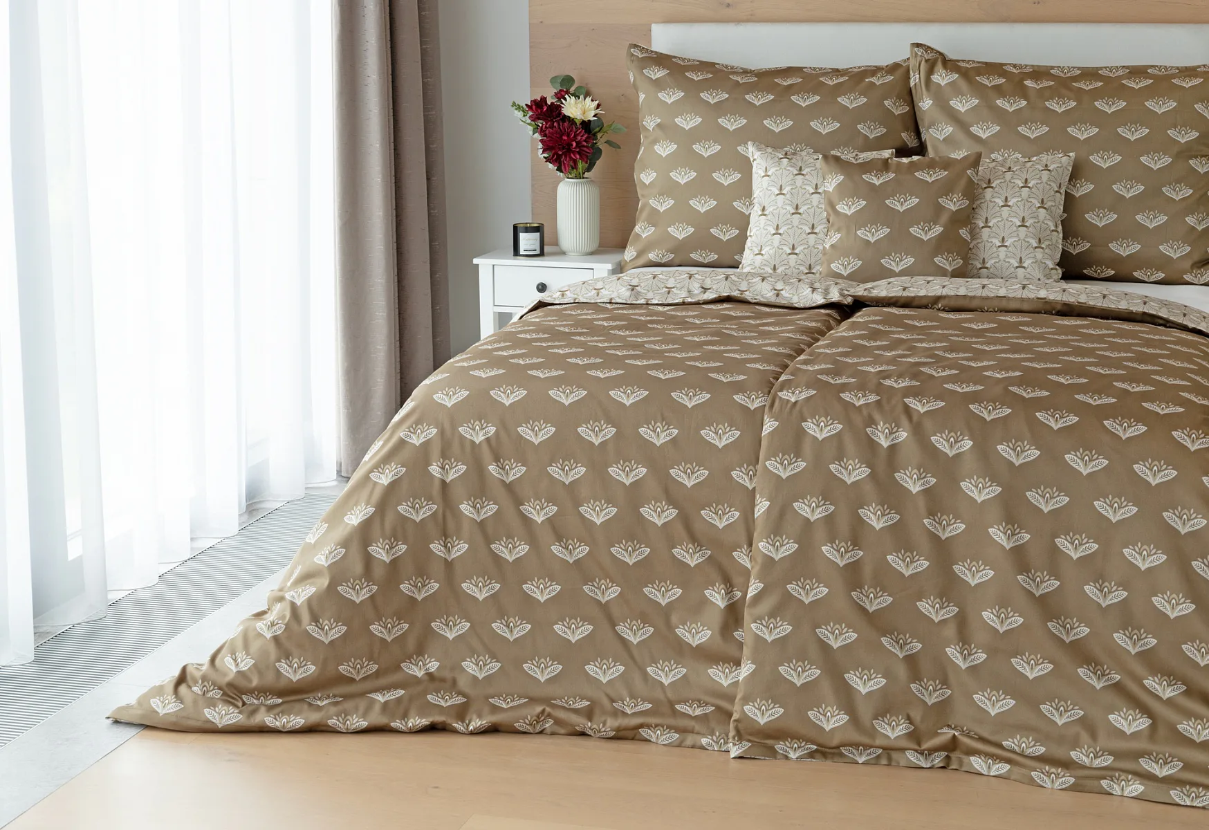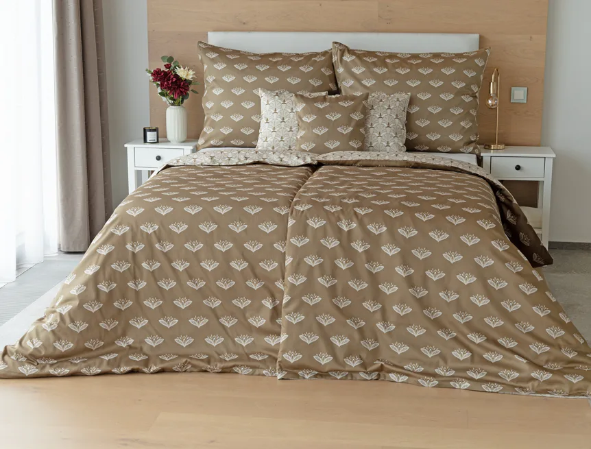 Elegantní saténové povlečení Dario se stane klenotem vaší ložnice. Noblesní vějířový vzor v kombinaci krémově bílé s tmavě bronzovou vyniká z každé strany povlečení na jiném podkladu. Díky tomuto oblíbenému oboustrannému provedení můžete při stlaní hravě experimentovat! O vaše pohodlí se postará hebký bavlněný satén vyrobený ze 100% prvotřídní bavlny.