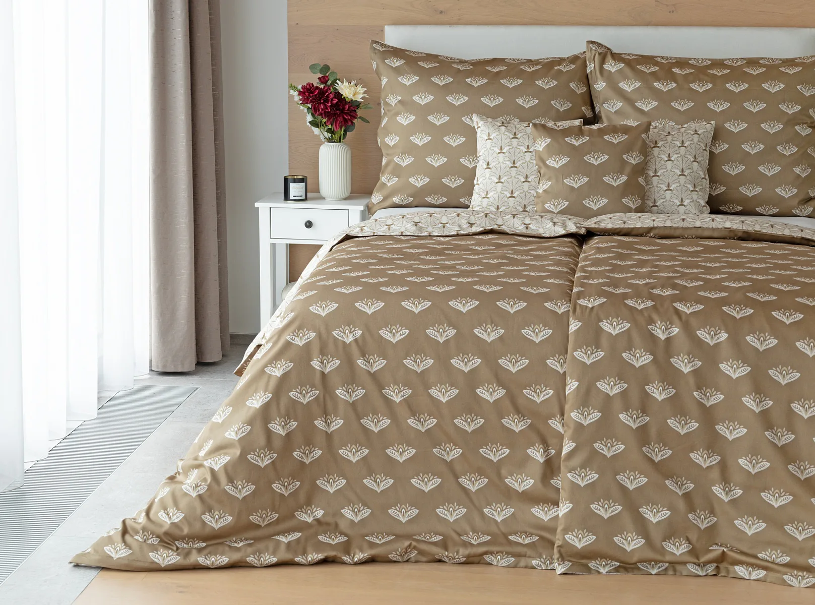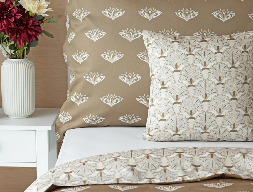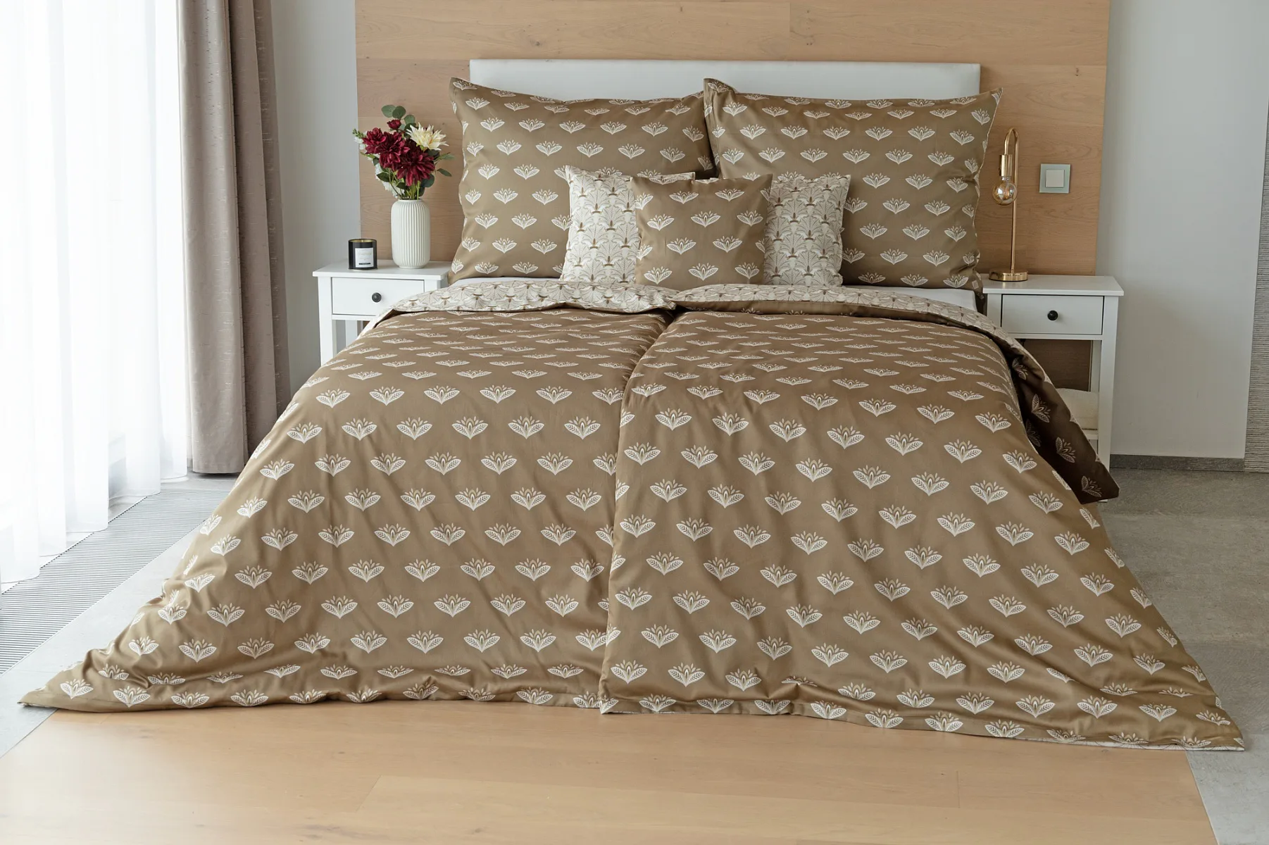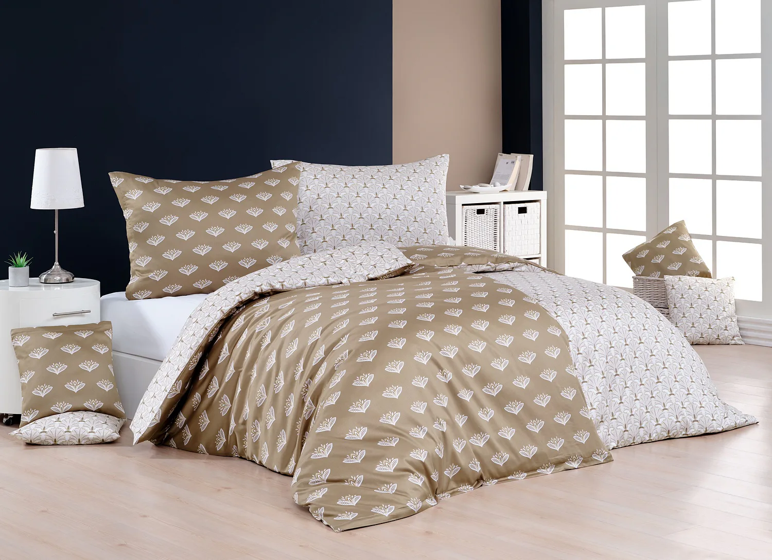 Elegantní saténové povlečení Dario se stane klenotem vaší ložnice. Noblesní vějířový vzor v kombinaci krémově bílé s tmavě bronzovou vyniká z každé strany povlečení na jiném podkladu. Díky tomuto oblíbenému oboustrannému provedení můžete při stlaní hravě experimentovat! O vaše pohodlí se postará hebký bavlněný satén vyrobený ze 100% prvotřídní bavlny.