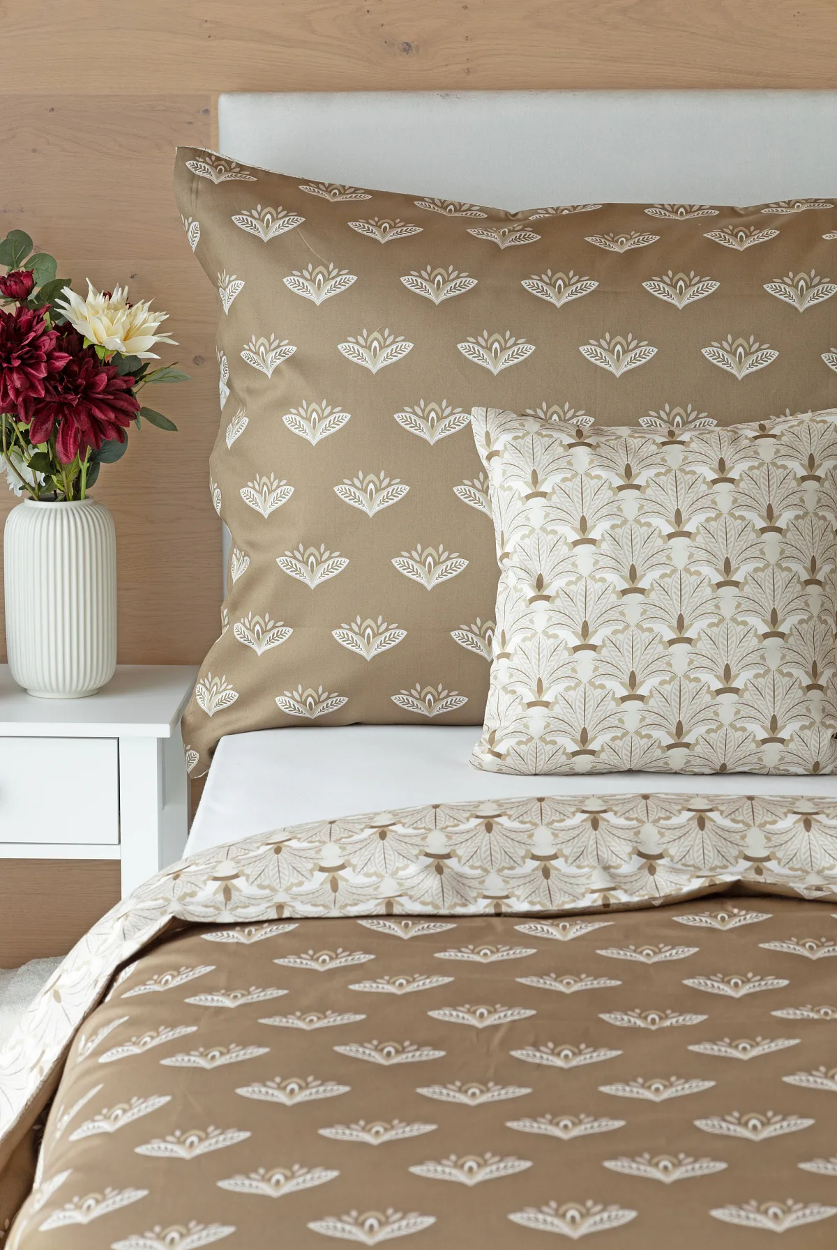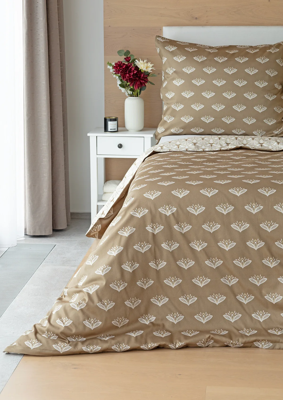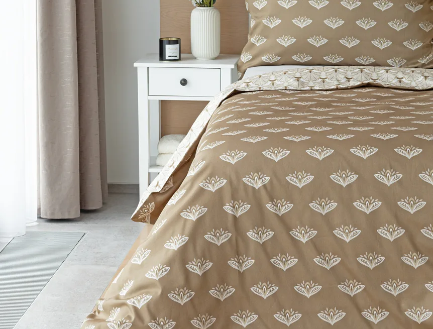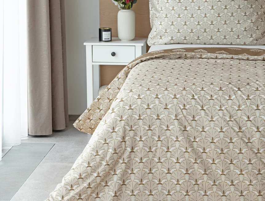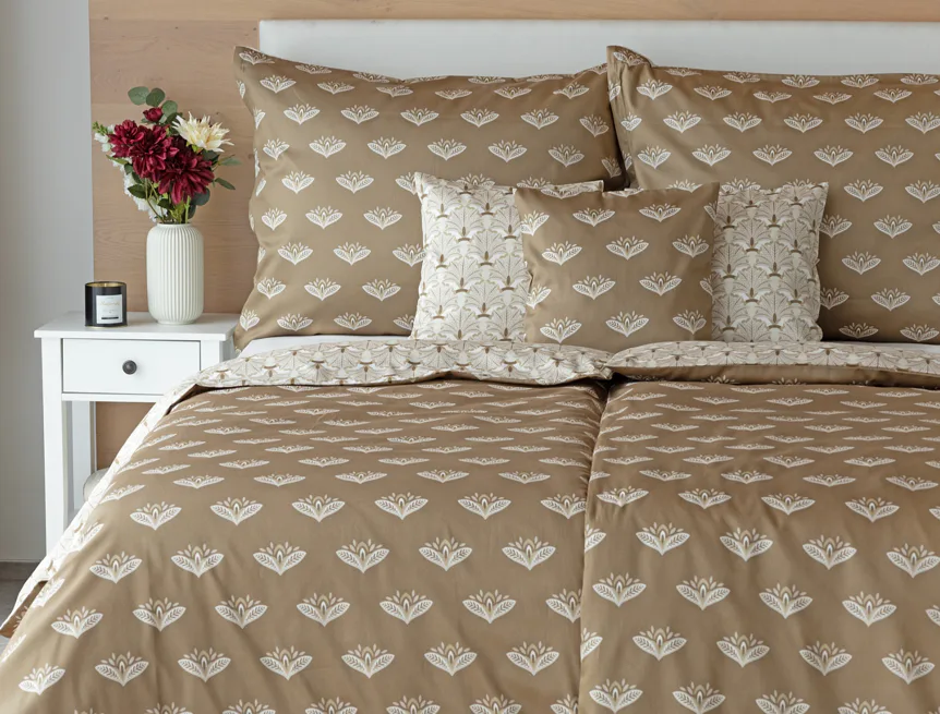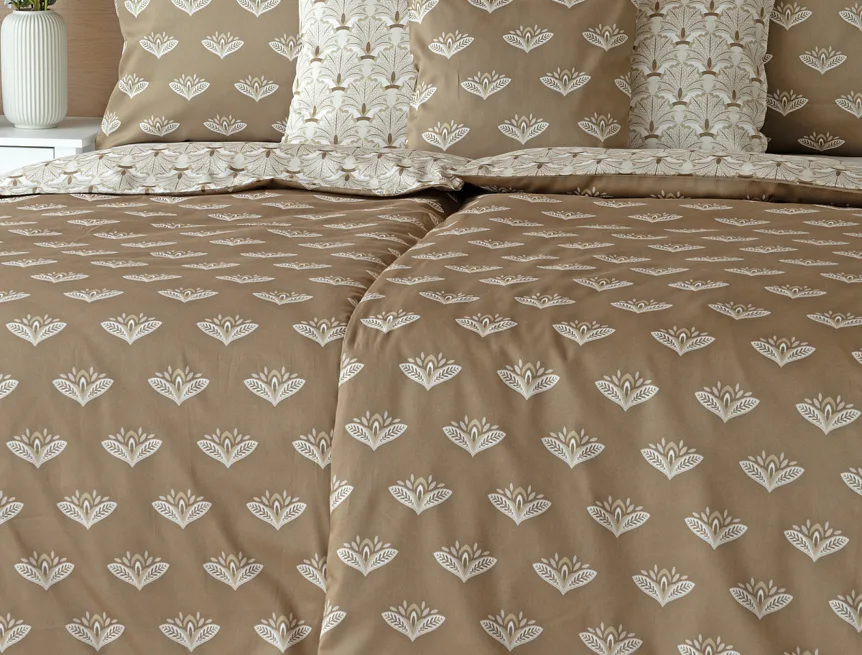 Elegantní saténové povlečení Dario se stane klenotem vaší ložnice. Noblesní vějířový vzor v kombinaci krémově bílé s tmavě bronzovou vyniká z každé strany povlečení na jiném podkladu. Díky tomuto oblíbenému oboustrannému provedení můžete při stlaní hravě experimentovat! O vaše pohodlí se postará hebký bavlněný satén vyrobený ze 100% prvotřídní bavlny.