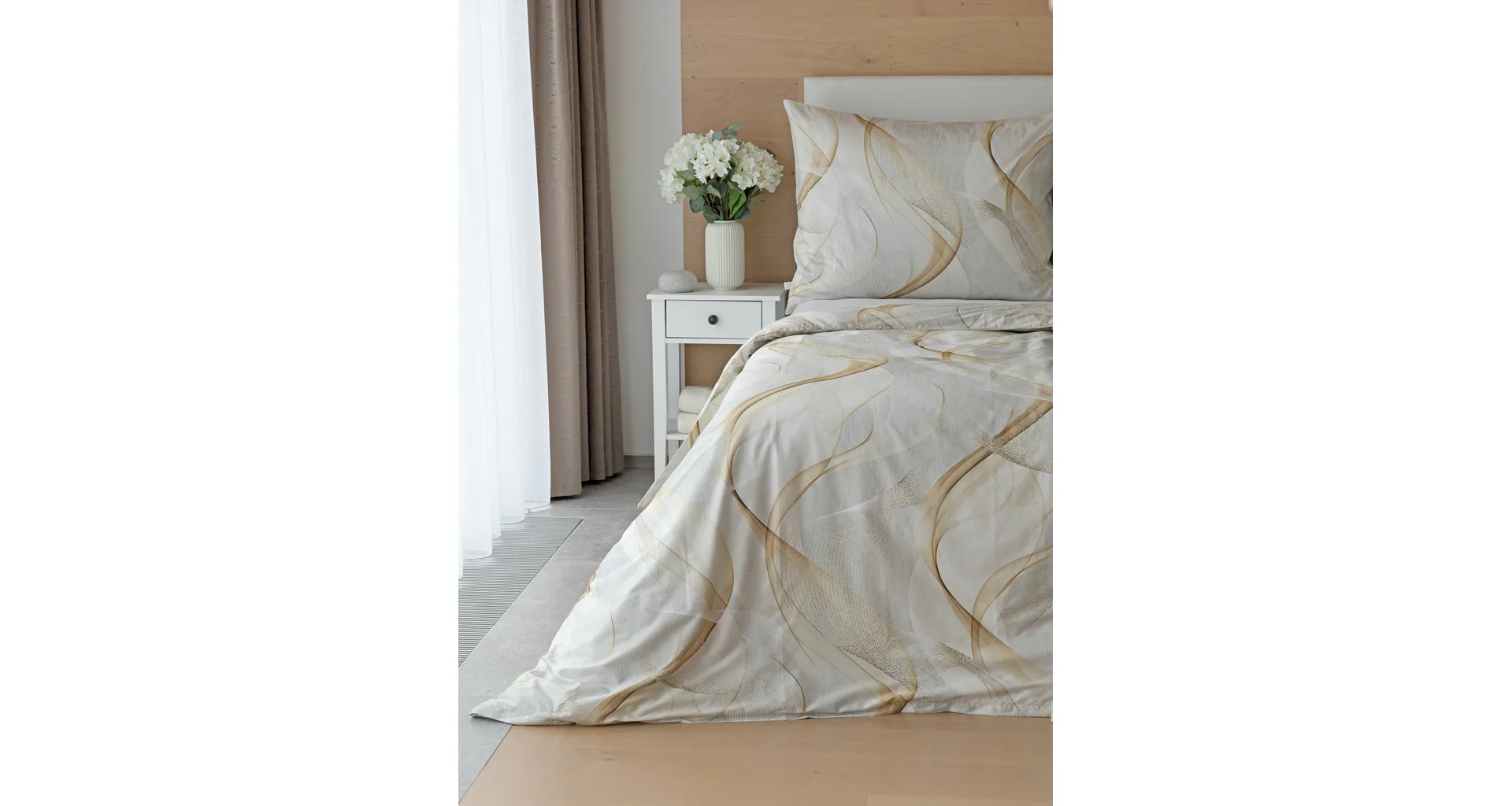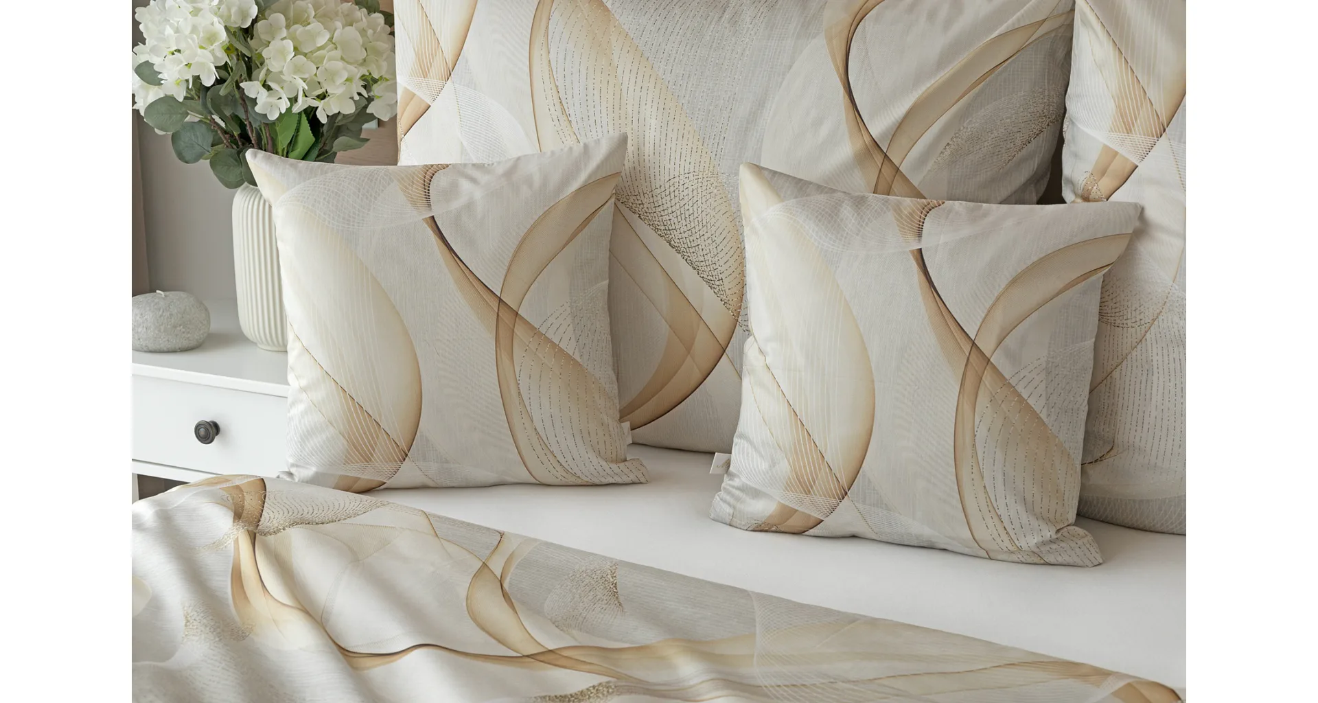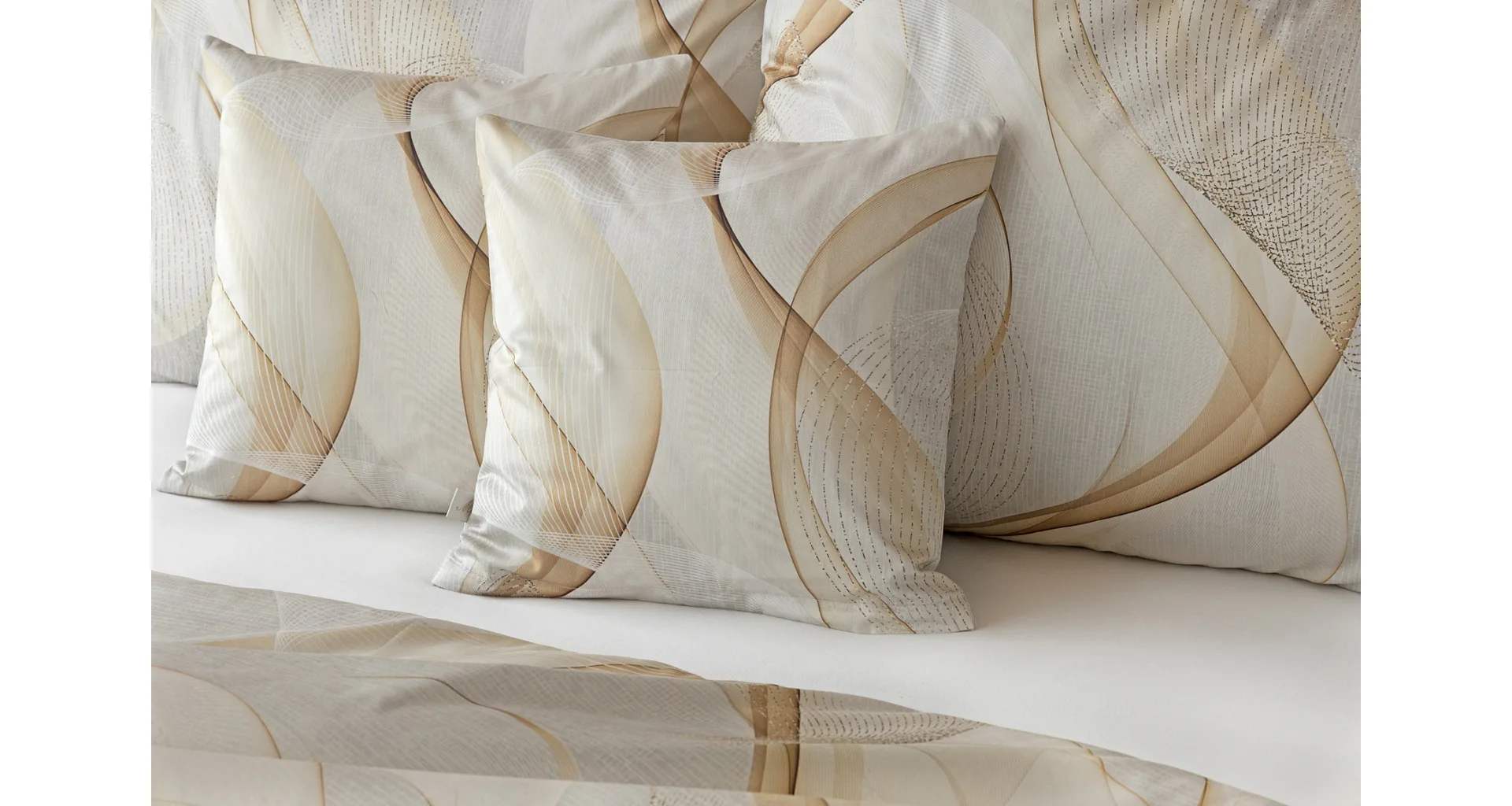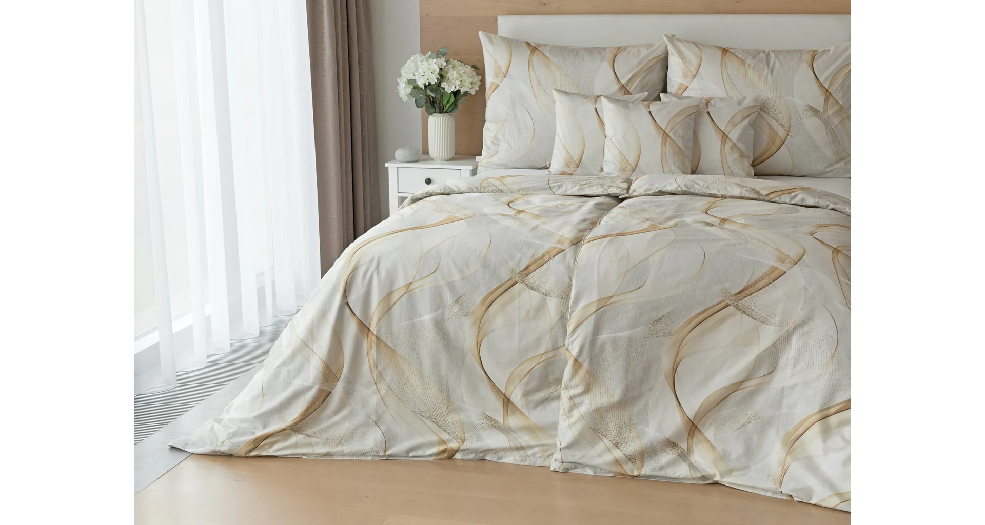 Povlečení Delight zdobí jemný geometrický vzor v podobě bílých a zlatavých nepravidelných vlnek na světle šedém podkladu. Povlak na polštář i na přikrývku je z obou stran stejný, povlečení je opatřeno komfortním zipovým uzávěrem.