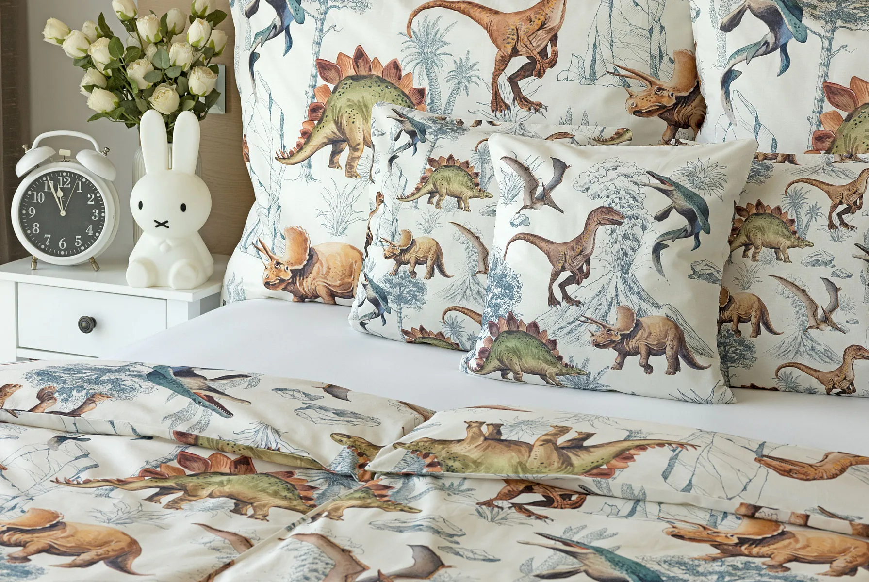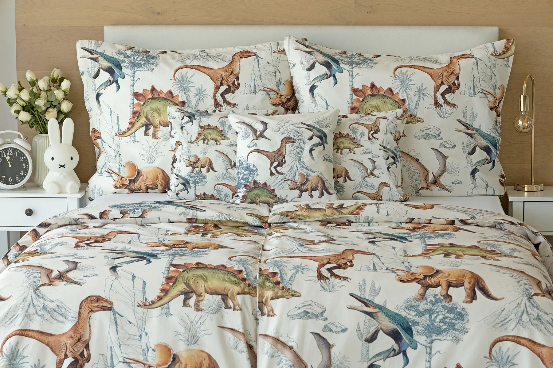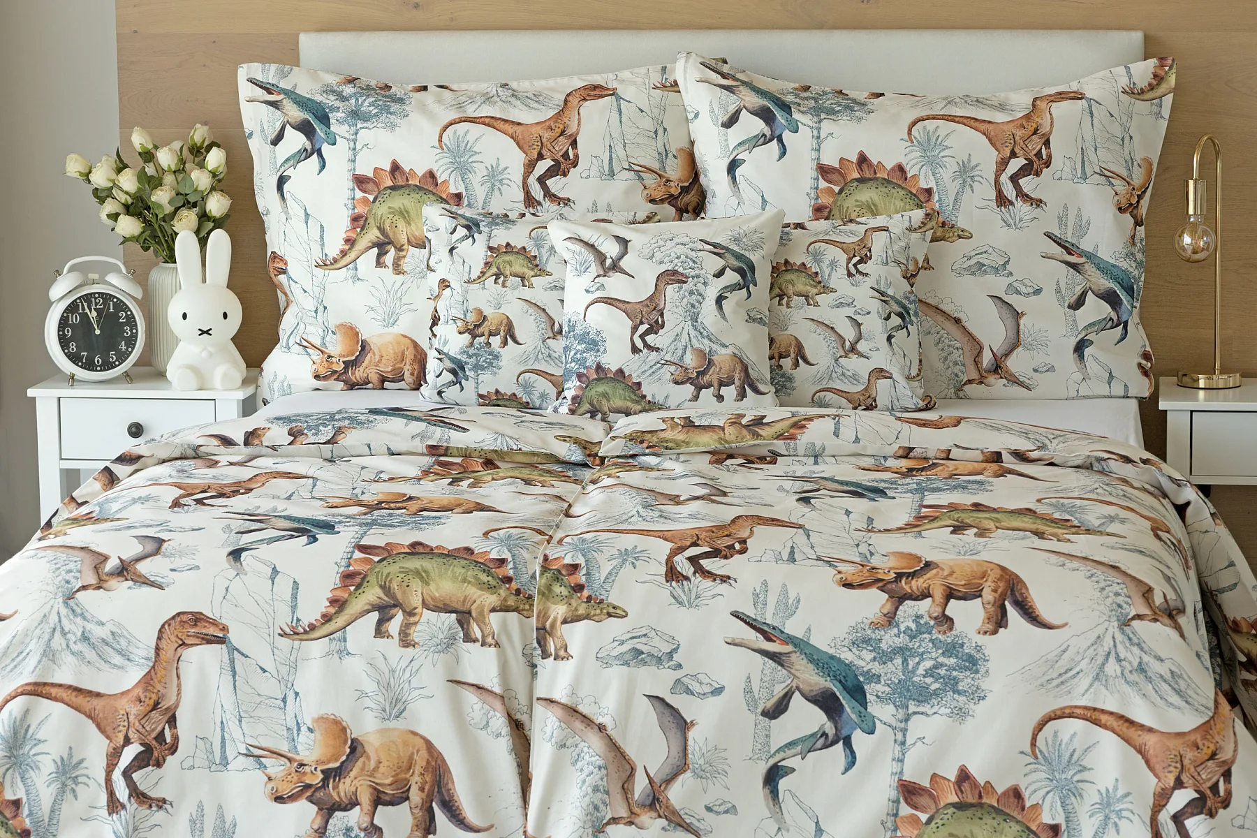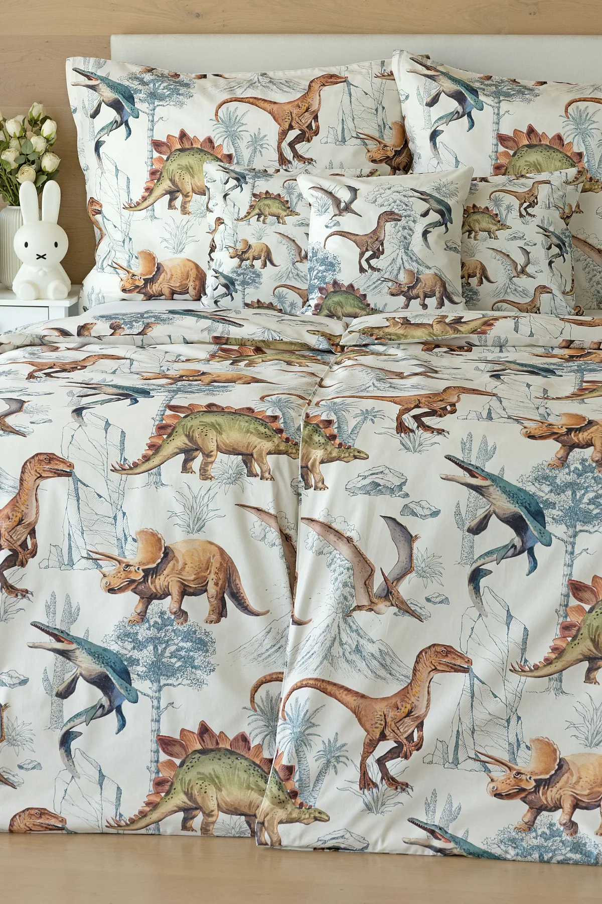Bavlněné povlečení Dino Land potěší všechny malé i větší milovníky jurského období. Originální design je díky neutrální kombinaci barev vhodný do dívčího i chlapeckého pokoje. O jejich spokojený spánek se postará hebká prvotřídní bavlna.