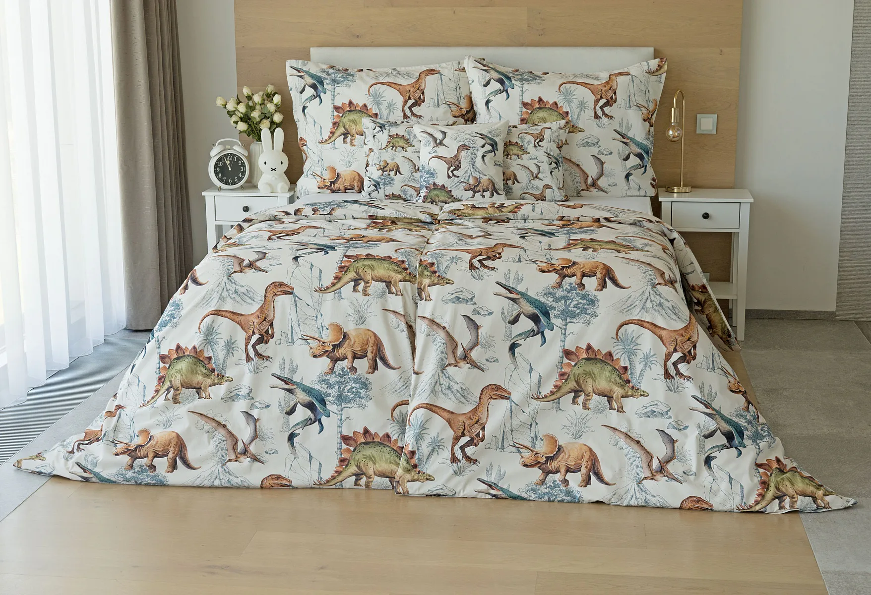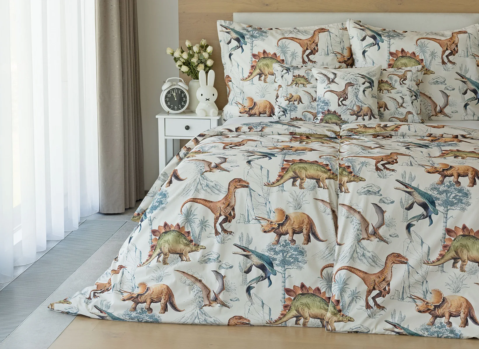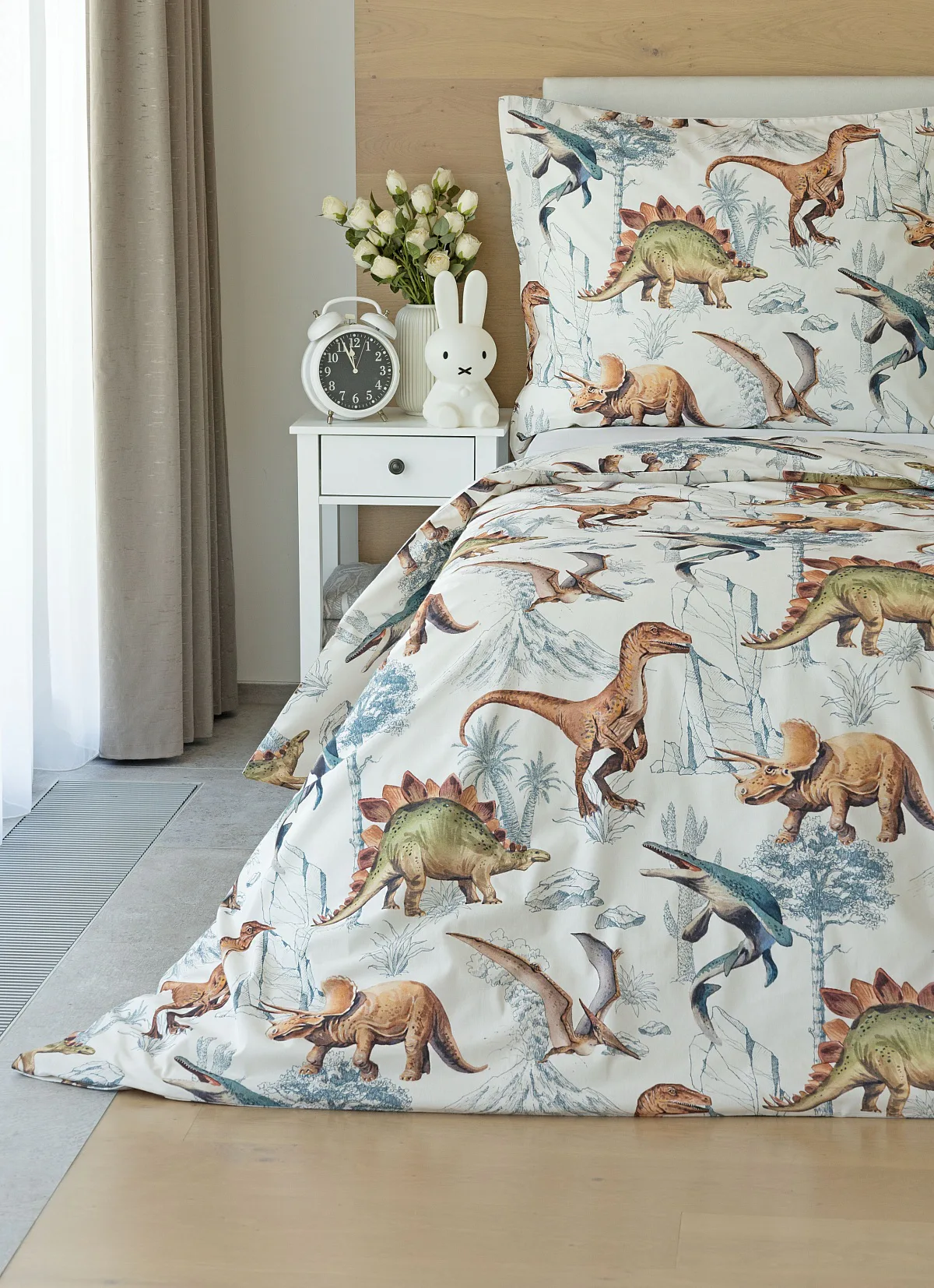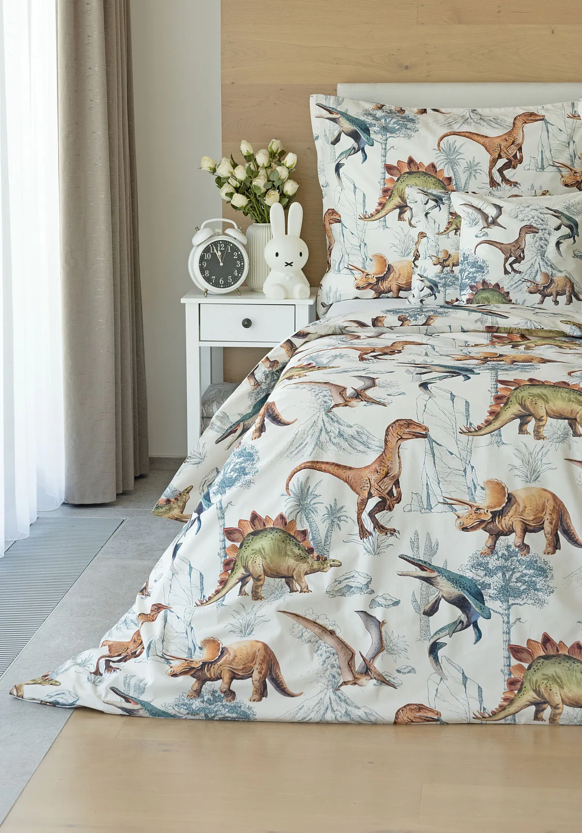 Bavlněné povlečení Dino Land potěší všechny malé i větší milovníky jurského období. Originální design je díky neutrální kombinaci barev vhodný do dívčího i chlapeckého pokoje. O jejich spokojený spánek se postará hebká prvotřídní bavlna.