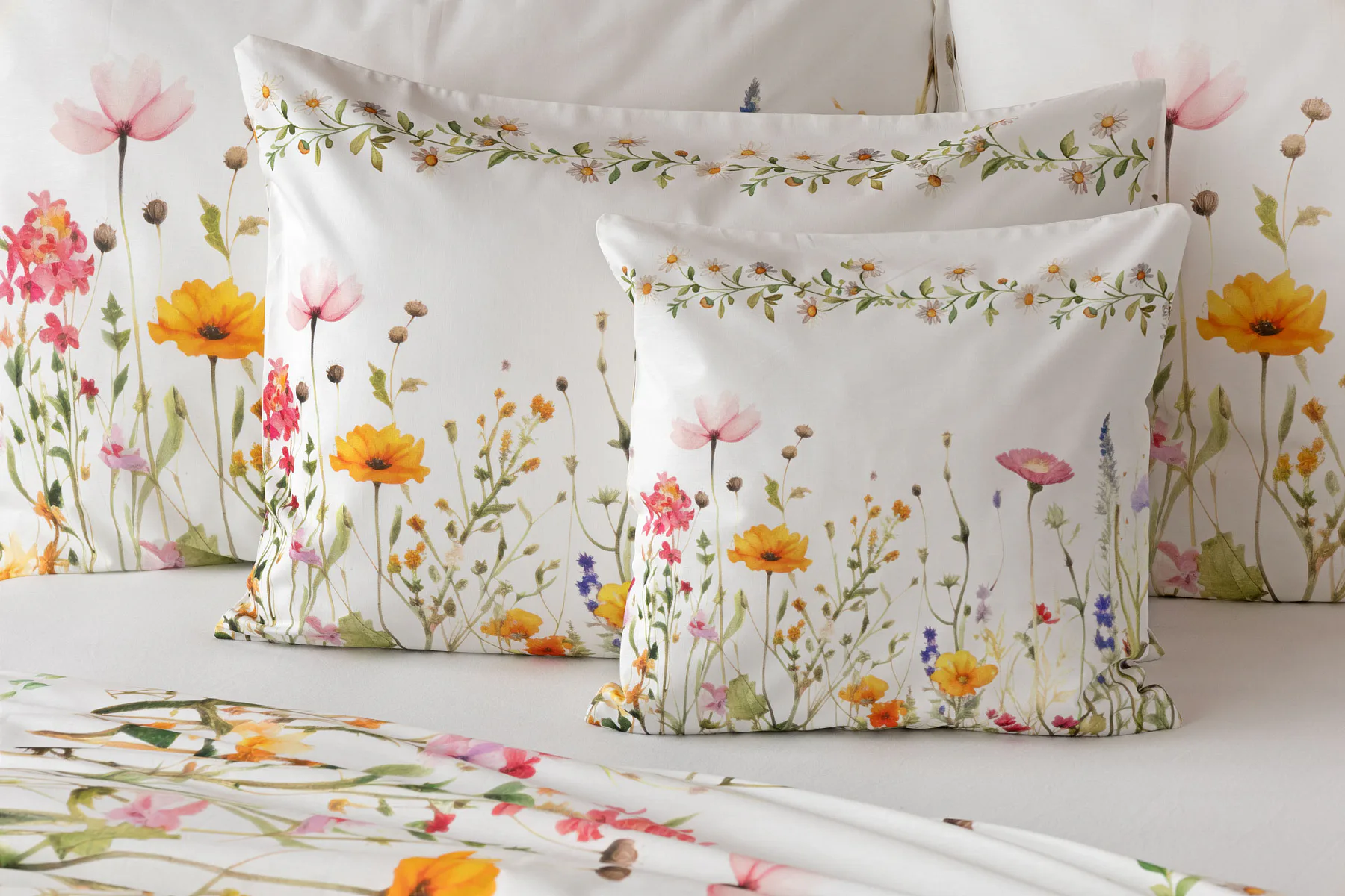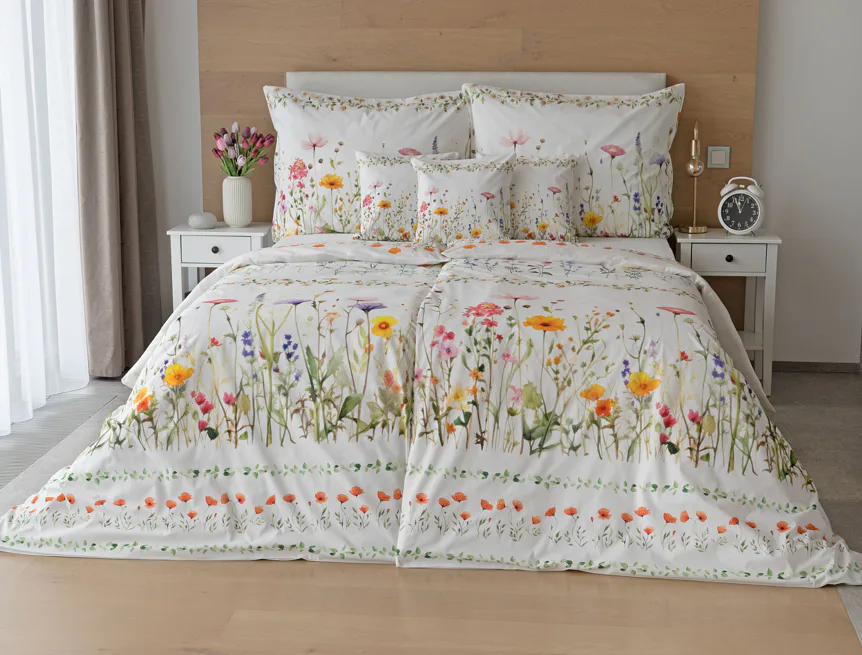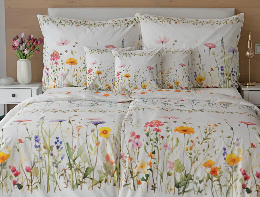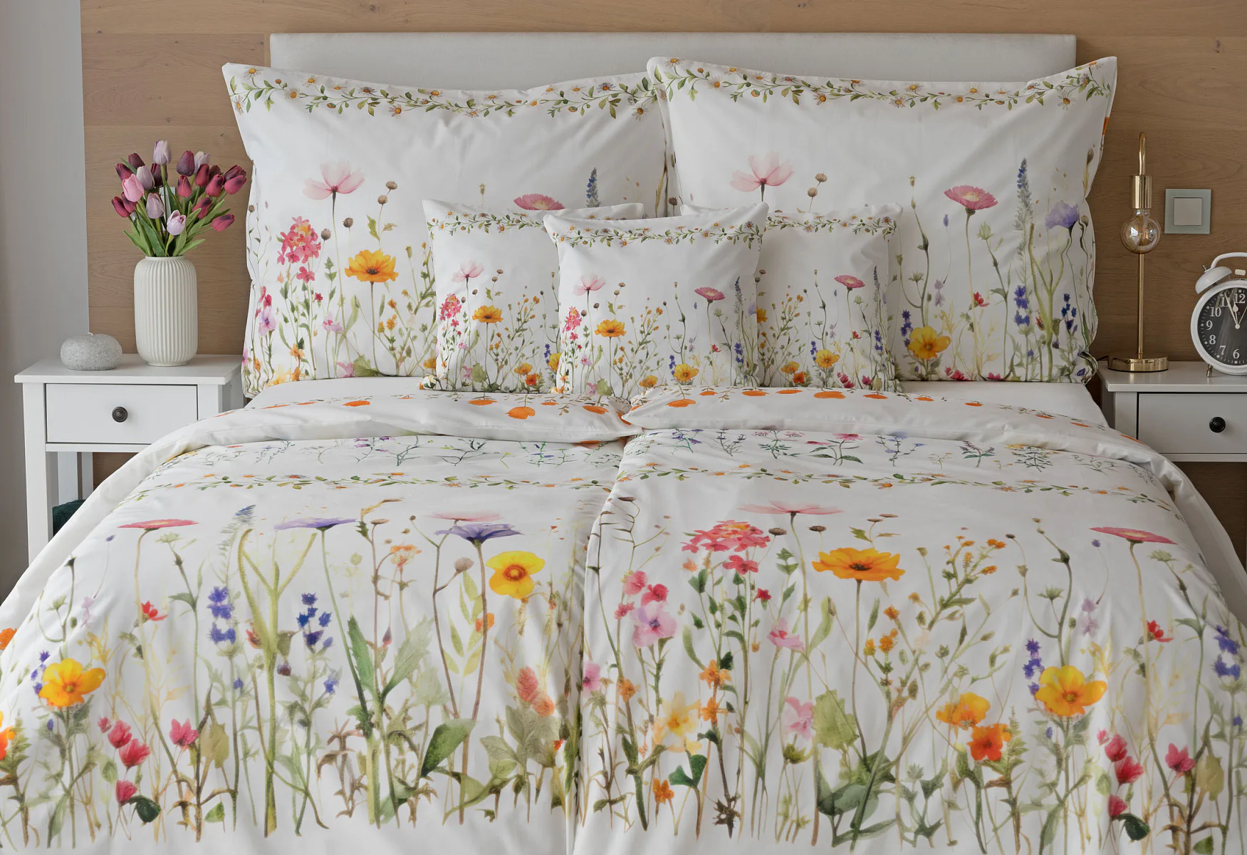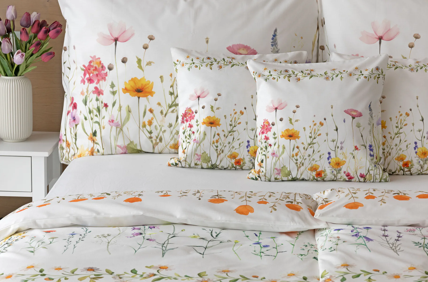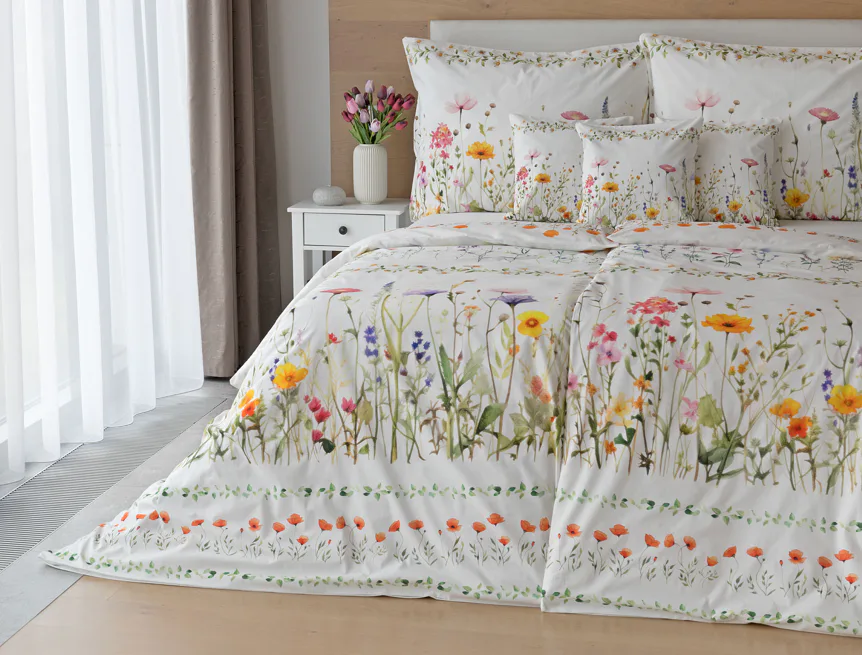 Proměňte svou ložnici v jarní oázu svěžesti s bavlněným povlečením Doris. Romantický motiv lučního kvítí vnese do interiéru lehkost a svěží vůni jara. Barevné květy v pastelových odstínech na bílém podkladu působí hravě a zároveň velmi elegantně. Povlečení Doris je ideální volbou pro milovníky jemných a neokázalých bytových doplňků.