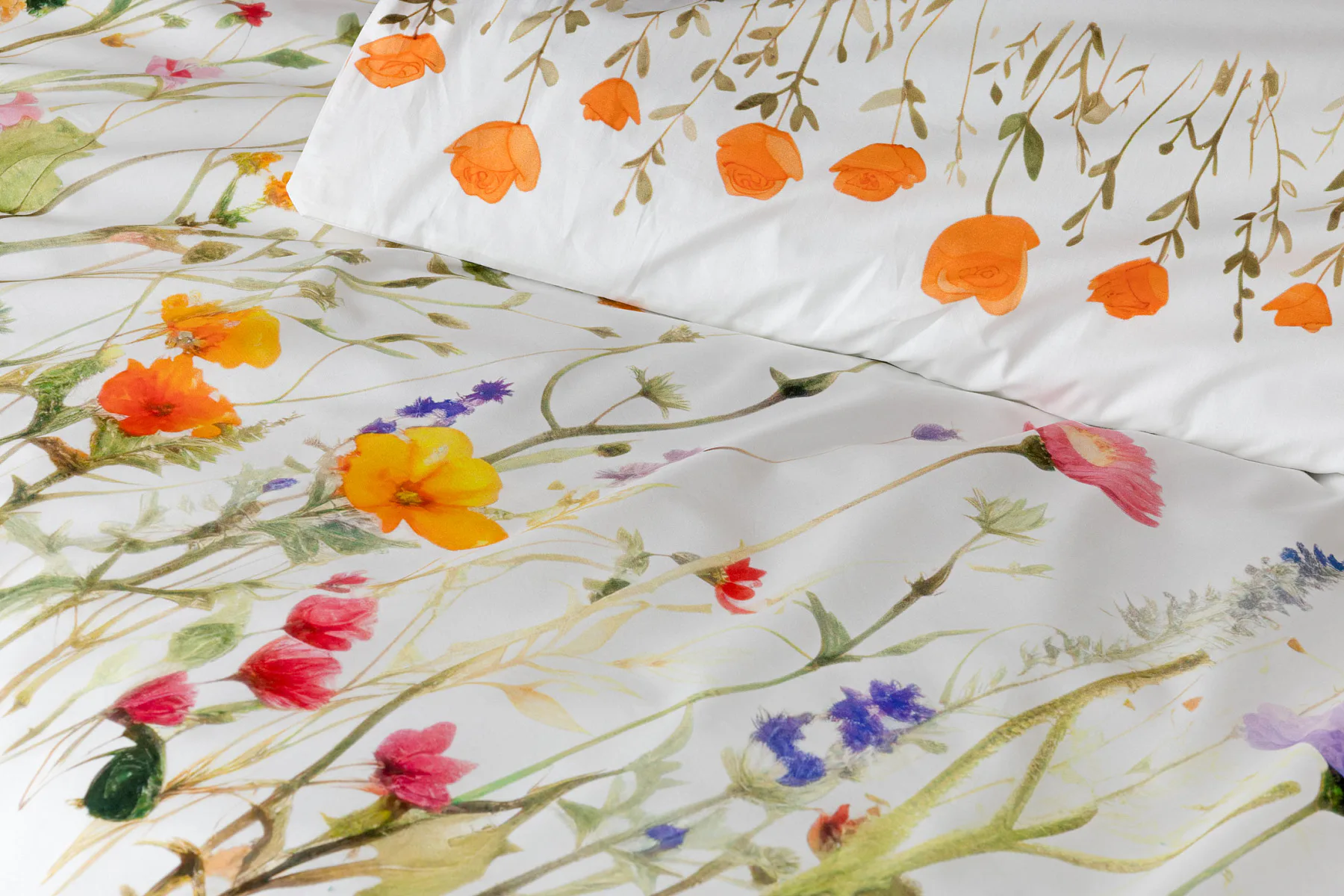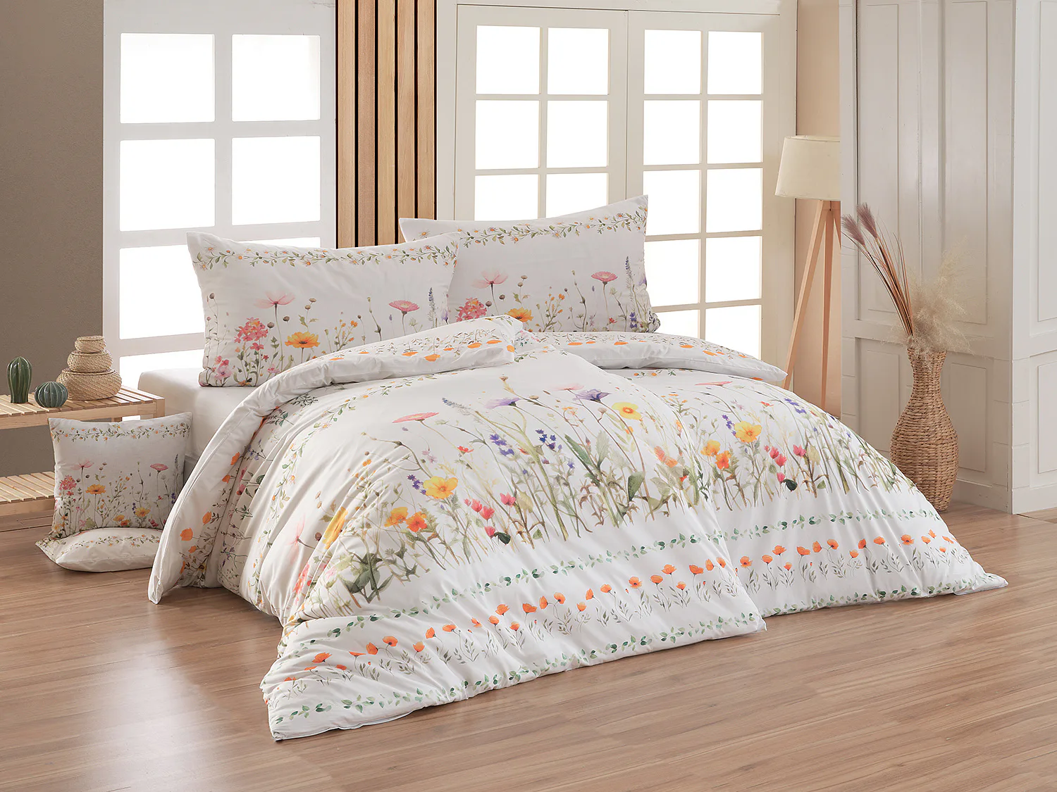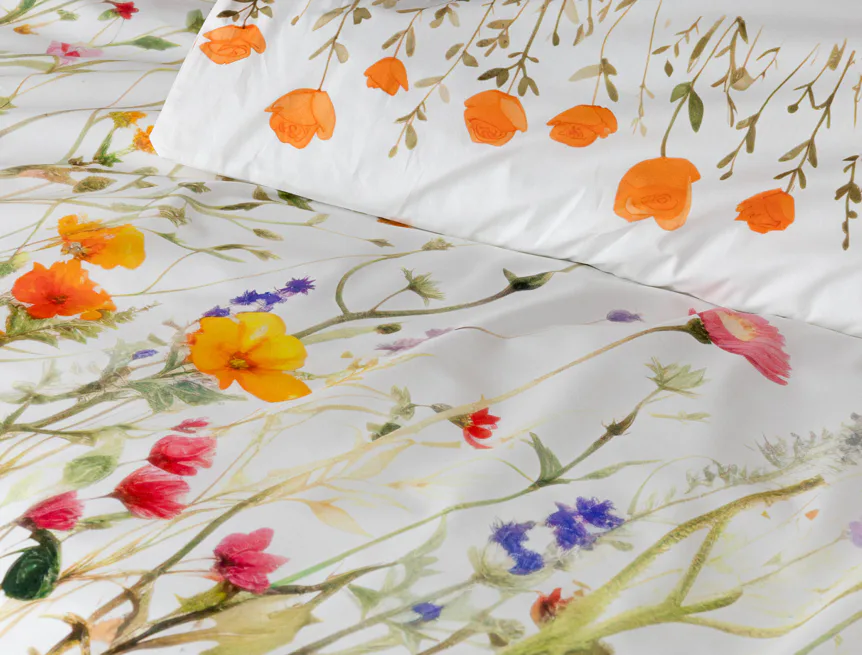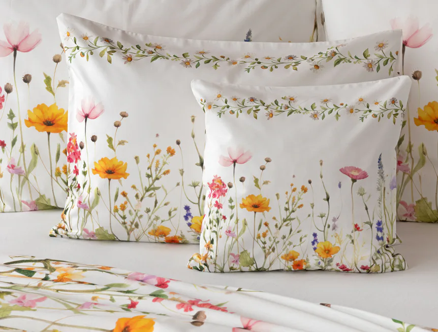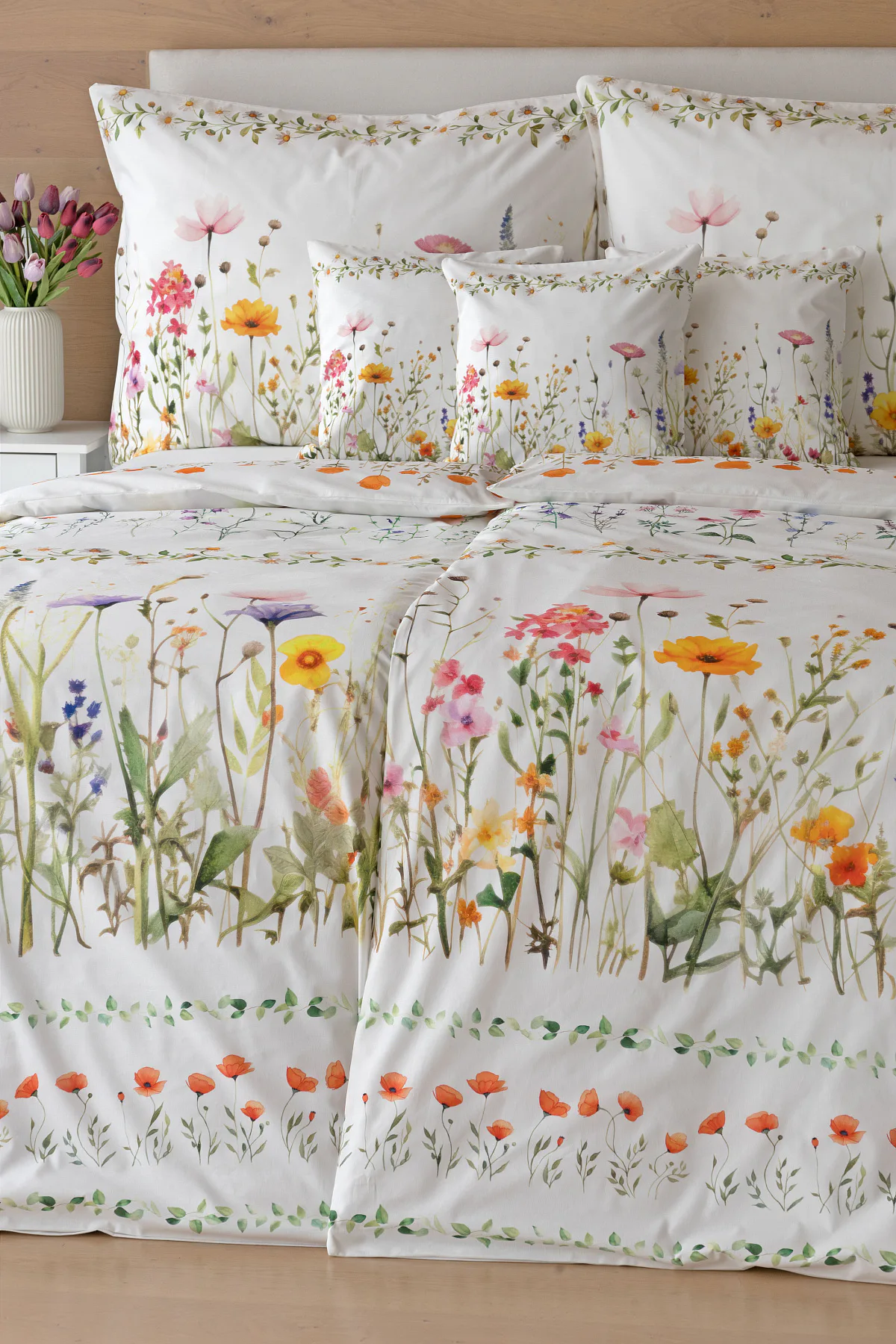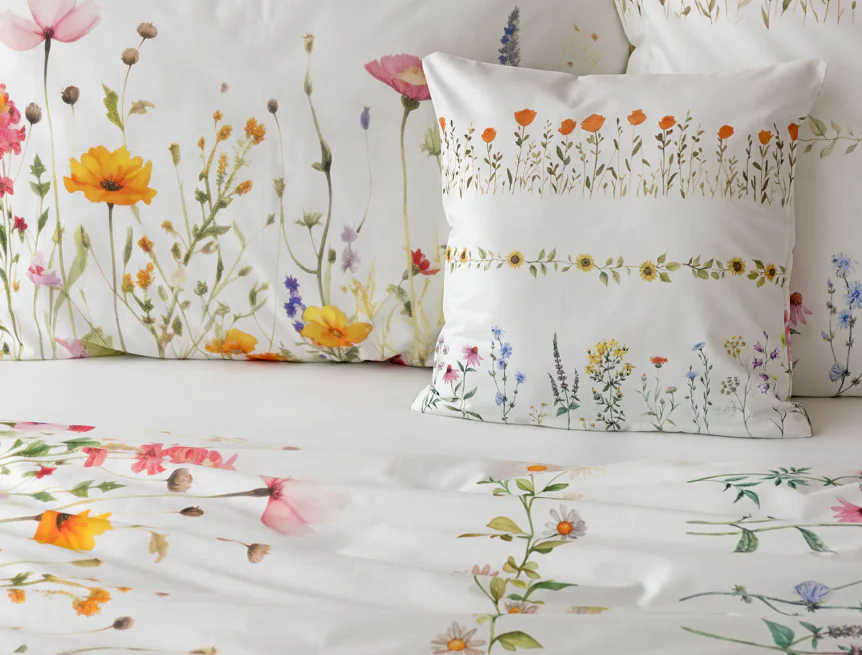 Proměňte svou ložnici v jarní oázu svěžesti s bavlněným povlečením Doris. Romantický motiv lučního kvítí vnese do interiéru lehkost a svěží vůni jara. Barevné květy v pastelových odstínech na bílém podkladu působí hravě a zároveň velmi elegantně. Povlečení Doris je ideální volbou pro milovníky jemných a neokázalých bytových doplňků.