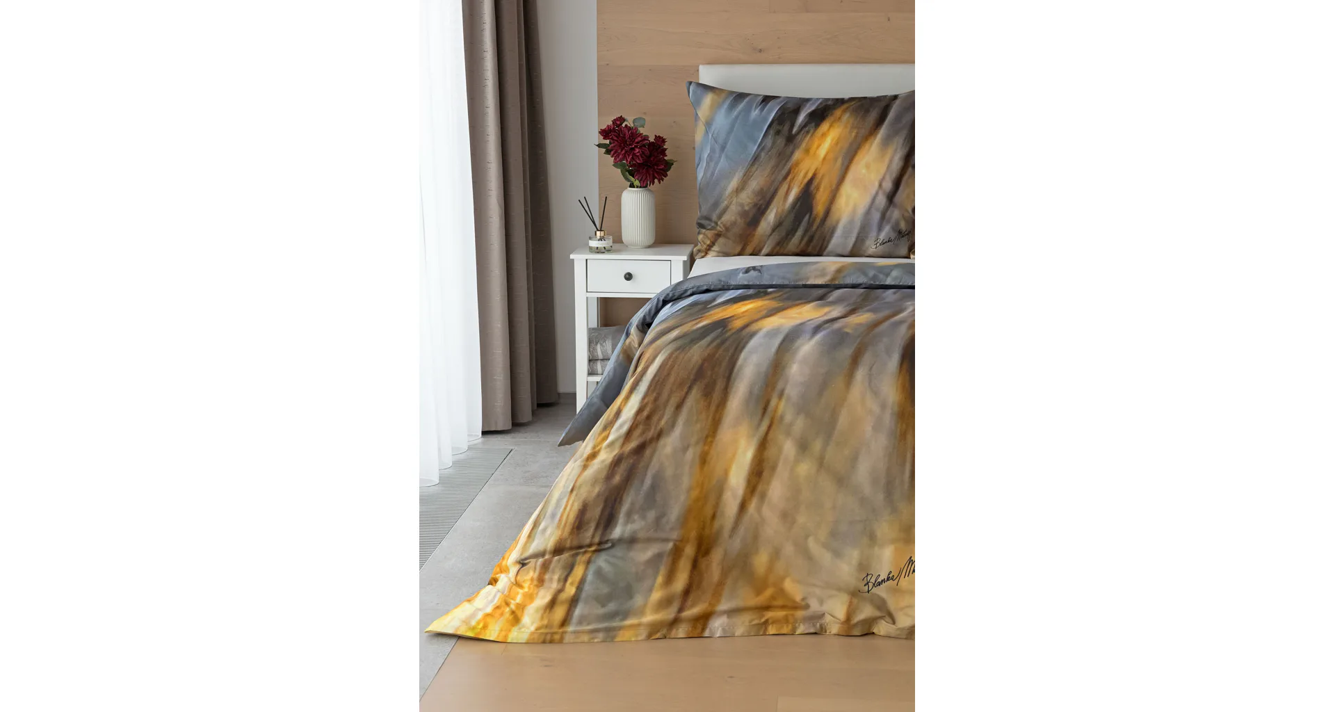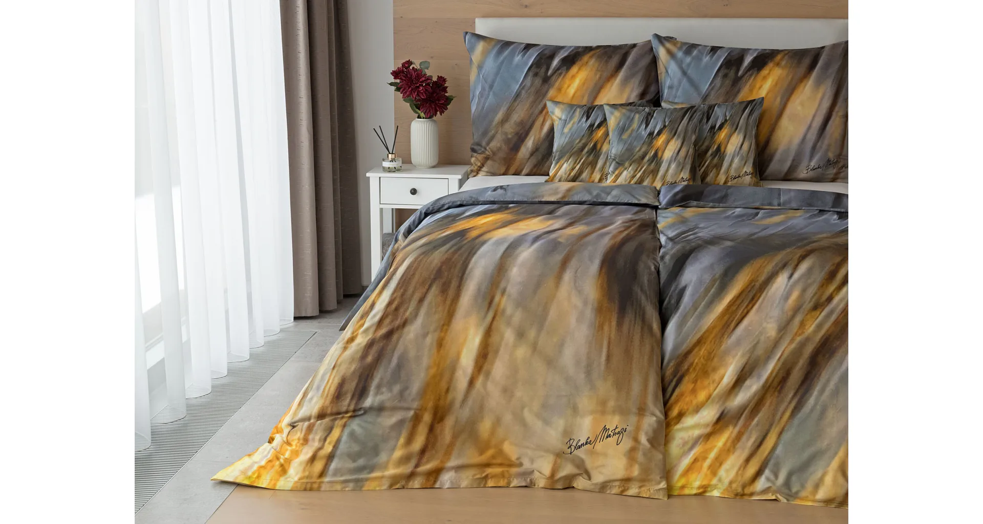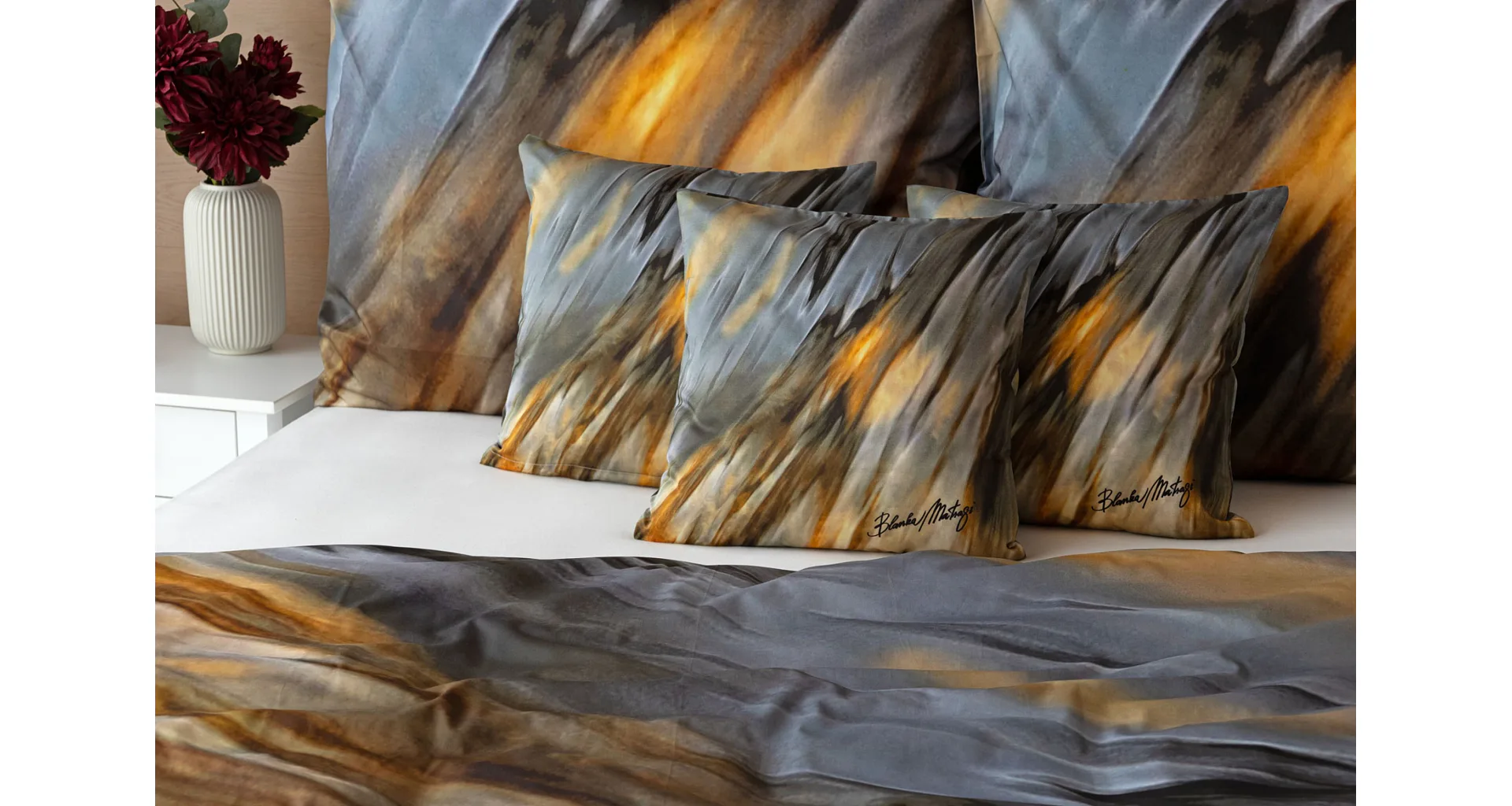 Inspirujte se limitovanou edicí povlečení na motivy kolekce ELEMENTS uznávané módní návrhářky Blanky Matragi. Sama umělkyně tuto kolekci charakterizuje jako oslavu života a návrat ke kořenům. Elegantní, ale přesto velmi odvážné a promyšlené motivy vyzařují autorské inovační nápady a na první pohled zaujmou optickými iluzionistickými prvky.