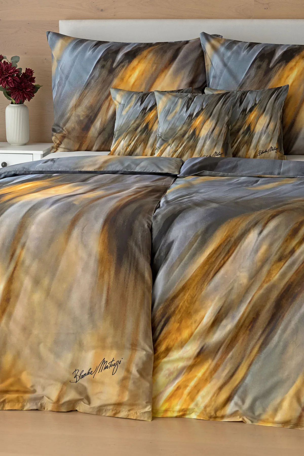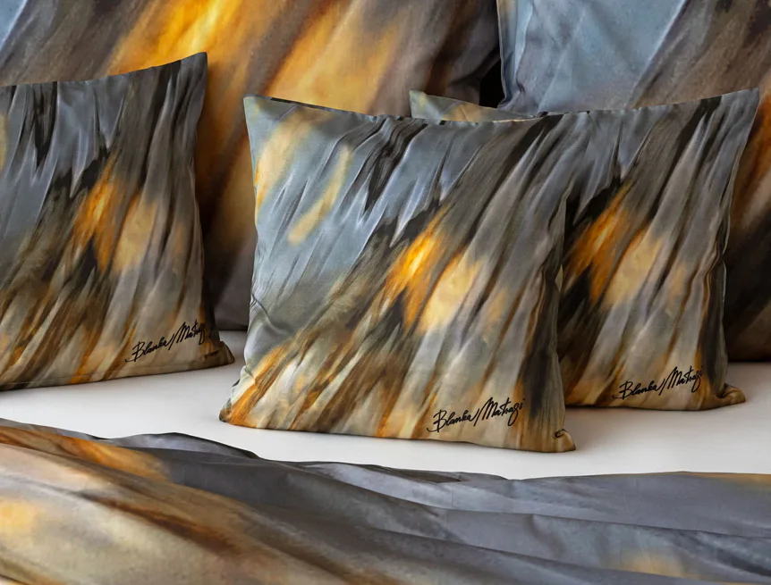 Inspirujte se limitovanou edicí povlečení na motivy kolekce ELEMENTS uznávané módní návrhářky Blanky Matragi. Sama umělkyně tuto kolekci charakterizuje jako oslavu života a návrat ke kořenům. Elegantní, ale přesto velmi odvážné a promyšlené motivy vyzařují autorské inovační nápady a na první pohled zaujmou optickými iluzionistickými prvky.