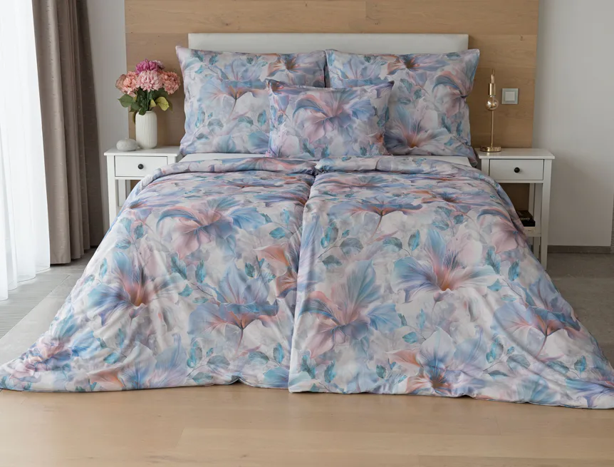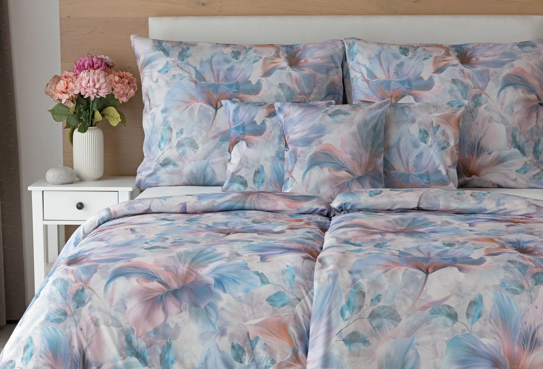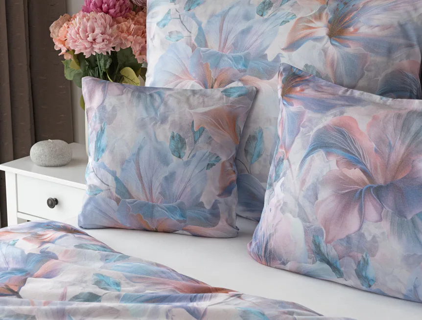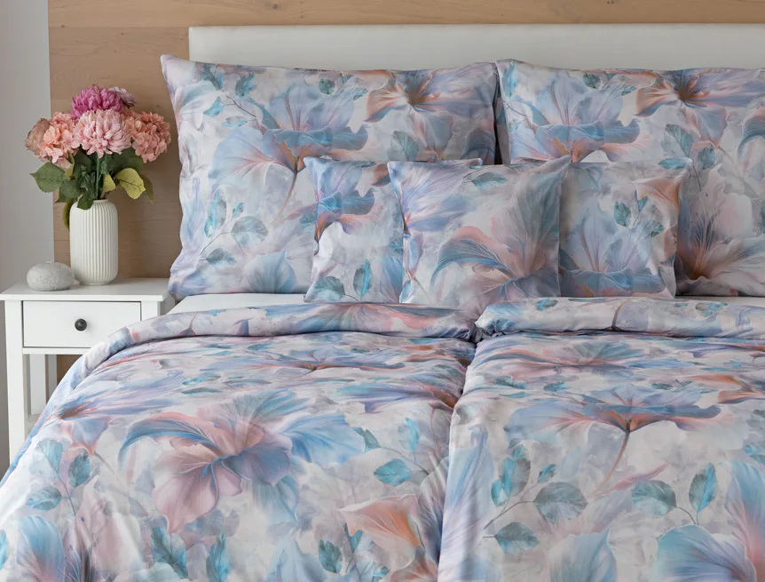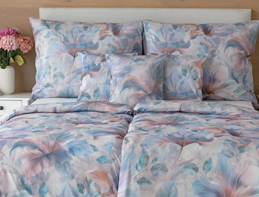 Pro novou kolekci ložního povlečení Mako jersey jsme pečlivě vybírali motivy, které tomuto pružnému materiálu sluší. Vzor Eden s pestrým květinovým motivem v paletě modrých, fialových a korálových tónů vnese do vaší ložnice nádech svěžesti.