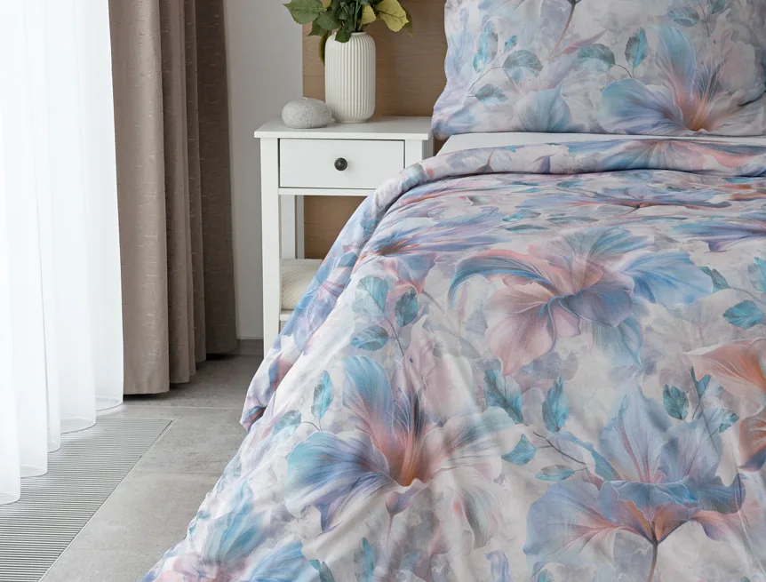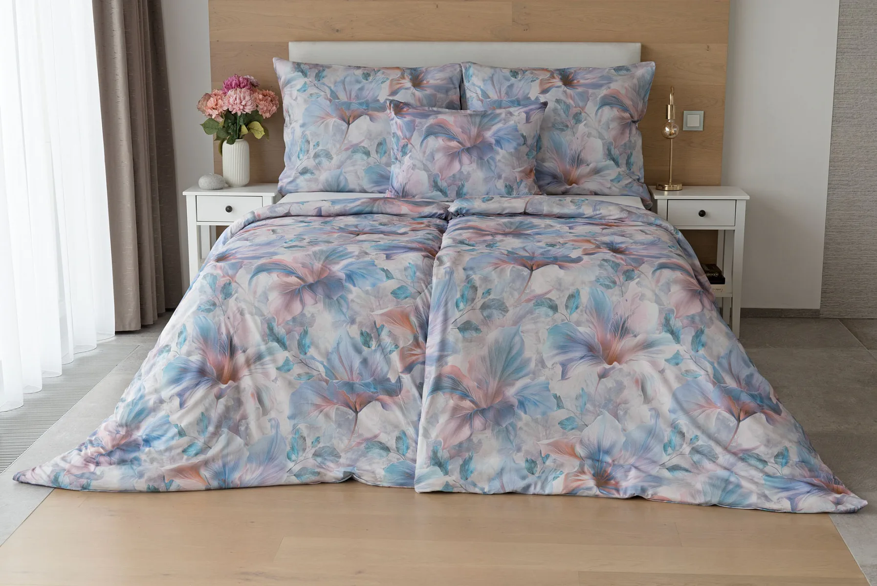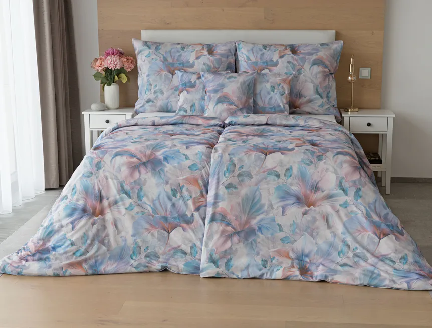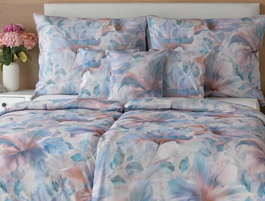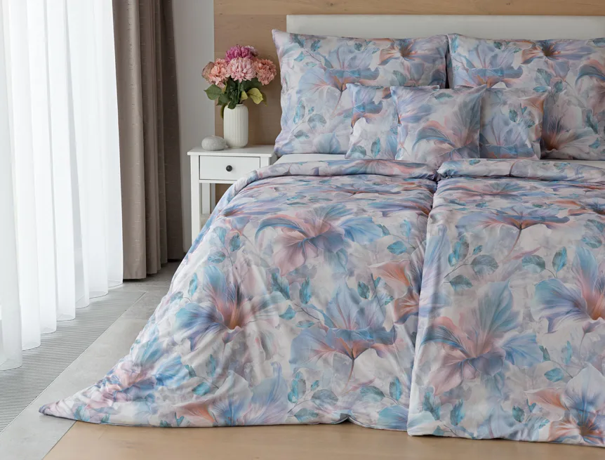 Pro novou kolekci ložního povlečení Mako jersey jsme pečlivě vybírali motivy, které tomuto pružnému materiálu sluší. Vzor Eden s pestrým květinovým motivem v paletě modrých, fialových a korálových tónů vnese do vaší ložnice nádech svěžesti.