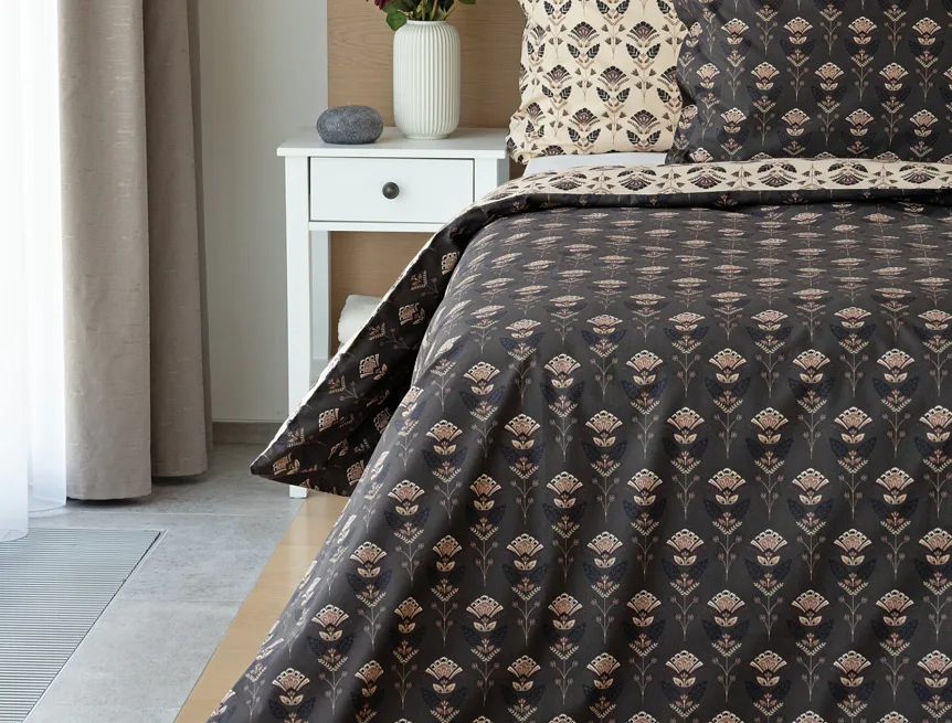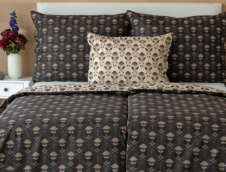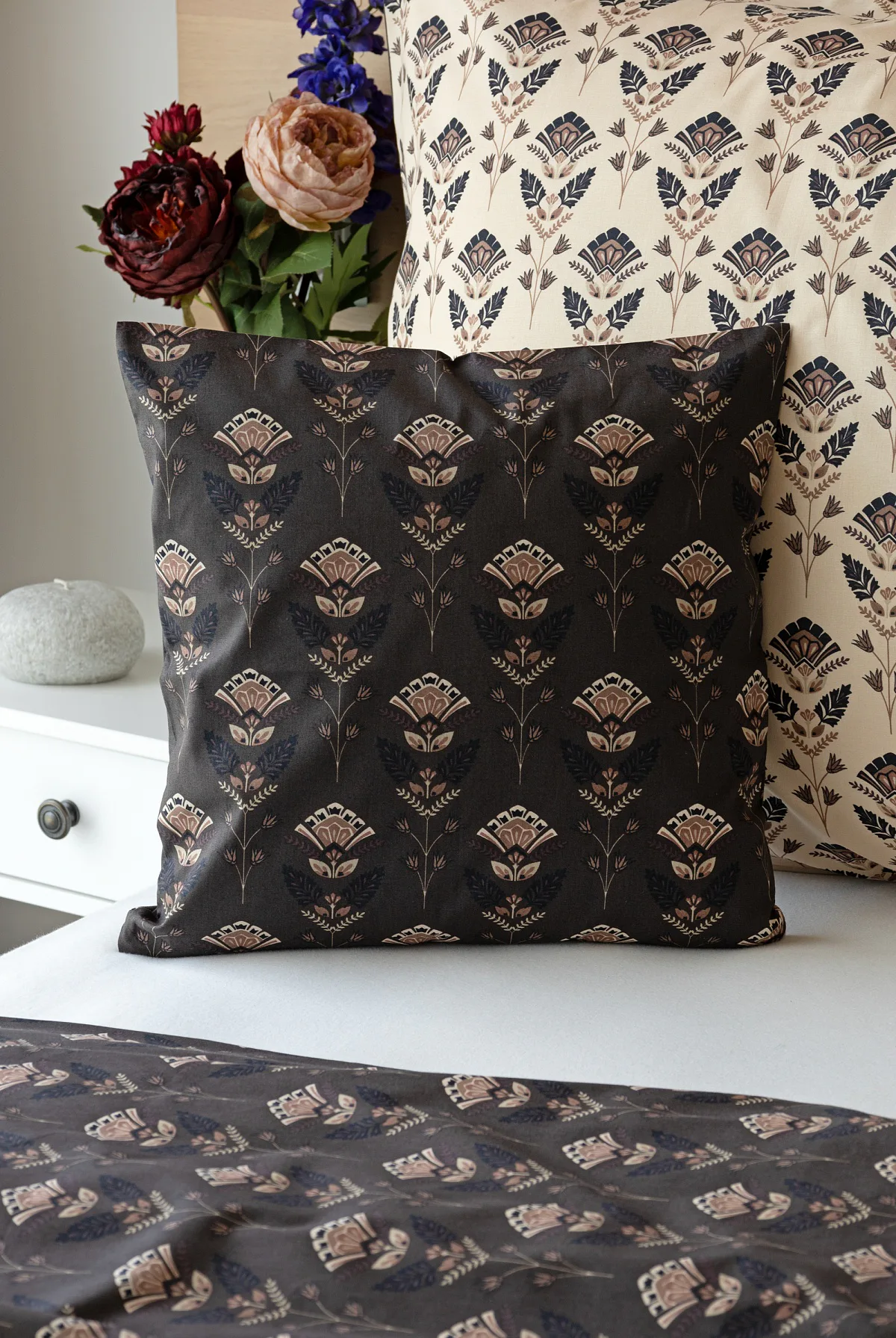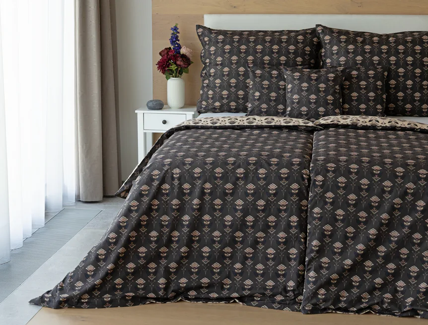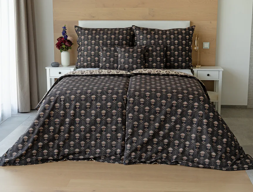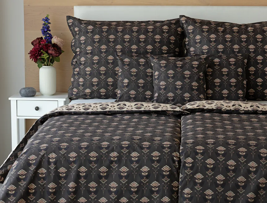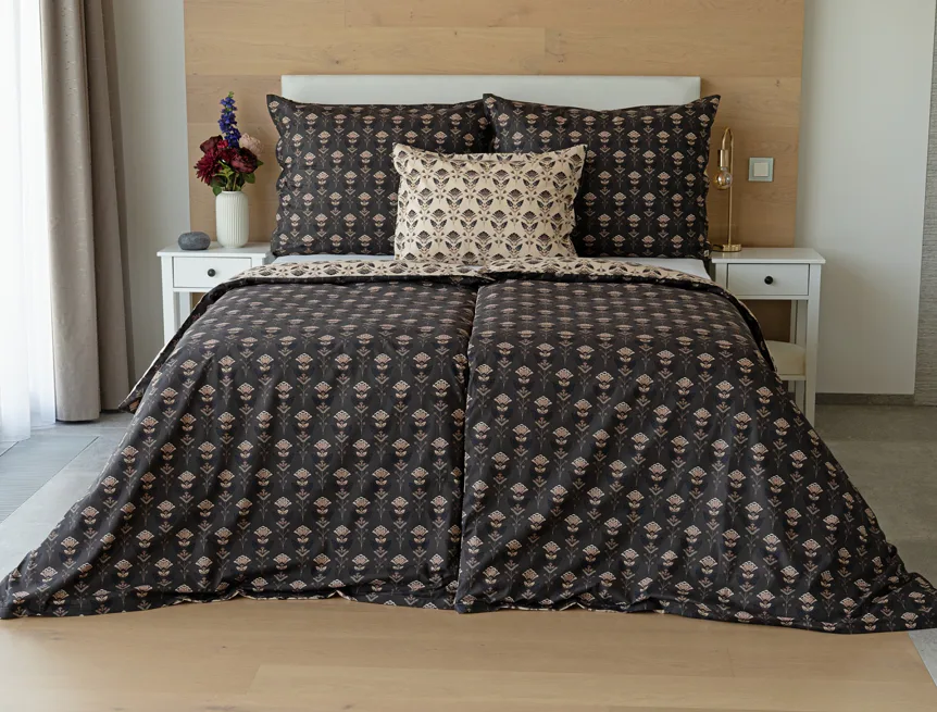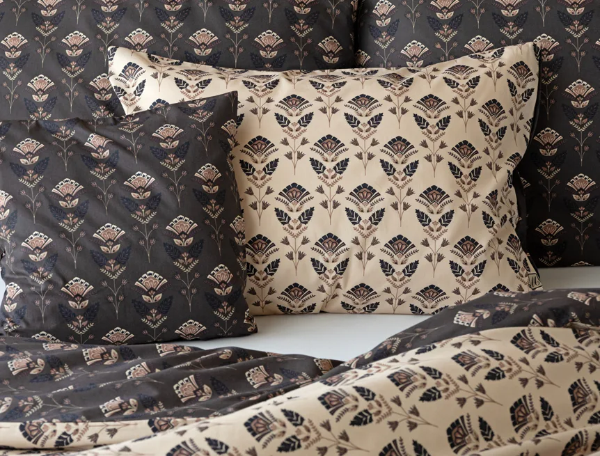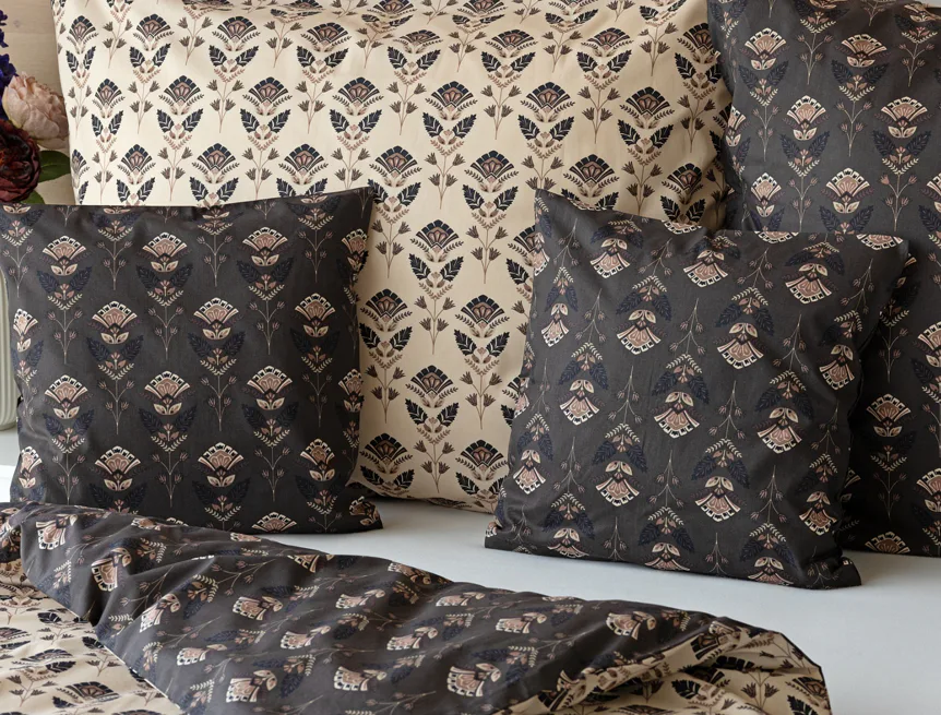 Povlaky na polštářky 40/40 cm se šijí ze stejné látky jako ložní povlečení, vzhledem k rozmanitosti vzoru může být každý povláček jiný. Dostupné pouze v tmavé variantě!