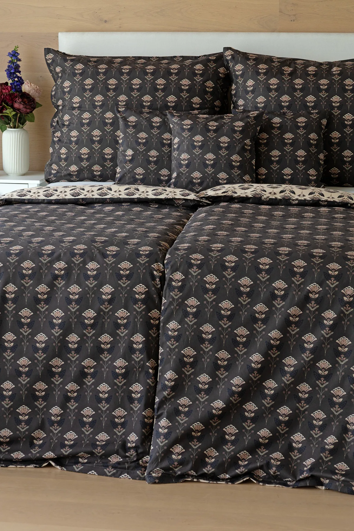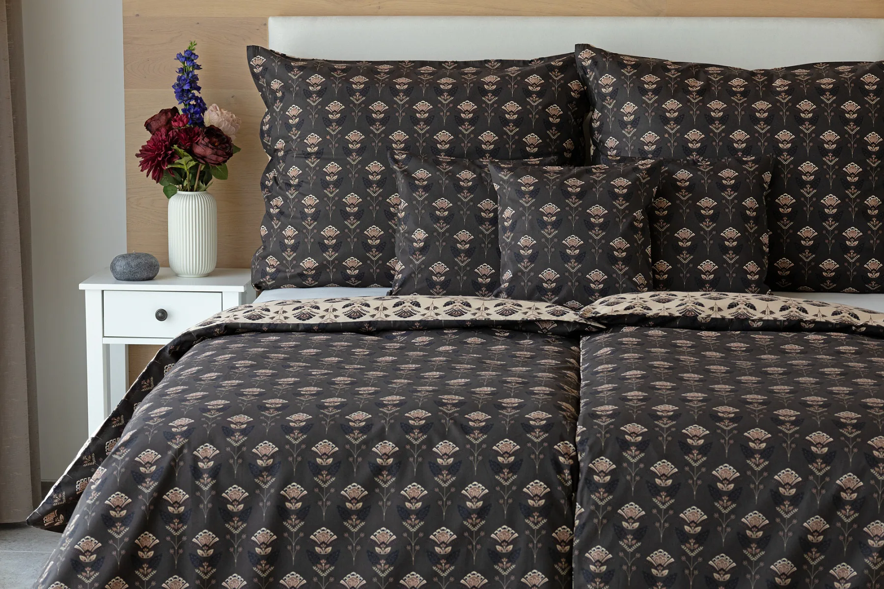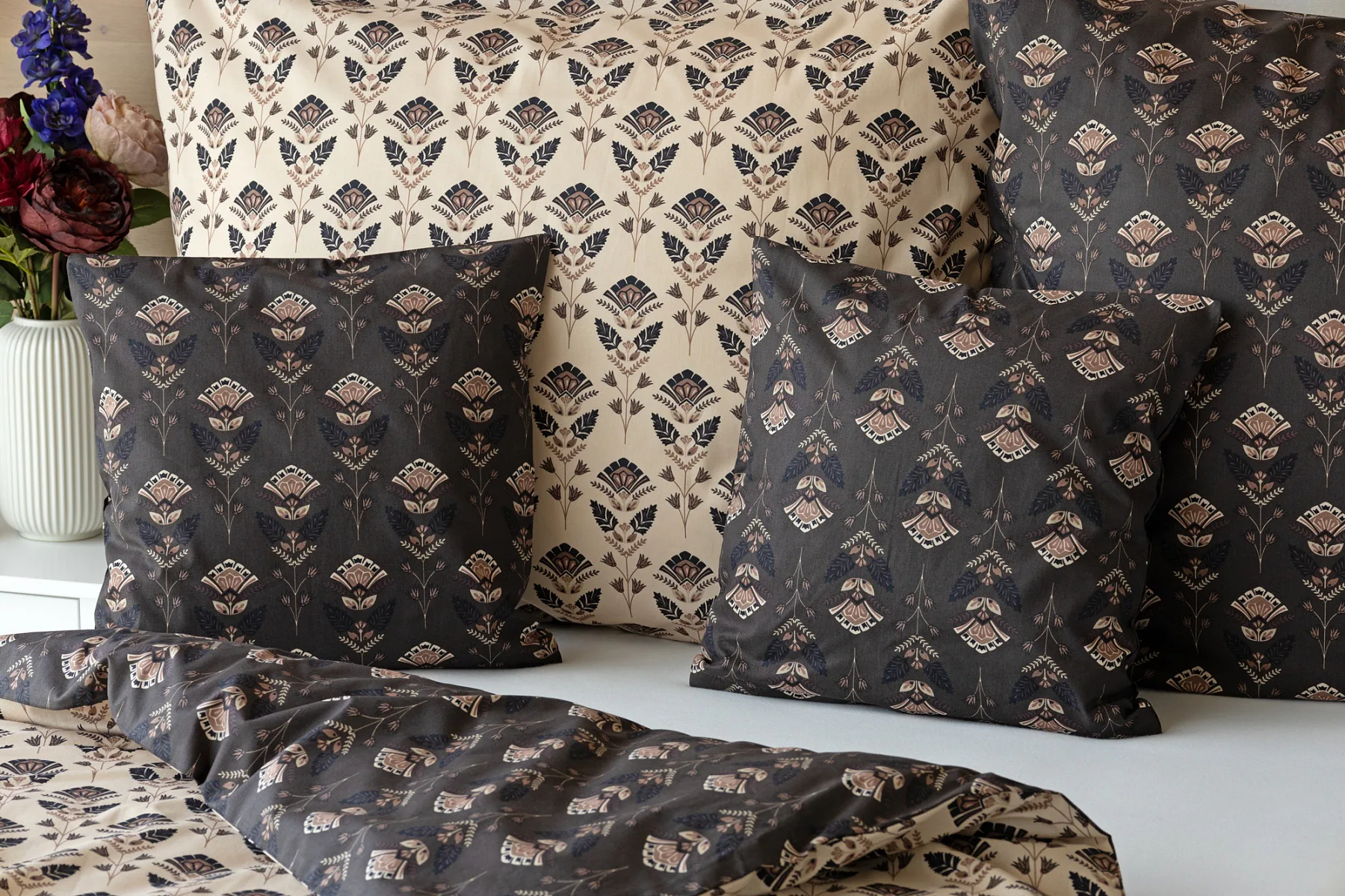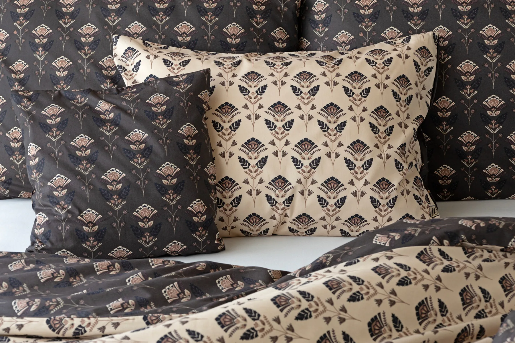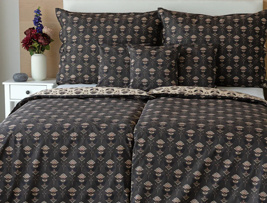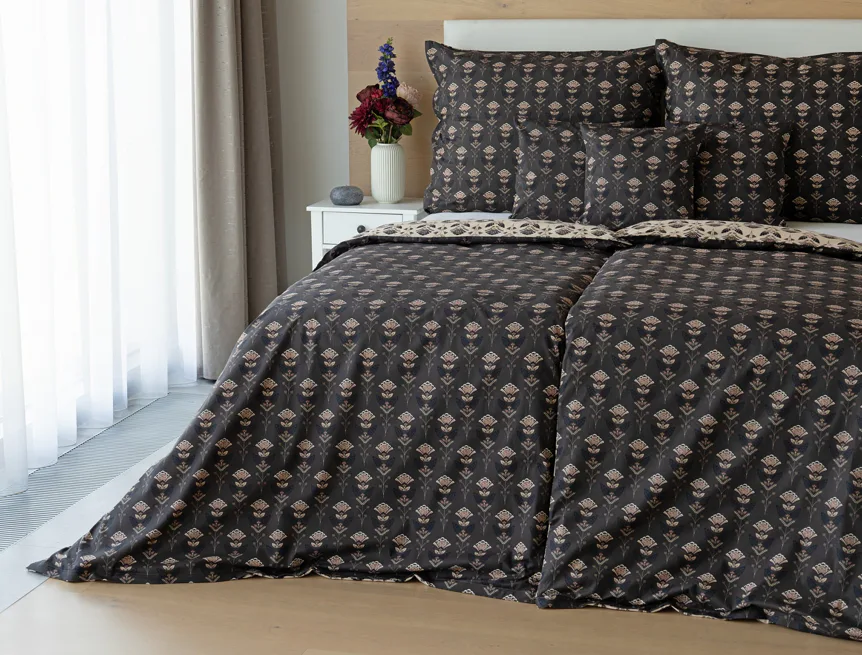Povlaky na polštářky 40/40 cm se šijí ze stejné látky jako ložní povlečení, vzhledem k rozmanitosti vzoru může být každý povláček jiný. Dostupné pouze v tmavé variantě!