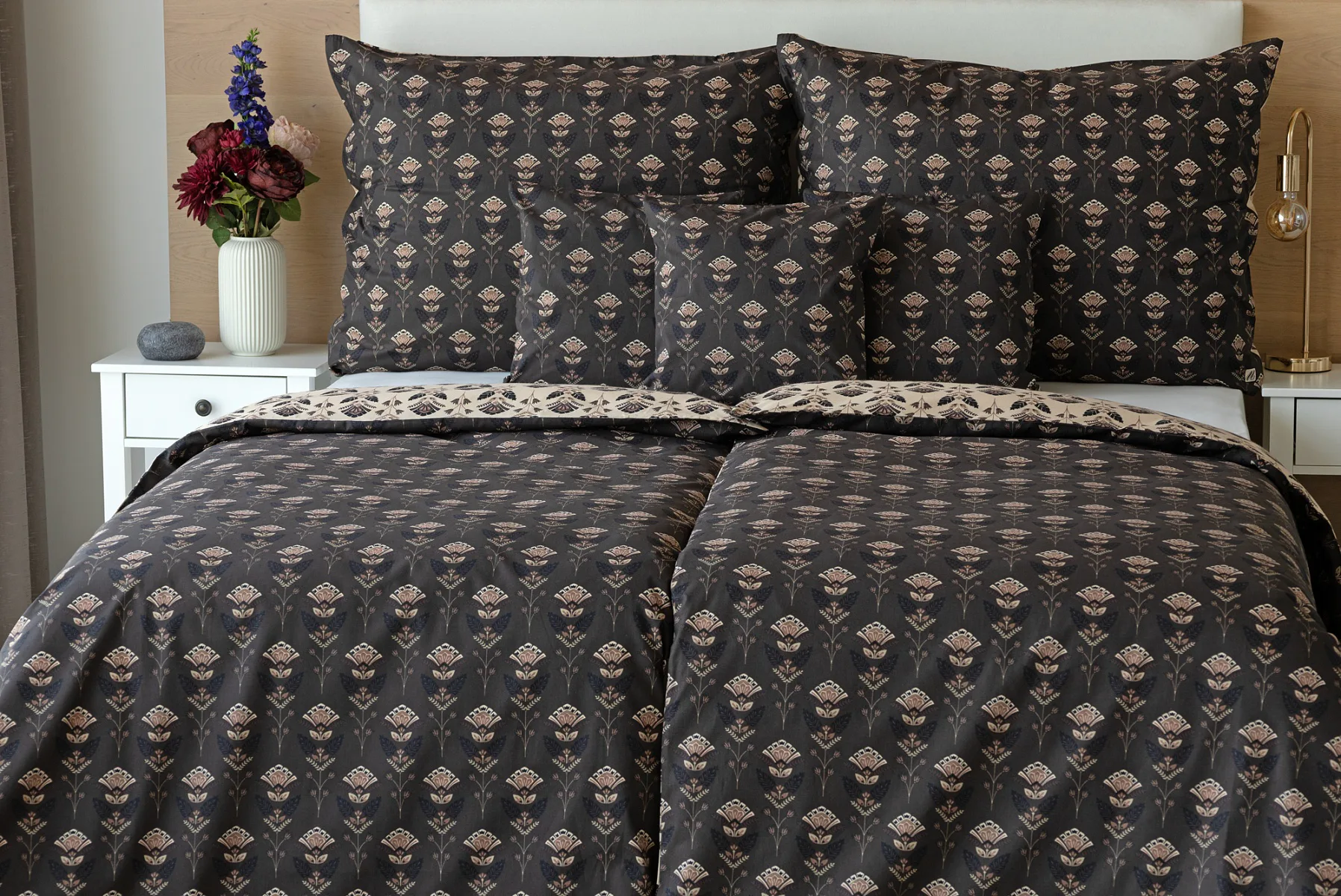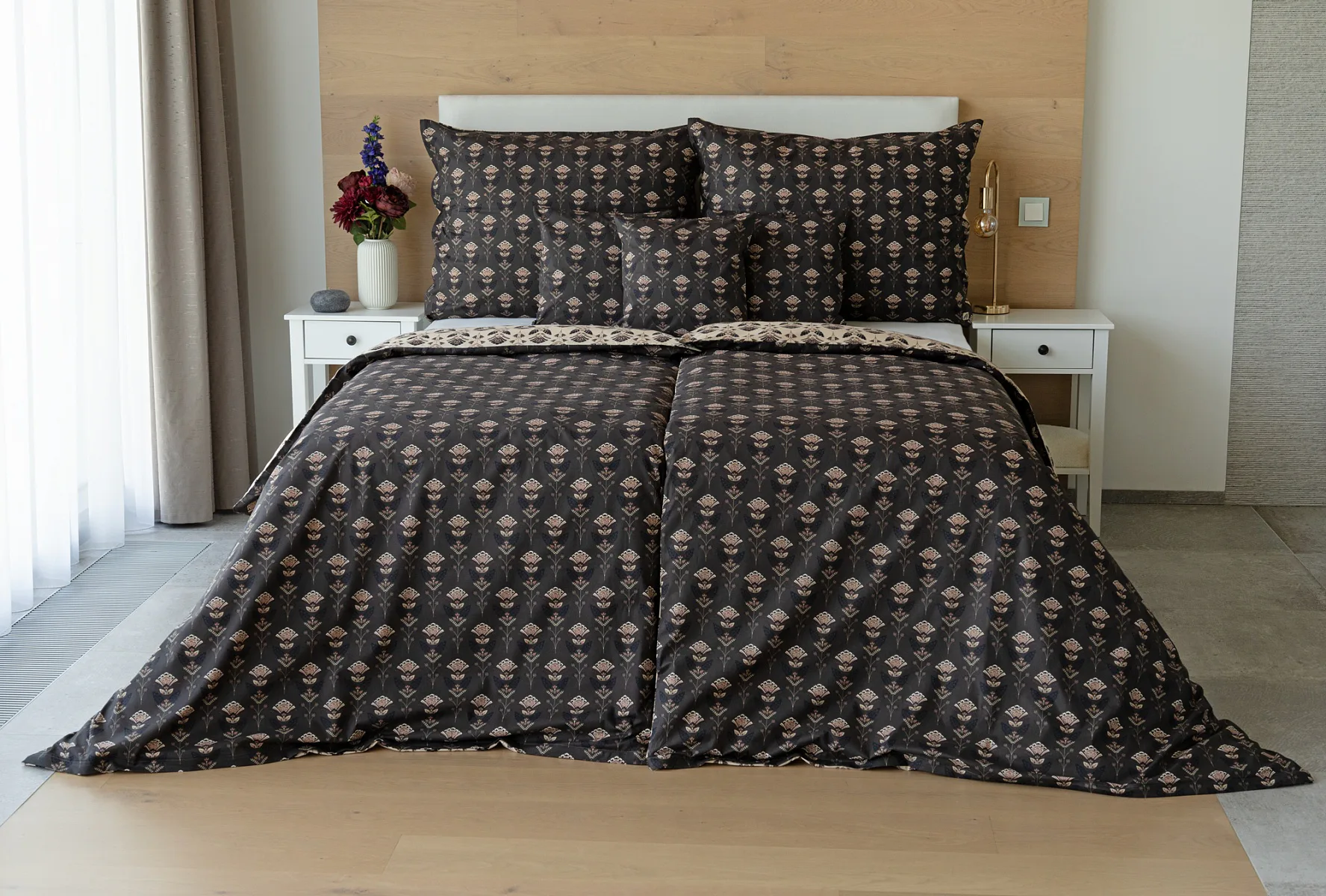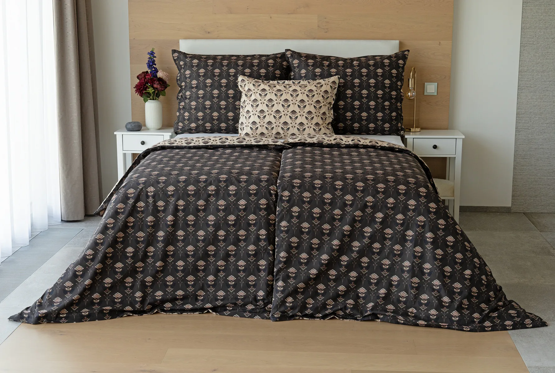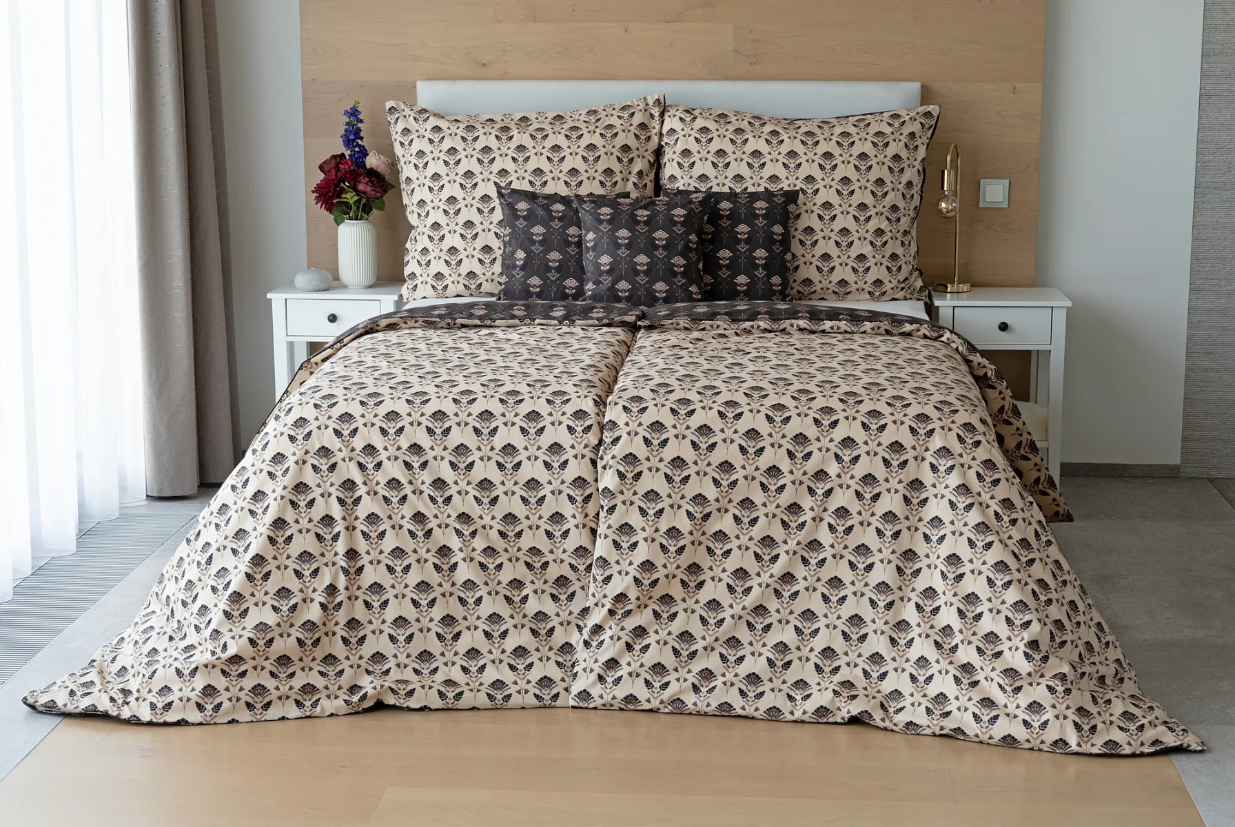 Povlaky na polštářky 40/40 cm se šijí ze stejné látky jako ložní povlečení, vzhledem k rozmanitosti vzoru může být každý povláček jiný. Dostupné pouze v tmavé variantě!