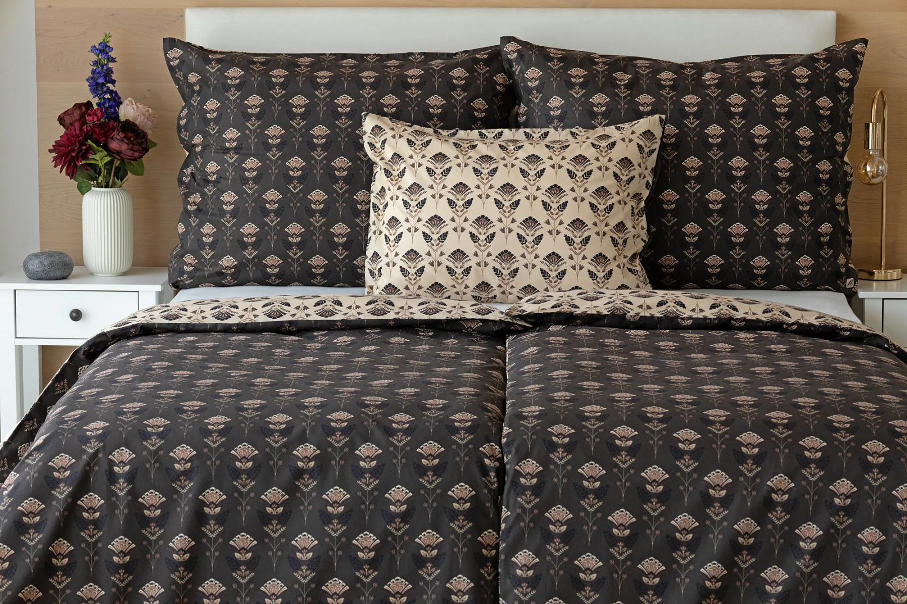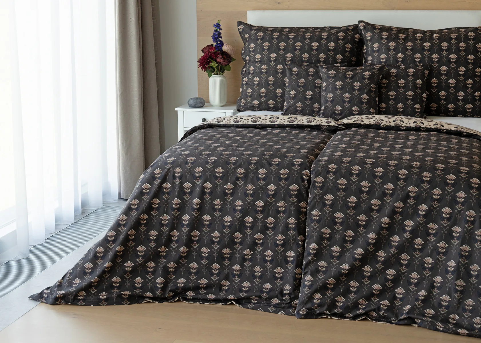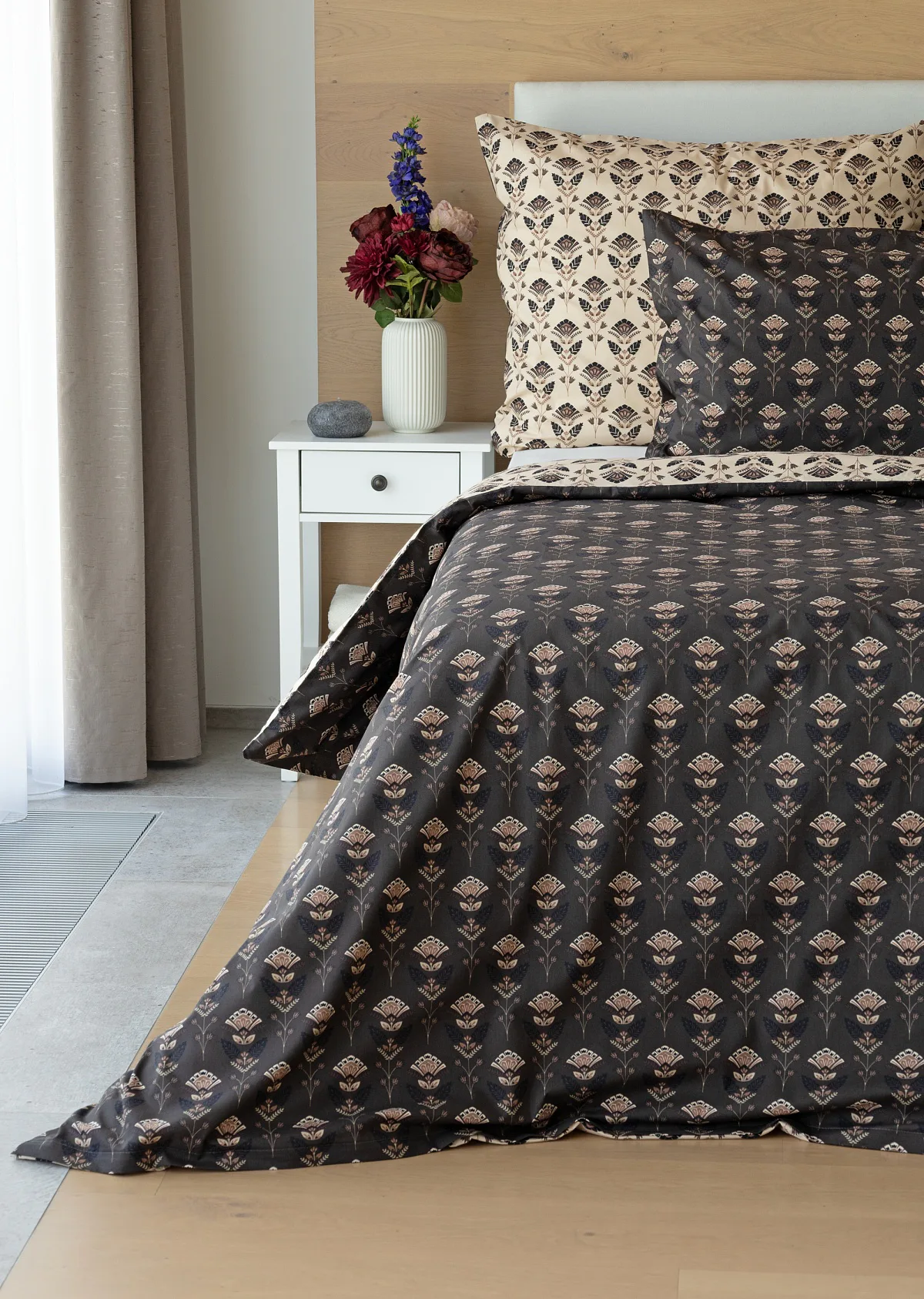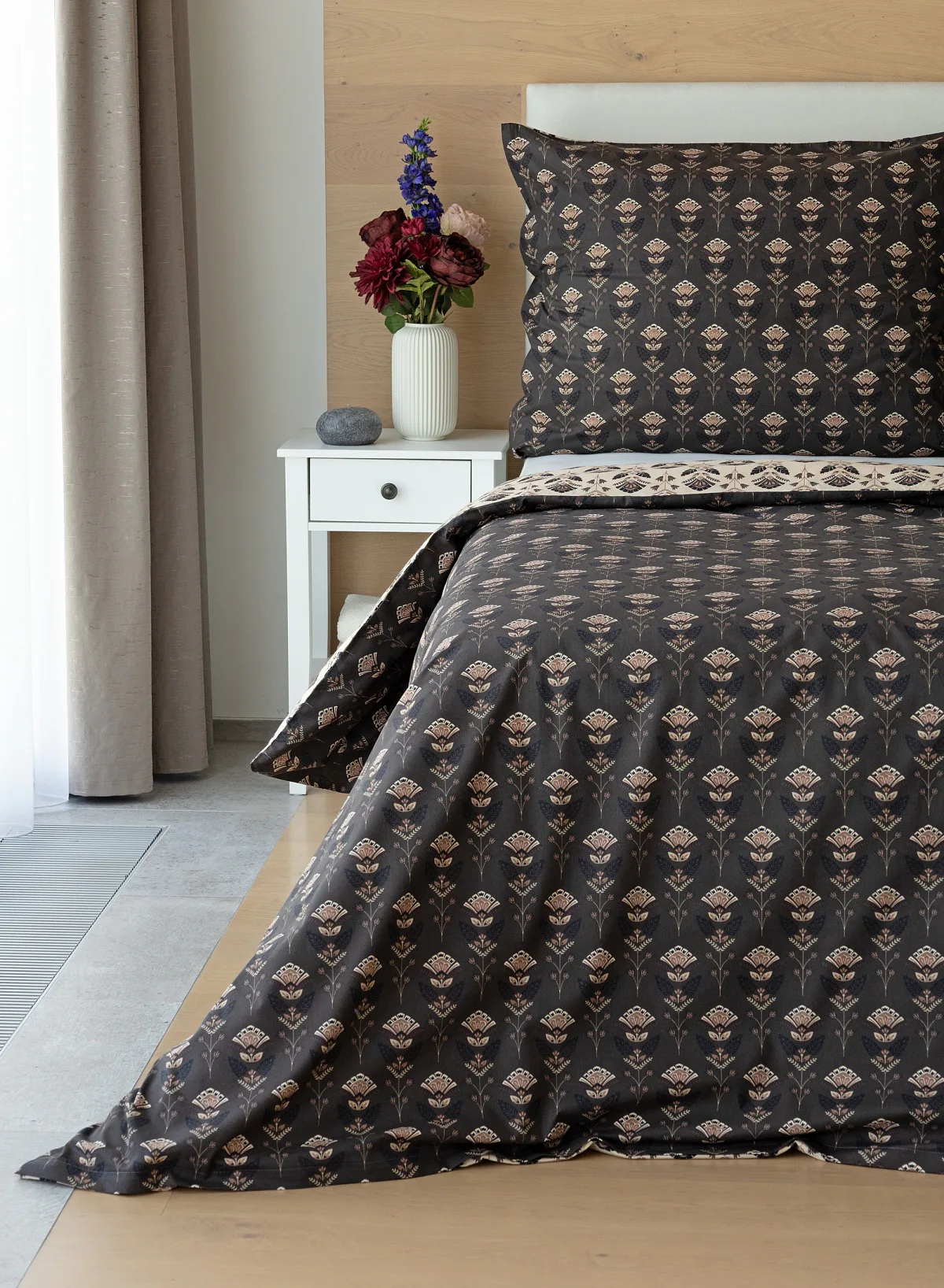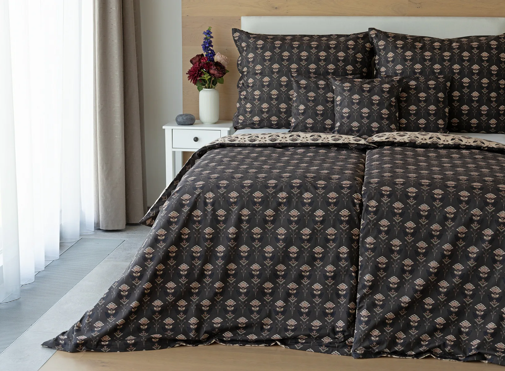 Povlaky na polštářky 40/40 cm se šijí ze stejné látky jako ložní povlečení, vzhledem k rozmanitosti vzoru může být každý povláček jiný. Dostupné pouze v tmavé variantě!