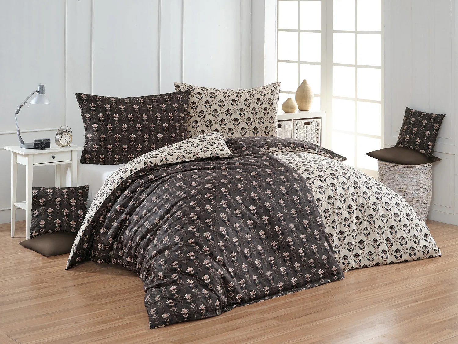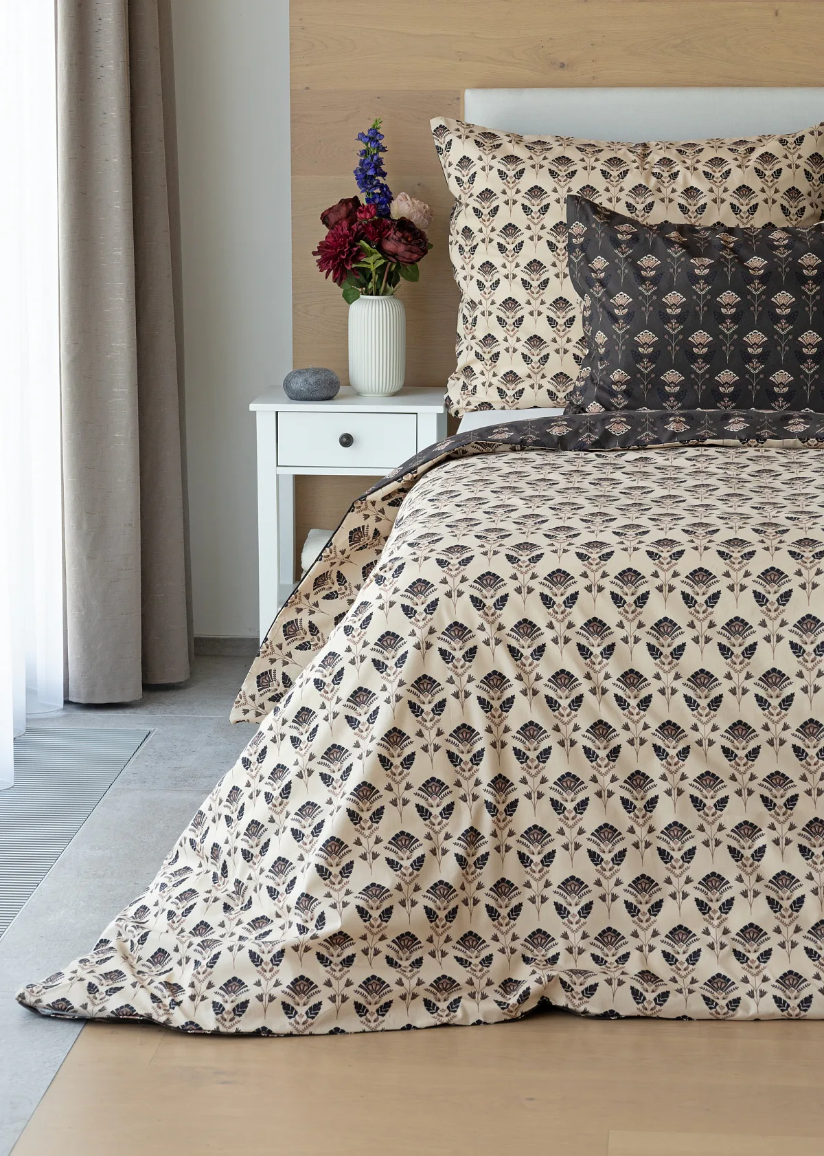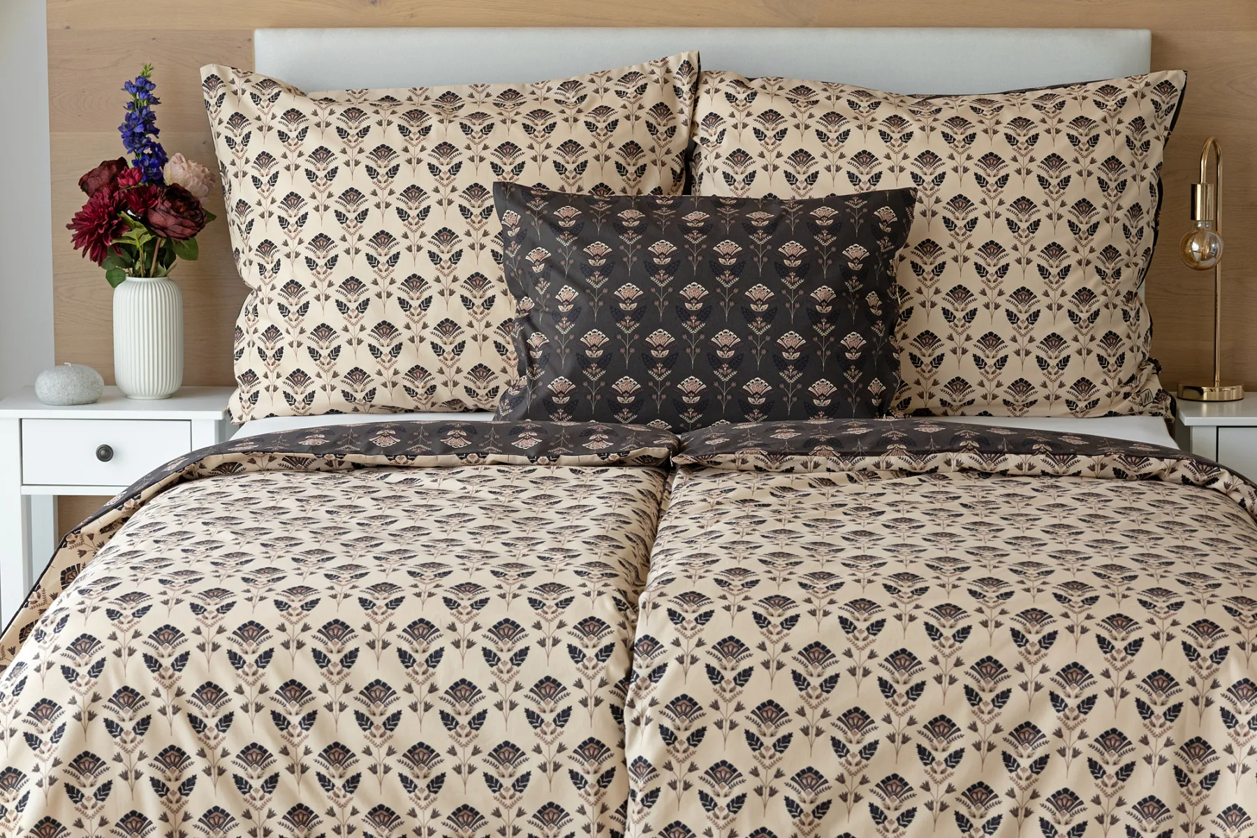 Nalaďte se na podzimní atmosféru s hřejivými barvami a vychutnejte si hravé stlaní s ložním povlečením Ellinor. Oblíbené oboustranné provedení vám umožní experimentovat a vaše ložice může být každý den originální. Elegantní vějířový vzor vyniká z jedné strany na béžovém podkladu, zadní strana je laděná do tlumeného tmavě hnědého tónu.