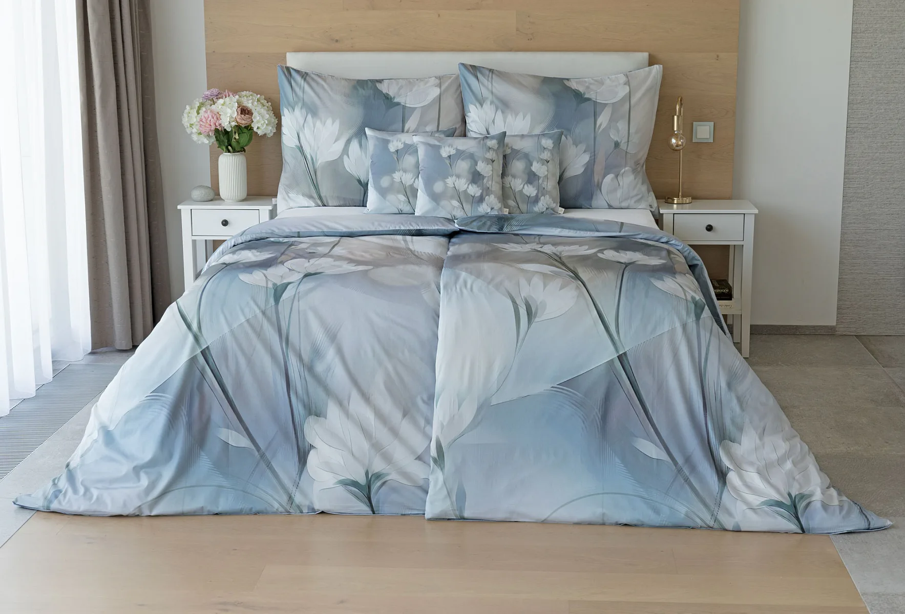 Vzoru Eloise dominuje atraktivní florální motiv v paletě modrých a tlumených pudrových tónů. Povlak na polštář i na přikrývku je z obou stran stejný, vrchní stranu povlaku na polštář zdobí malé logo "M" v pravém dolním rohu. Povlečení je opatřeno komfortním zipovým uzávěrem.