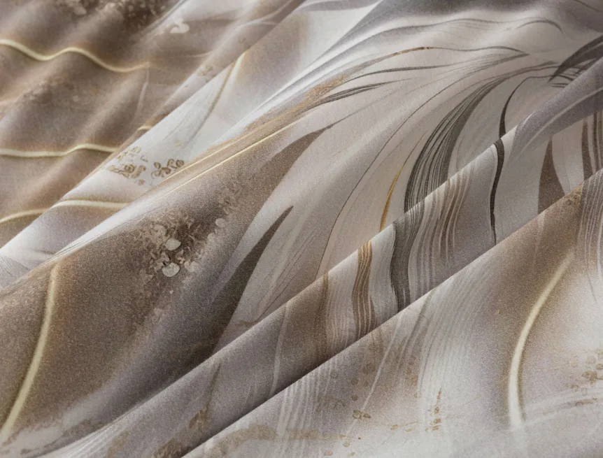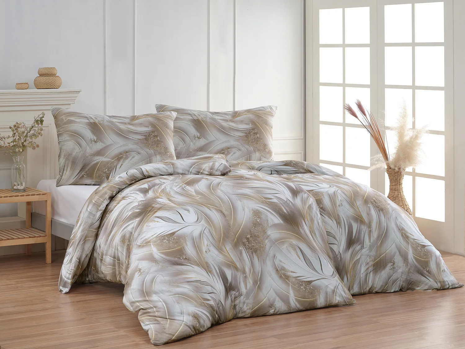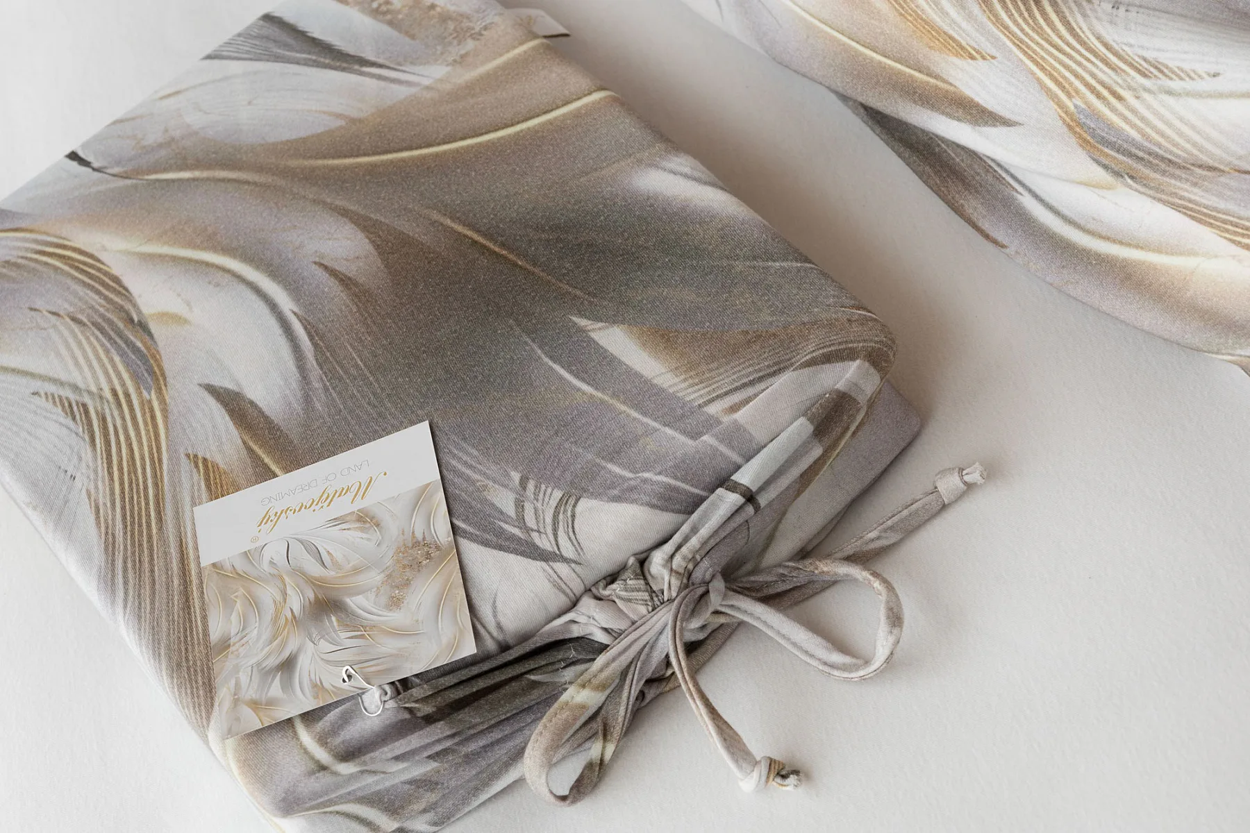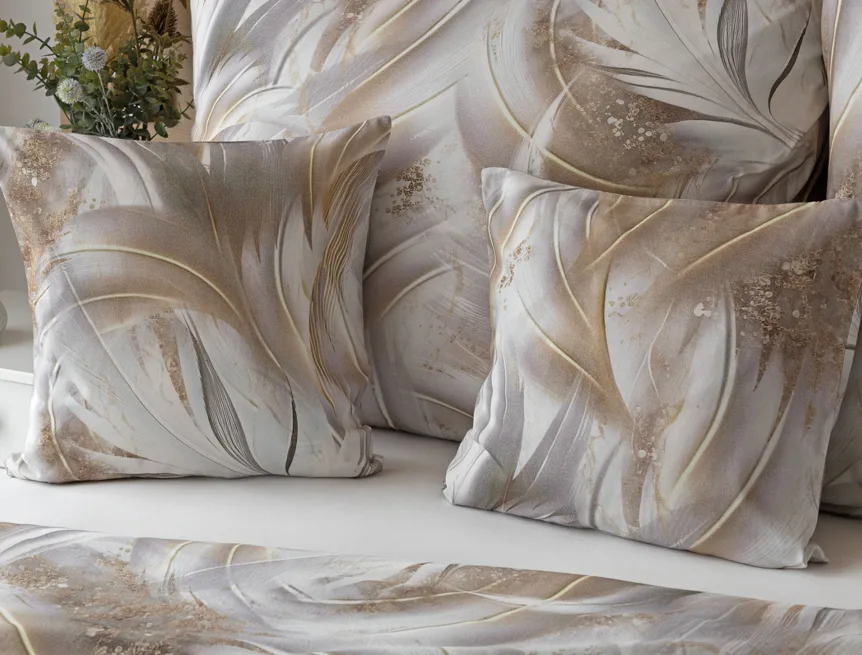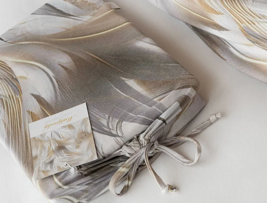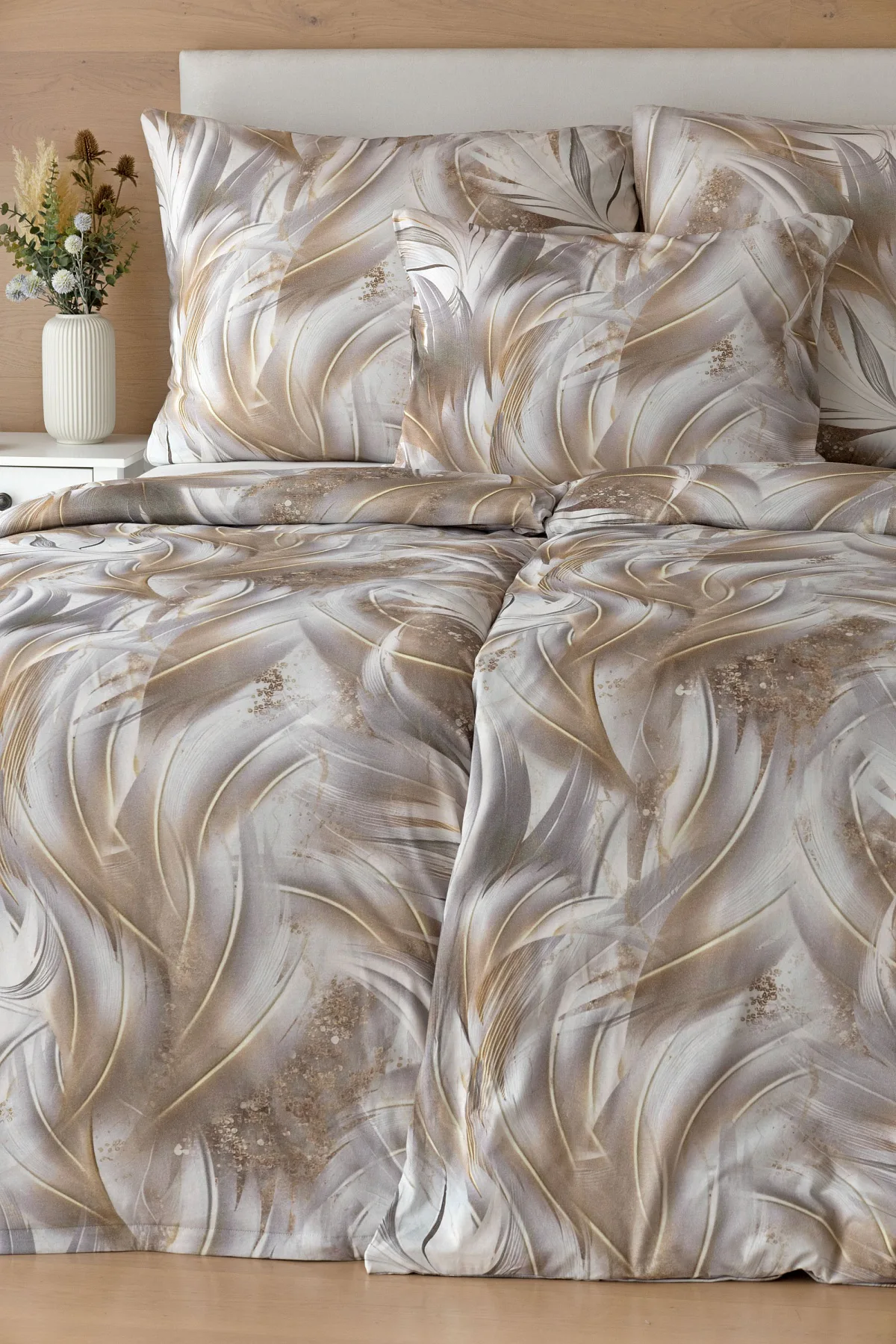 Pro novou kolekci ložního povlečení Mako jersey jsme pečlivě vybírali motivy, které tomuto pružnému materiálu sluší. Vzor Ember s okouzlujícím peříčkovým motivem v paletě šedých a zlatavých tónů vnese do vaší ložnice nádech elegance.