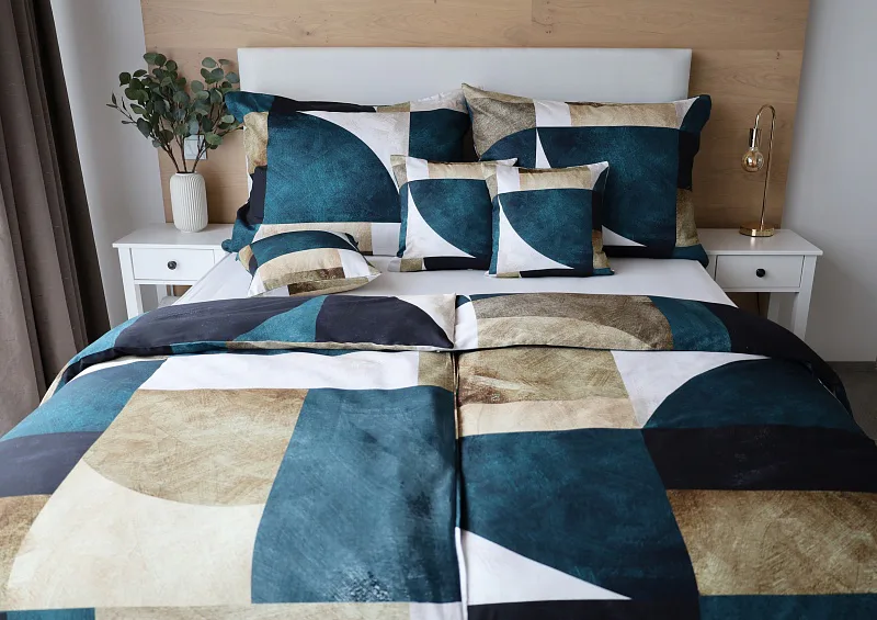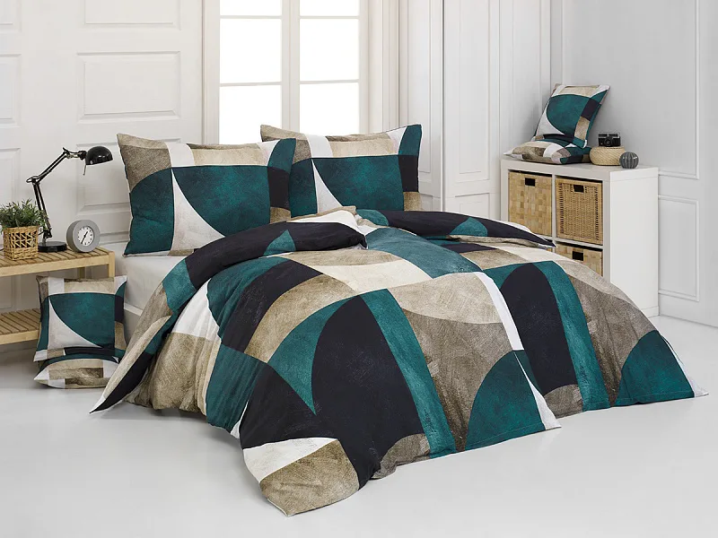 Potřebujete vyladit moderní ložnici k dokonalosti? Vsaďte na ložní povlečení Enzo. Abstraktní geometrický vzor kombinuje atraktivní odstíny zelenomodré, kávově hnědé a krémové barvy. Struktura...