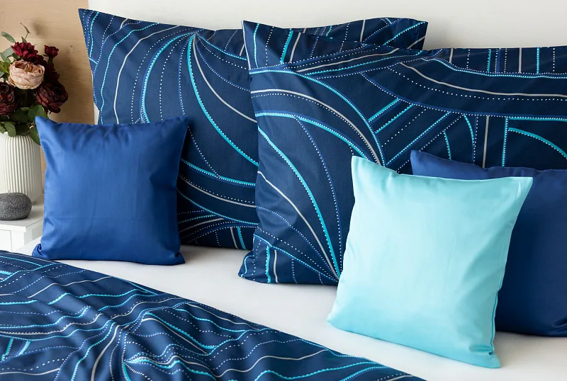 Povlaky na polštářky 40/40 cm se šijí ze stejné látky jako ložní povlečení, vzhledem k rozmanitosti vzoru může být každý povláček jiný.