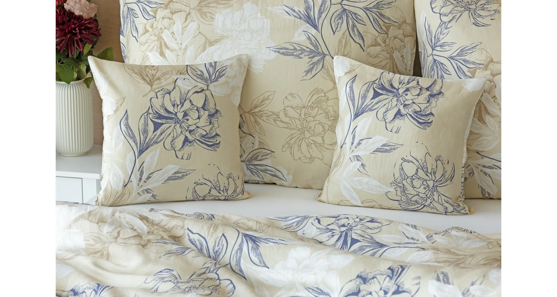 Objevte benefity jedinečného přírodního materiálu a dopřejte si nezaměnitelný komfort s naším lněným povlečením Flora. Jemný květinový motiv v přírodních tónech je jako stvořený pro tento ekologicky šetrný materiál a doladí k dokonalosti každý interiér s rustikálním nádechem.