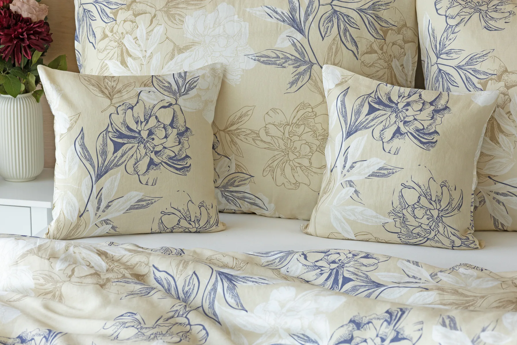 Objevte benefity jedinečného přírodního materiálu a dopřejte si nezaměnitelný komfort s naším lněným povlečením Flora. Jemný květinový motiv v přírodních tónech je jako stvořený pro tento ekologicky šetrný materiál a doladí k dokonalosti každý interiér s rustikálním nádechem.
