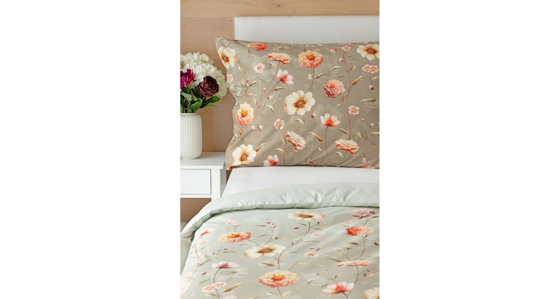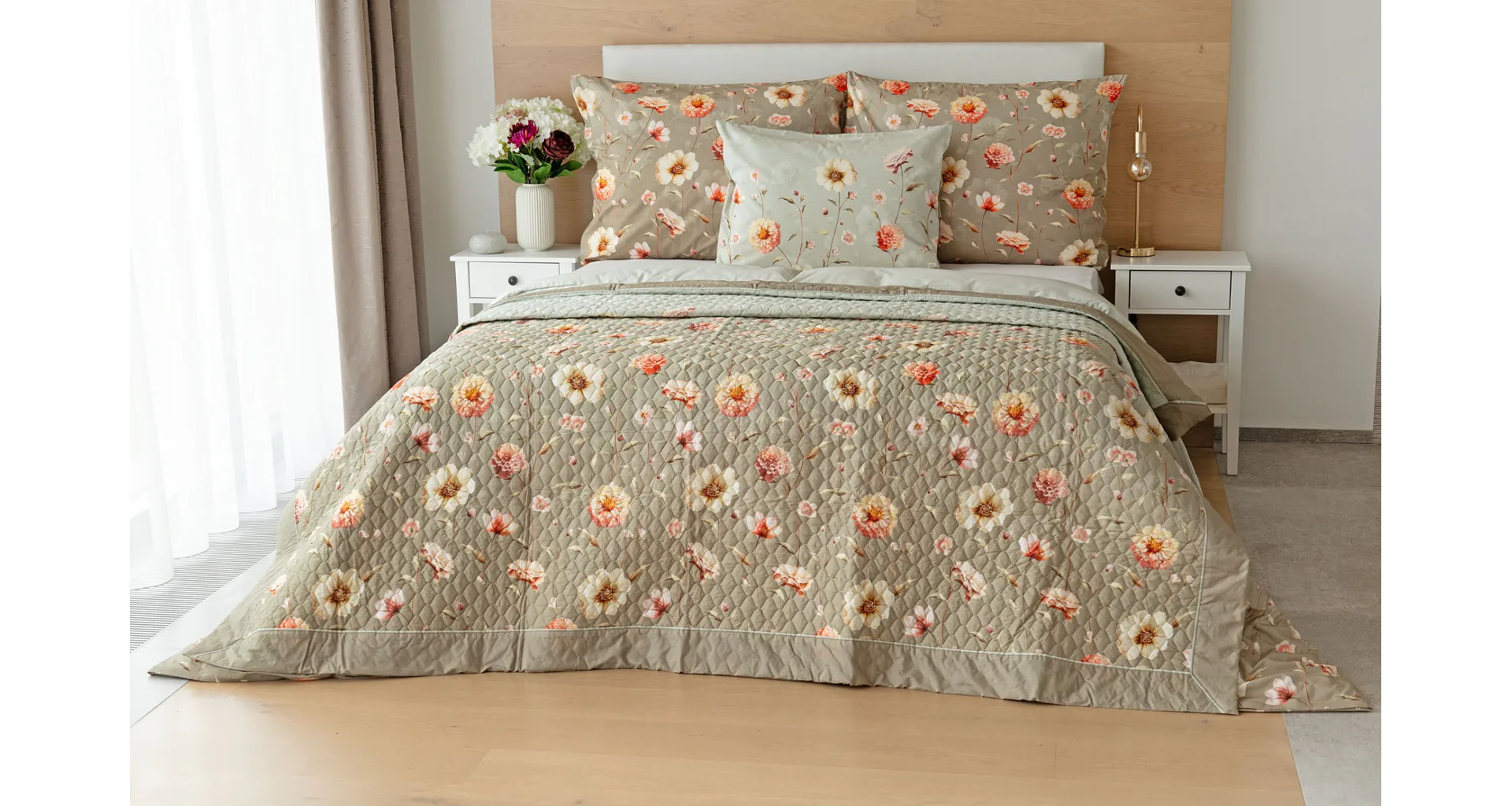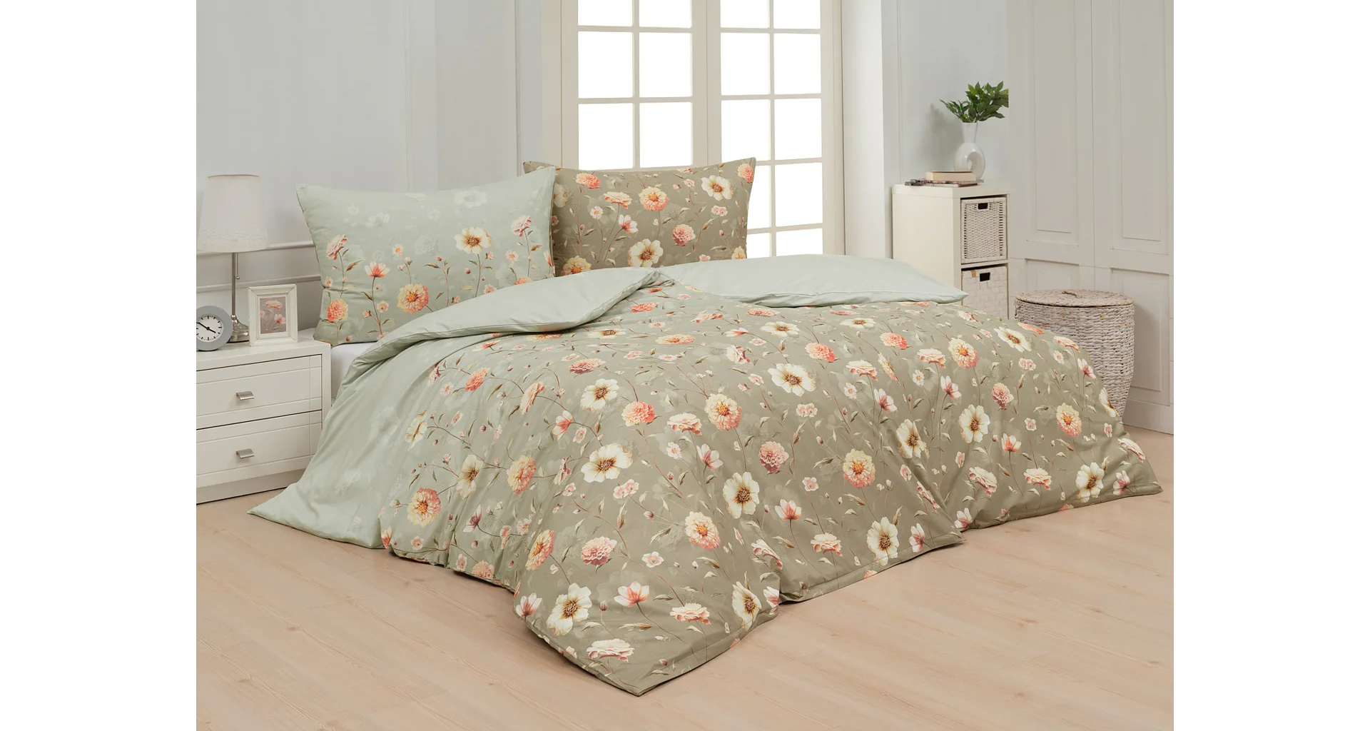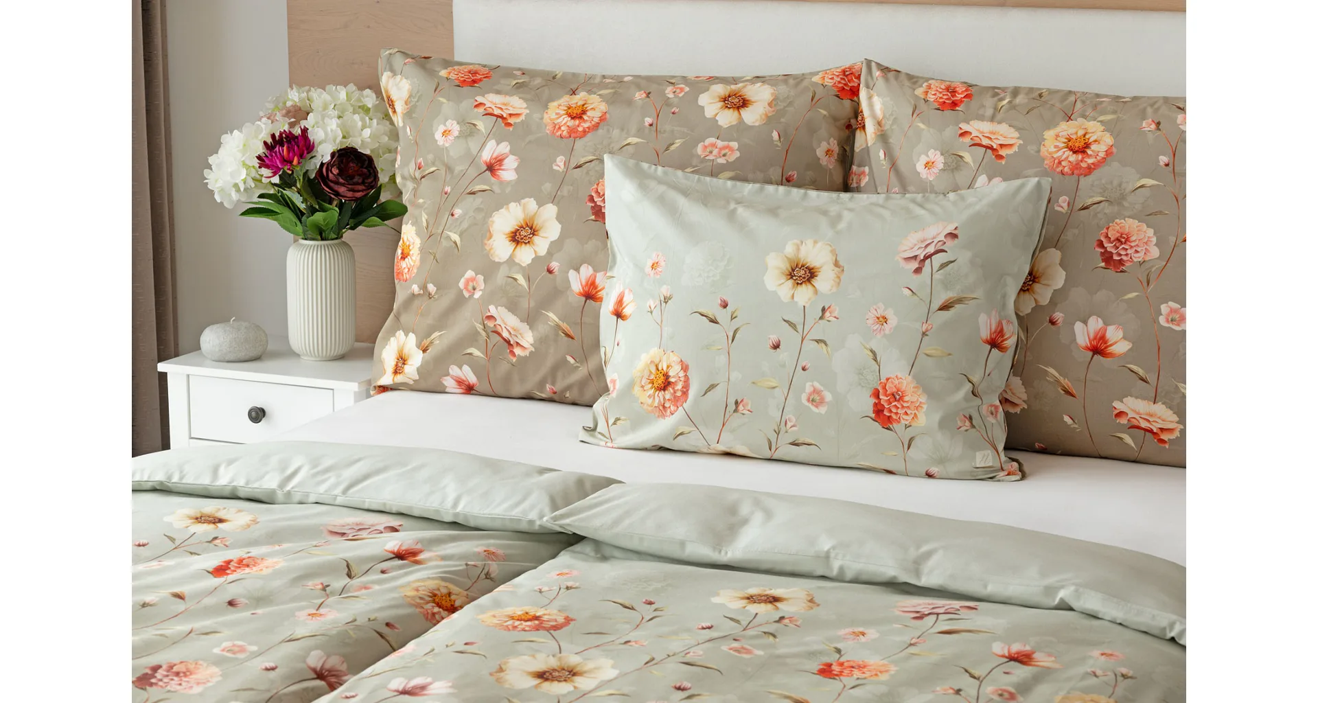 Okouzlující květinovou souhru v hřejivých barvách přináší bavlněné ložní povlečení Floral. Dominantní jiřiny s korálově růžovými květy doplňuje luční kvítí v přírodních tónech. Podkladová barva ložního povlečení přechází od spodní šedozelené po světlounce šedou.
