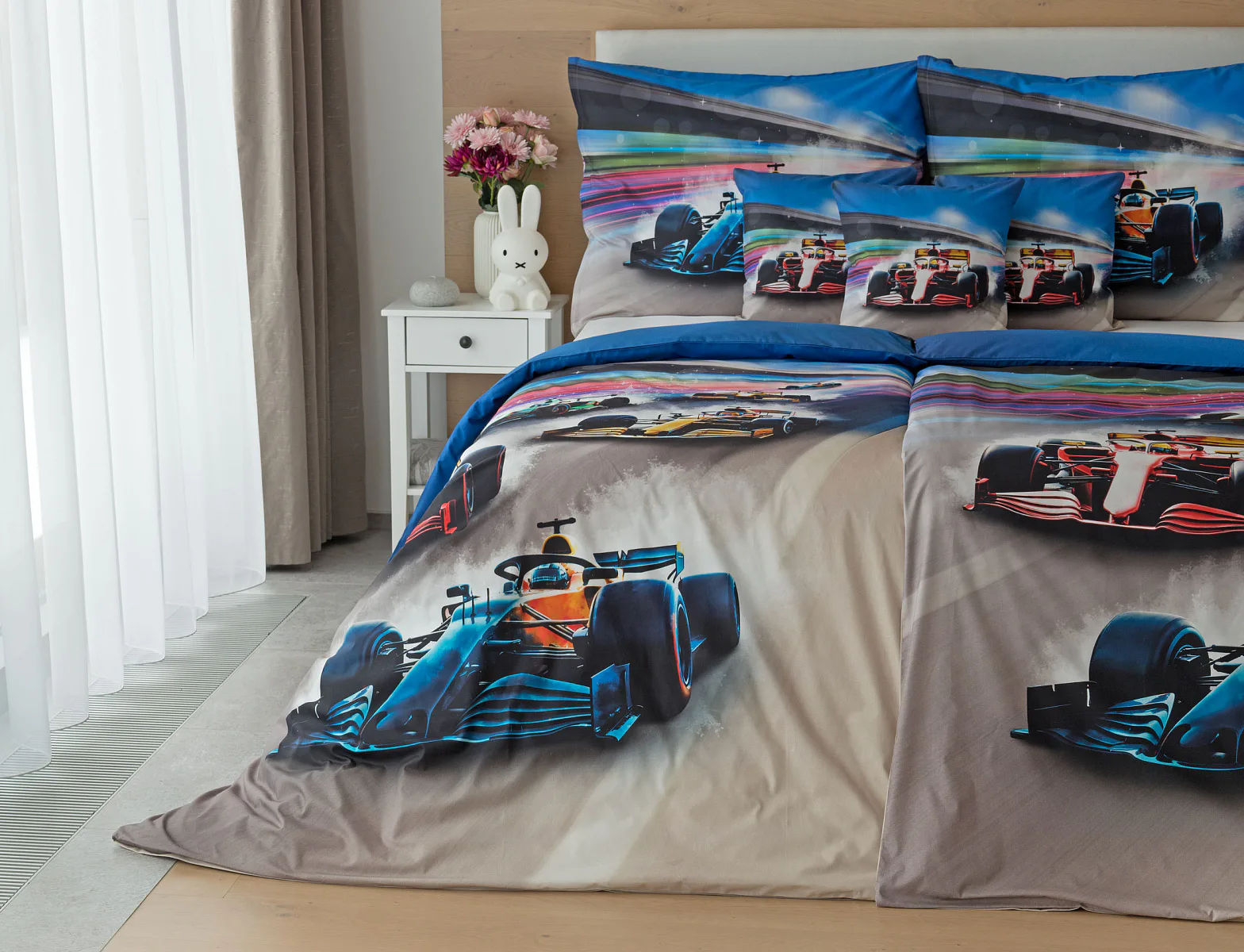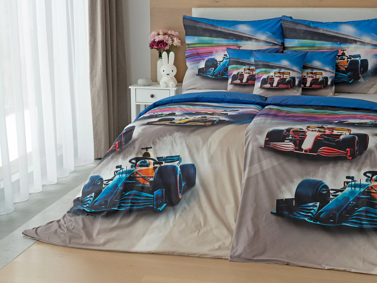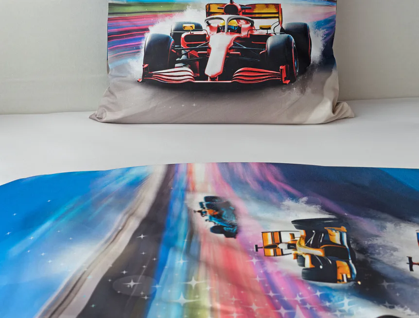 Proměňte dětský pokoj v napínavý závodní okruh plný rychlosti a adrenalinu. Stylové povlečení Formule nadchne malé i velké fanoušky motorsportu. Výrazná kombinace modrých, červených a šedých tónů dodává povlečení moderní a energický vzhled, který okamžitě oživí každý dětský či studentský pokoj. Pro opravdu velké fanoušky v páru máme také inspiraci na dvoulůžko.