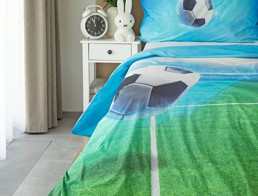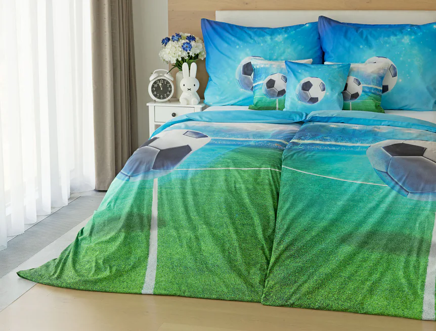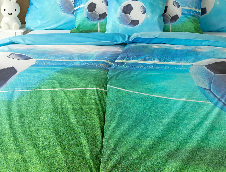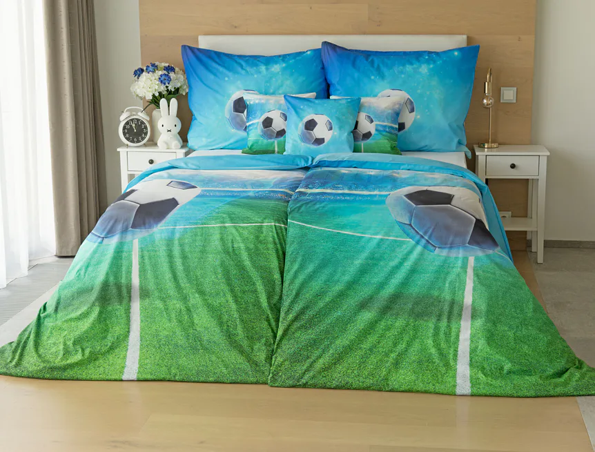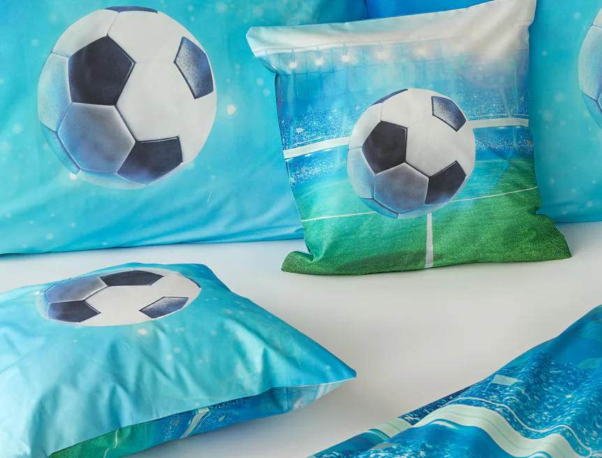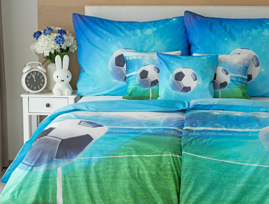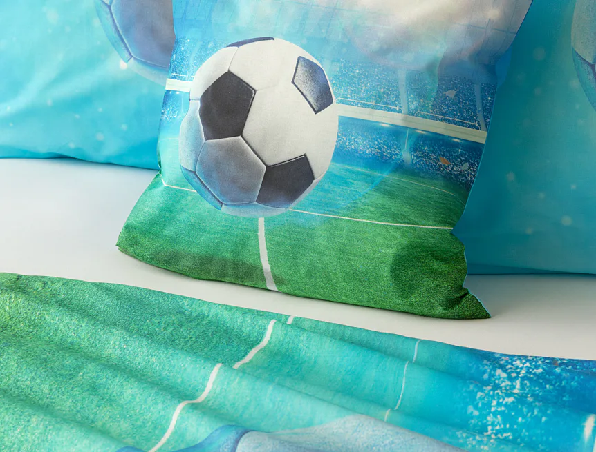 Dopřejte malým i velkým fanouškům fotbalu sladké sny o vítězných gólech! Naše povlečení Fotbal je vyrobeno ze 100% bavlny a o zářivé svěží barvy se postarala nejmodernější digitální tisková technologie. Díky stoprocentní prvotřídní bavlně budou spokojeně usínat děti i rodiče.