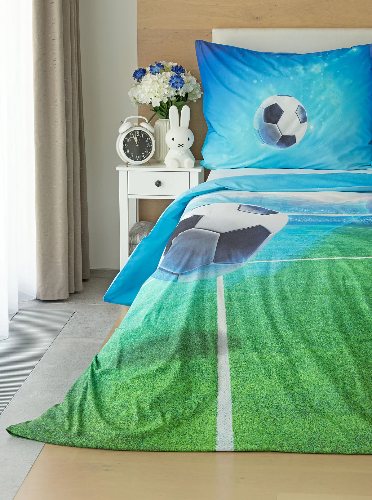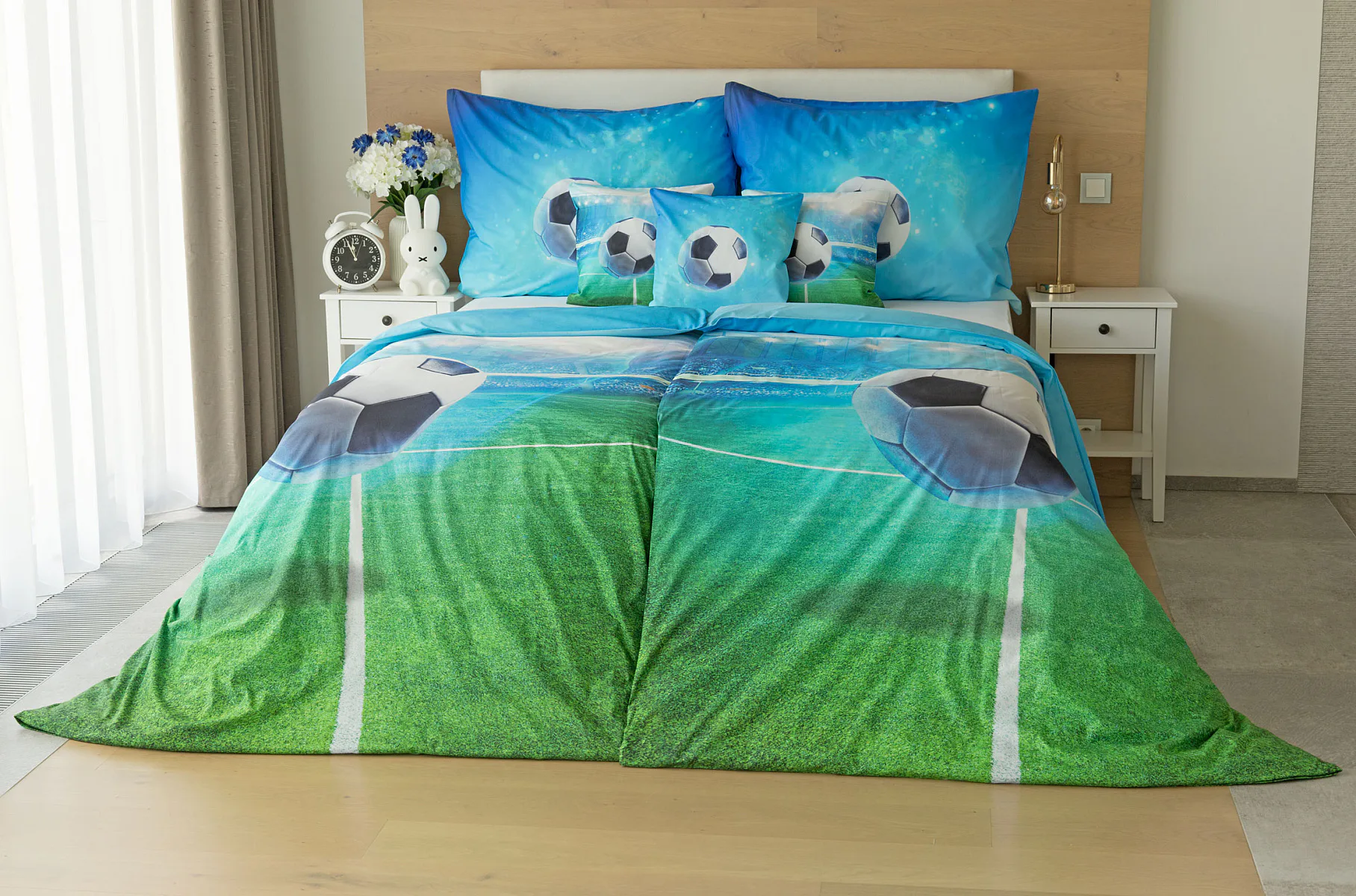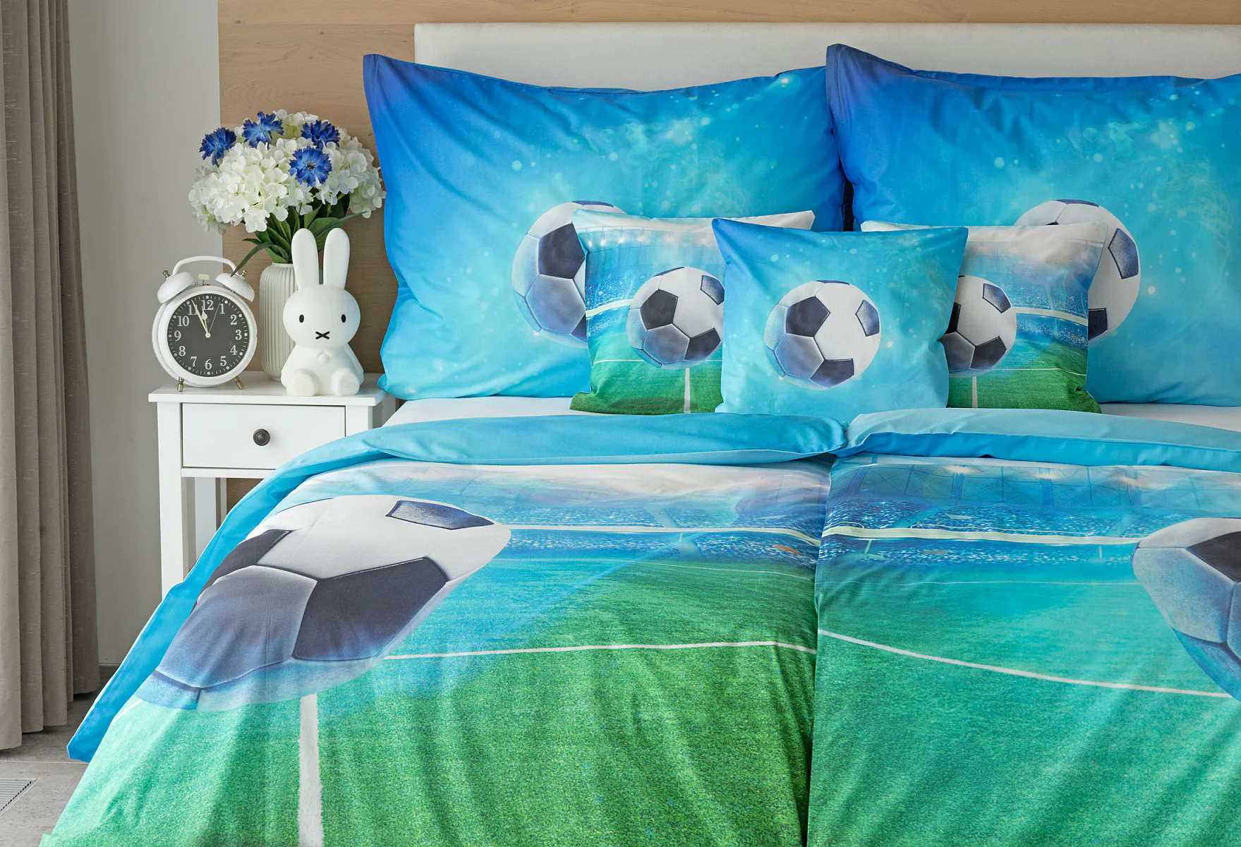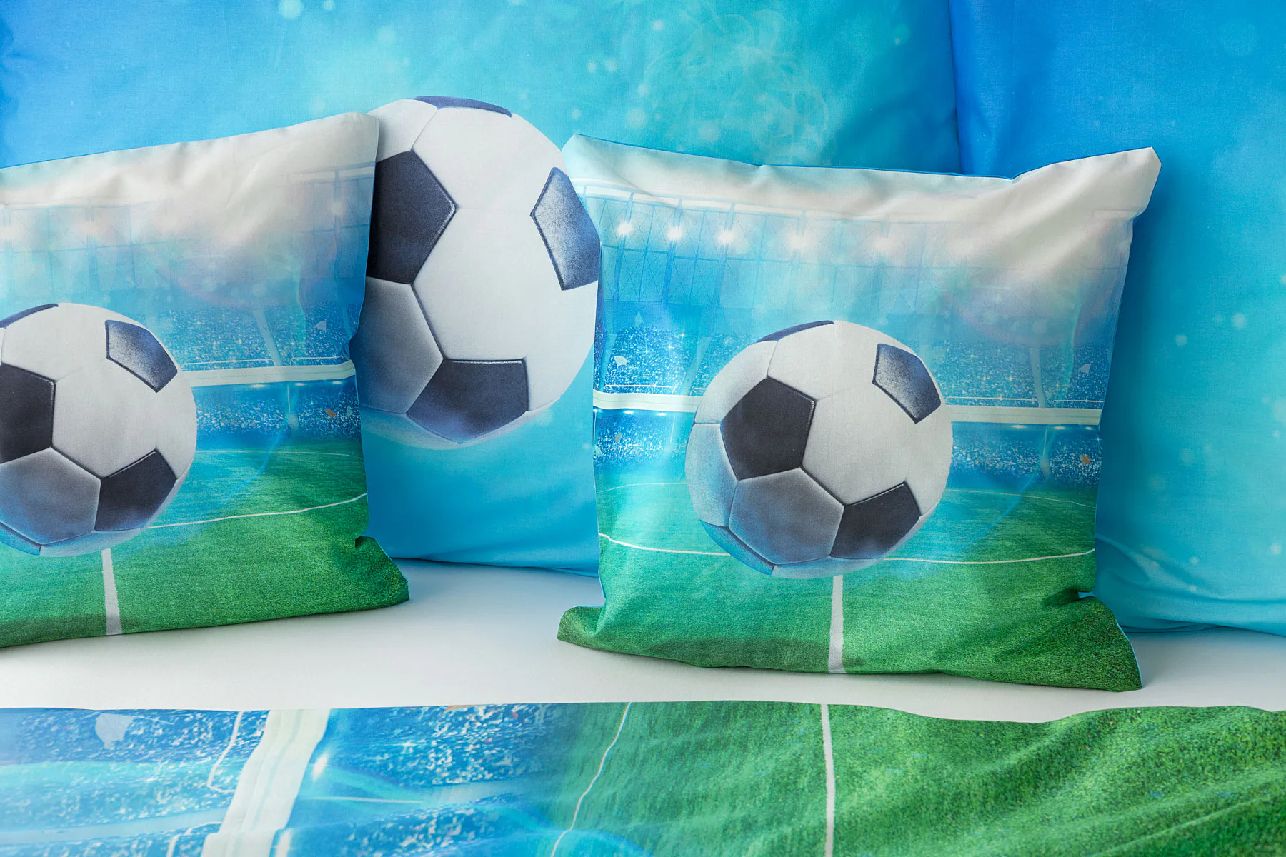 Dopřejte malým i velkým fanouškům fotbalu sladké sny o vítězných gólech! Naše povlečení Fotbal je vyrobeno ze 100% bavlny a o zářivé svěží barvy se postarala nejmodernější digitální tisková technologie. Díky stoprocentní prvotřídní bavlně budou spokojeně usínat děti i rodiče.