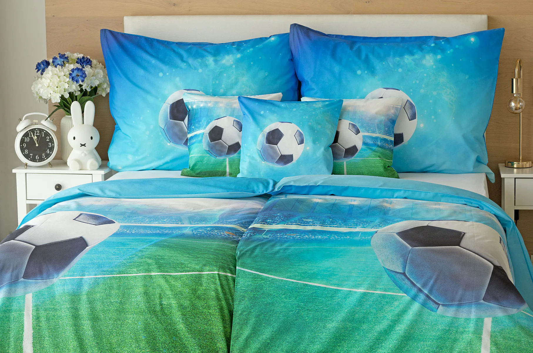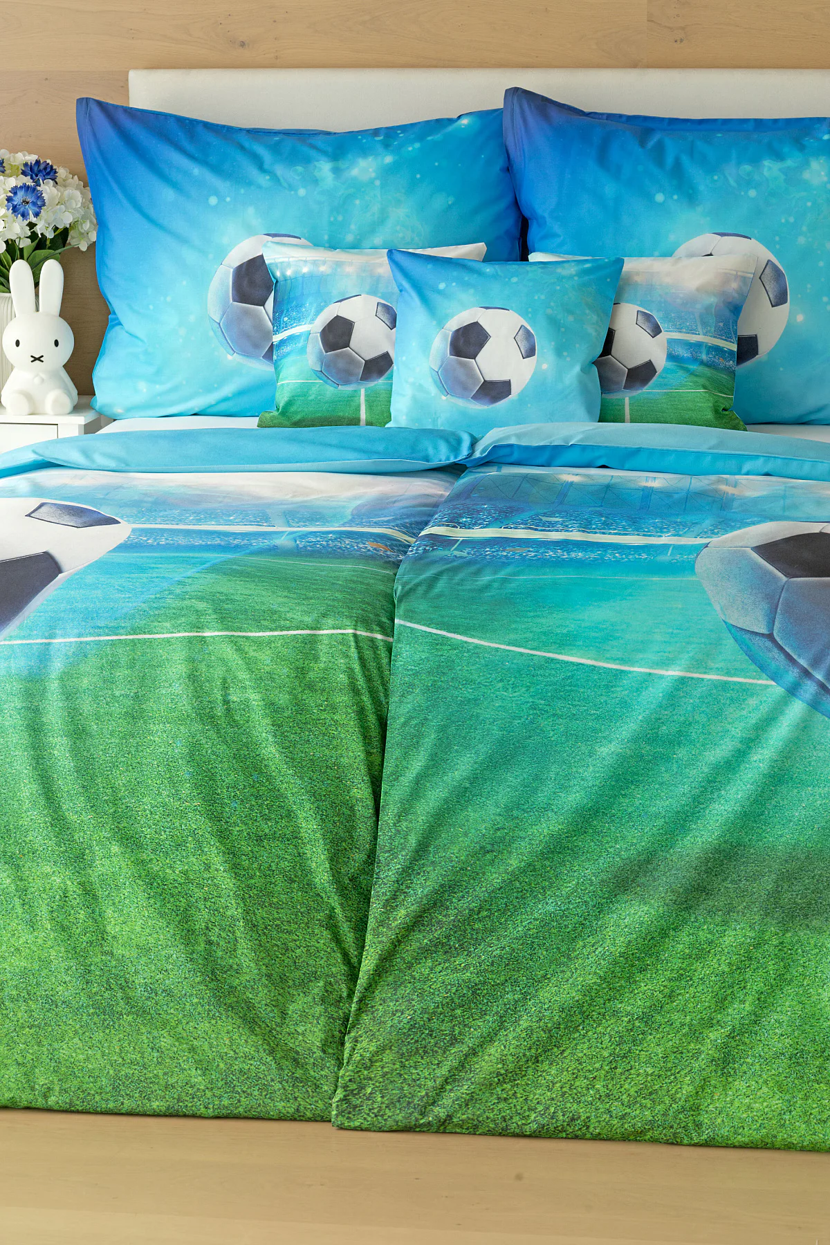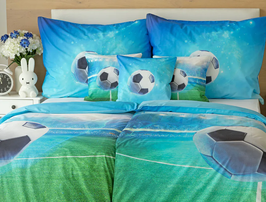 Dopřejte malým i velkým fanouškům fotbalu sladké sny o vítězných gólech! Naše povlečení Fotbal je vyrobeno ze 100% bavlny a o zářivé svěží barvy se postarala nejmodernější digitální tisková...