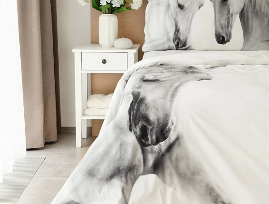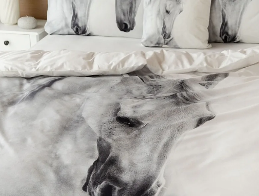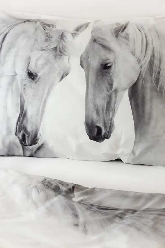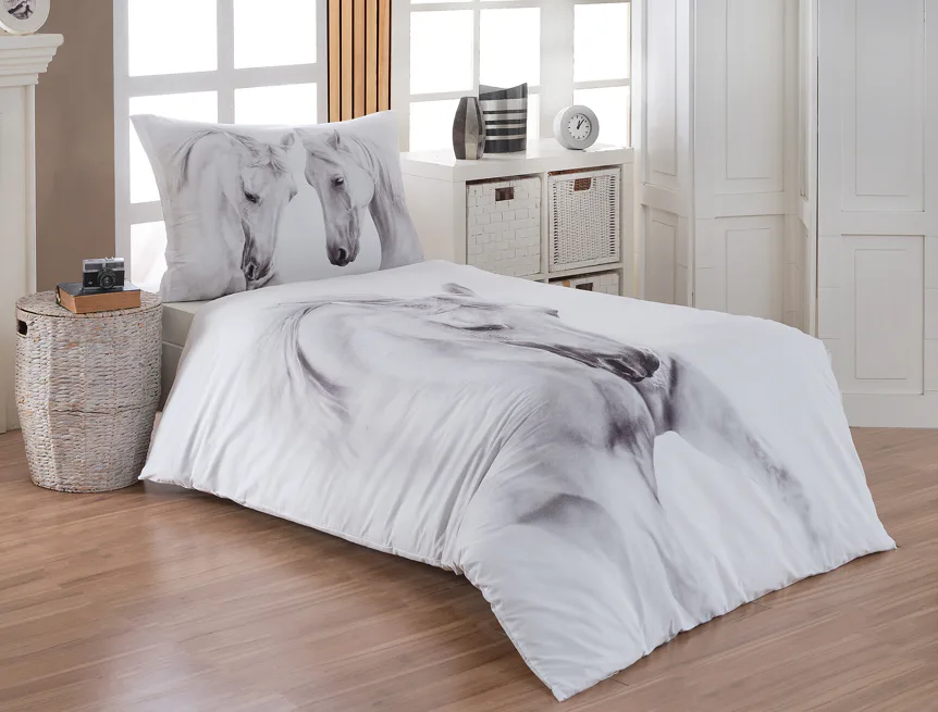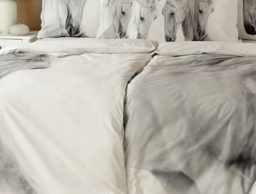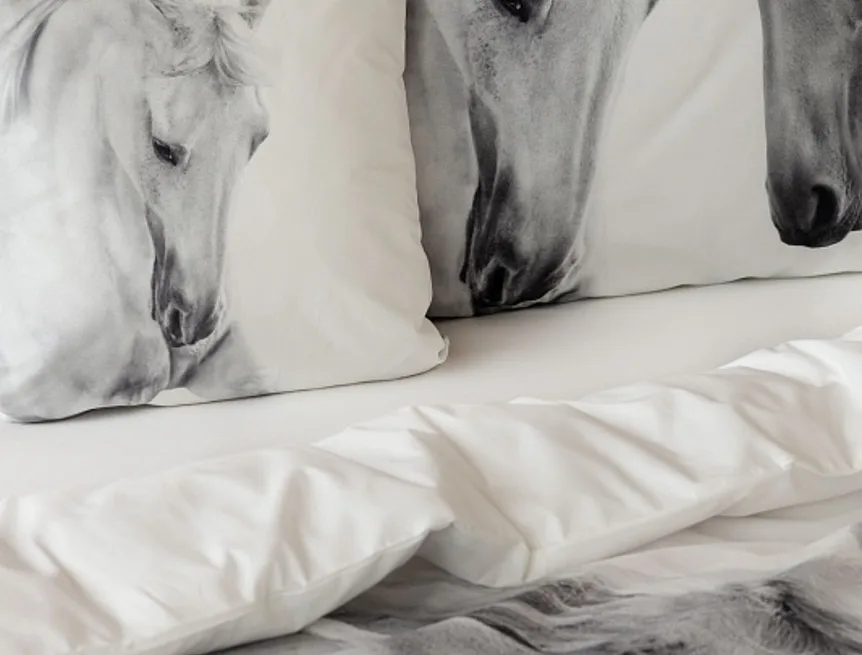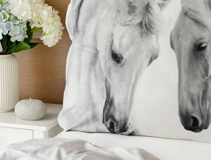 Nesmírně uklidňujcí a něžné zpracování oblíbeného motivu přináší povlečení Galus. Silueta koně na bílém podkladu vás naplní harmonií v každém okamžiku dne.