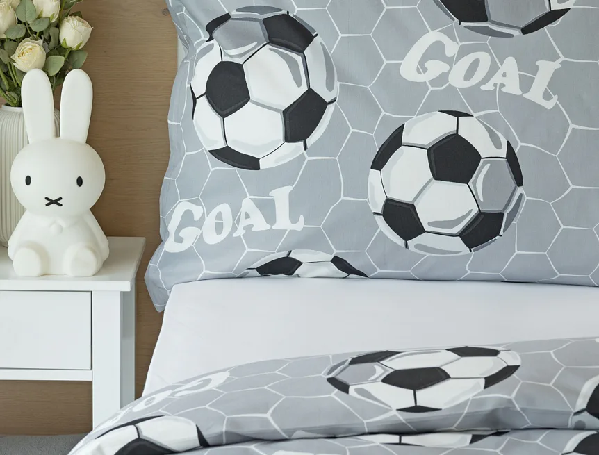 Potěšte své dítko novým bavlněným povlečením Goal s fotbalovou tematikou. Oblíbený sportovní motiv v decentní kombinaci barev potěší malé i větší sportovce. Díky stoprocentní prvotřídní bavlně budou spokojeně usínat děti i rodiče.
