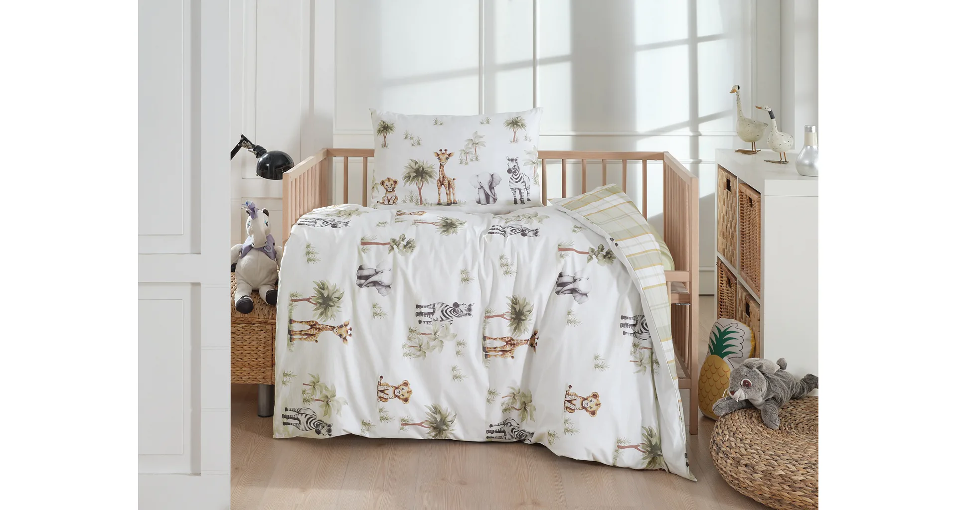 Proměňte dětský pokojíček v zábavné safari s bavlněným povlečením Happy! Roztomilý a hravý design je díky neutrální kombinaci barev vhodný pro děvčátka i chlapce. O jejich spokojený spánek se už postará hebká prvotřídní bavlna.