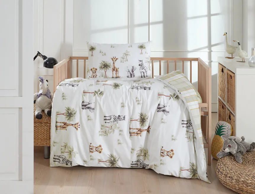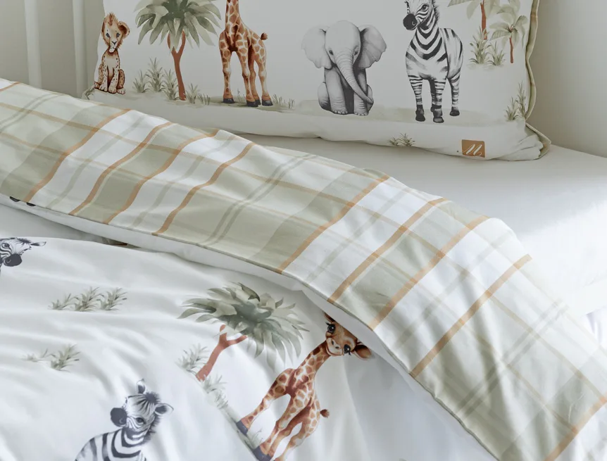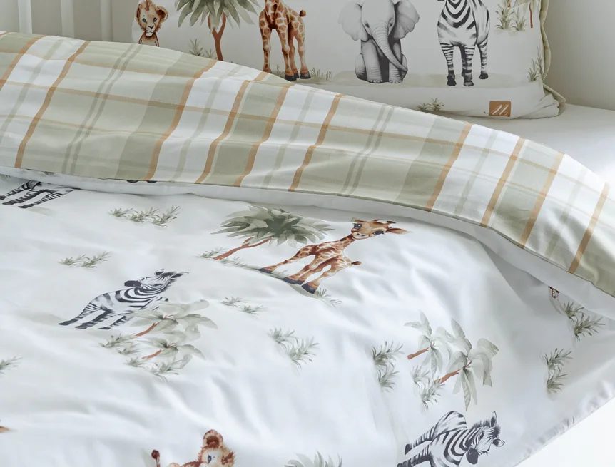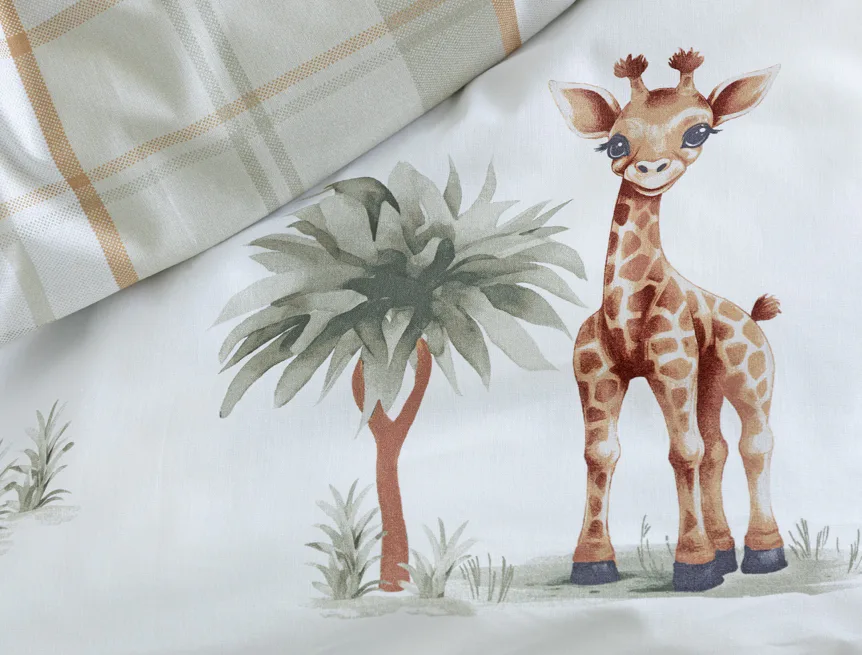 Proměňte dětský pokojíček v zábavné safari s bavlněným povlečením Happy! Roztomilý a hravý design je díky neutrální kombinaci barev vhodný pro děvčátka i chlapce. O jejich spokojený spánek se už postará hebká prvotřídní bavlna.