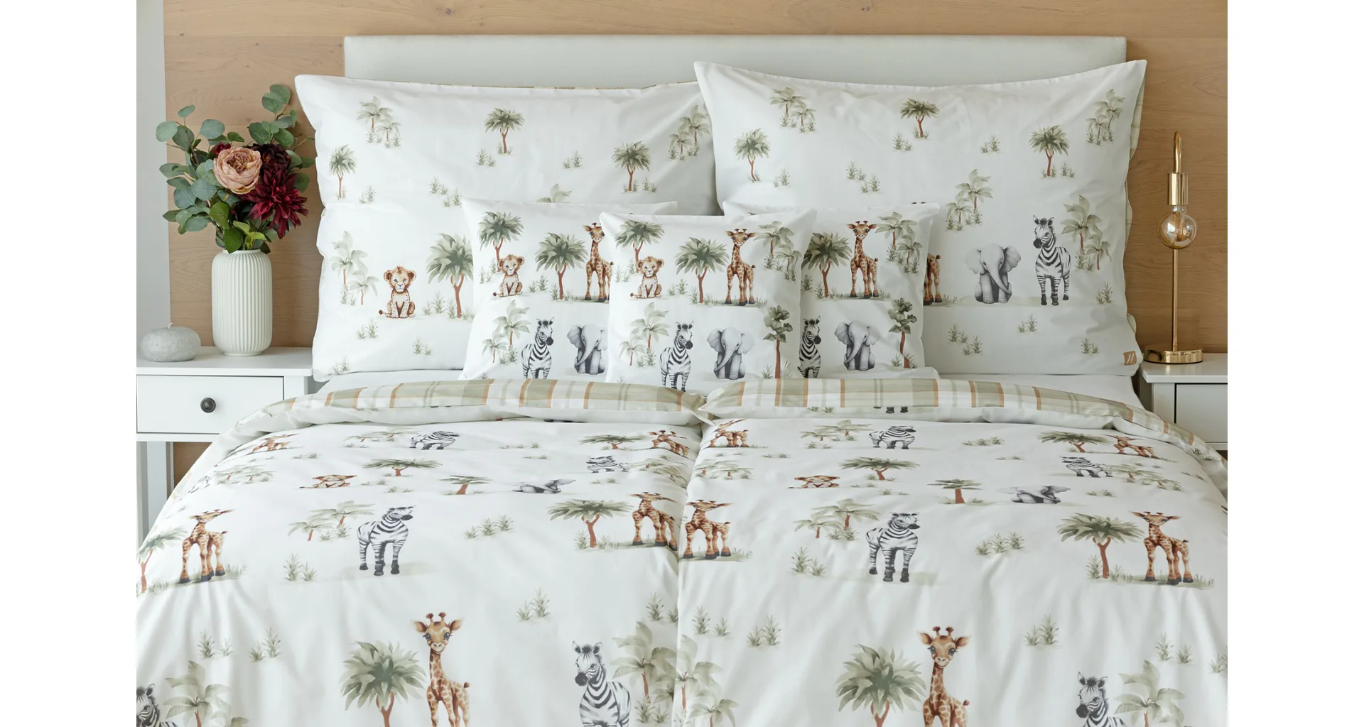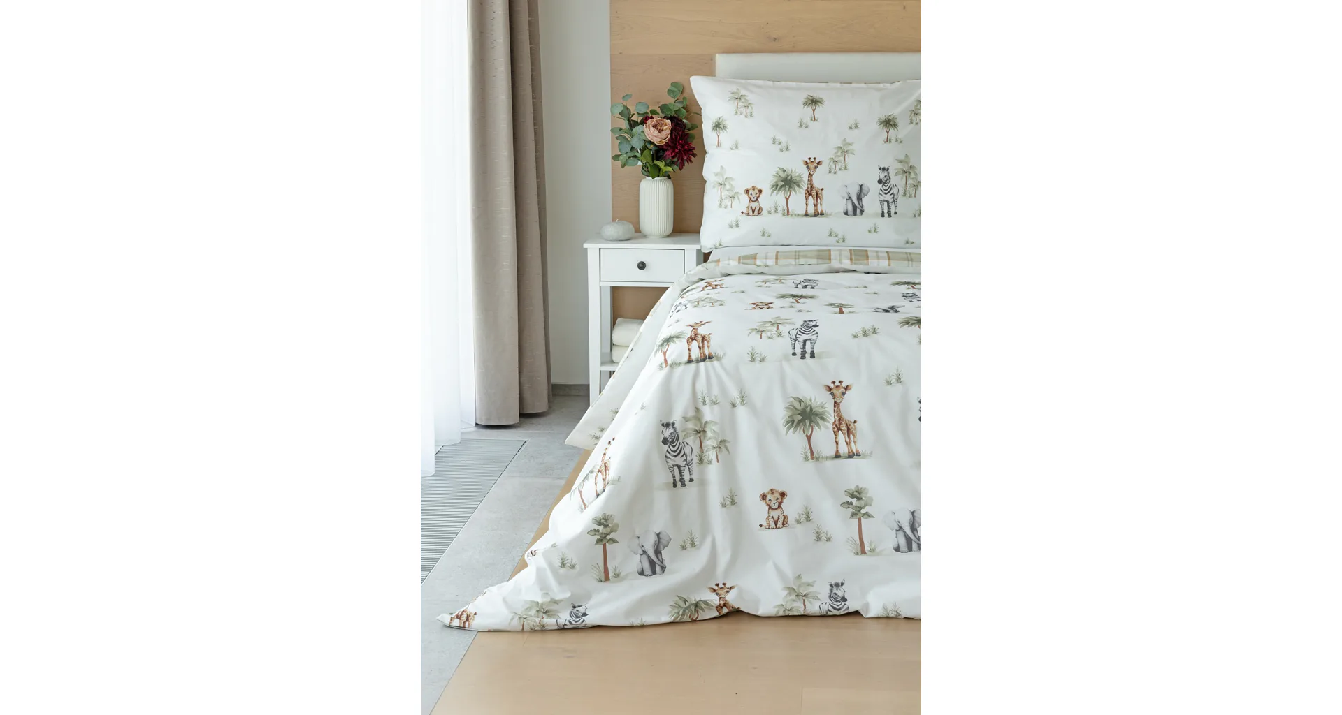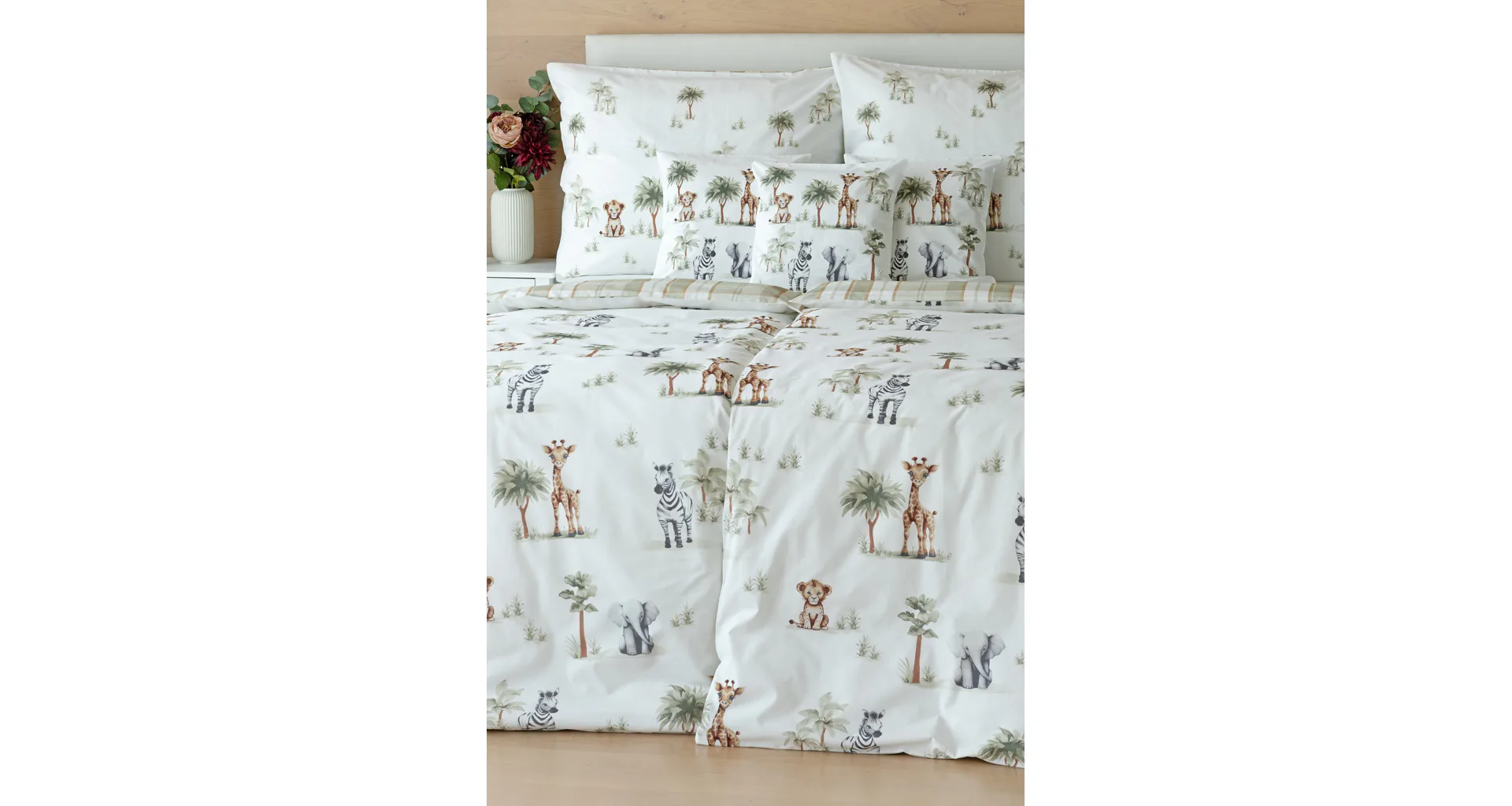 Proměňte dětský pokojíček v zábavné safari s bavlněným povlečením Happy! Roztomilý a hravý design je díky neutrální kombinaci barev vhodný pro děvčátka i chlapce. O jejich spokojený spánek se už postará hebká prvotřídní bavlna.