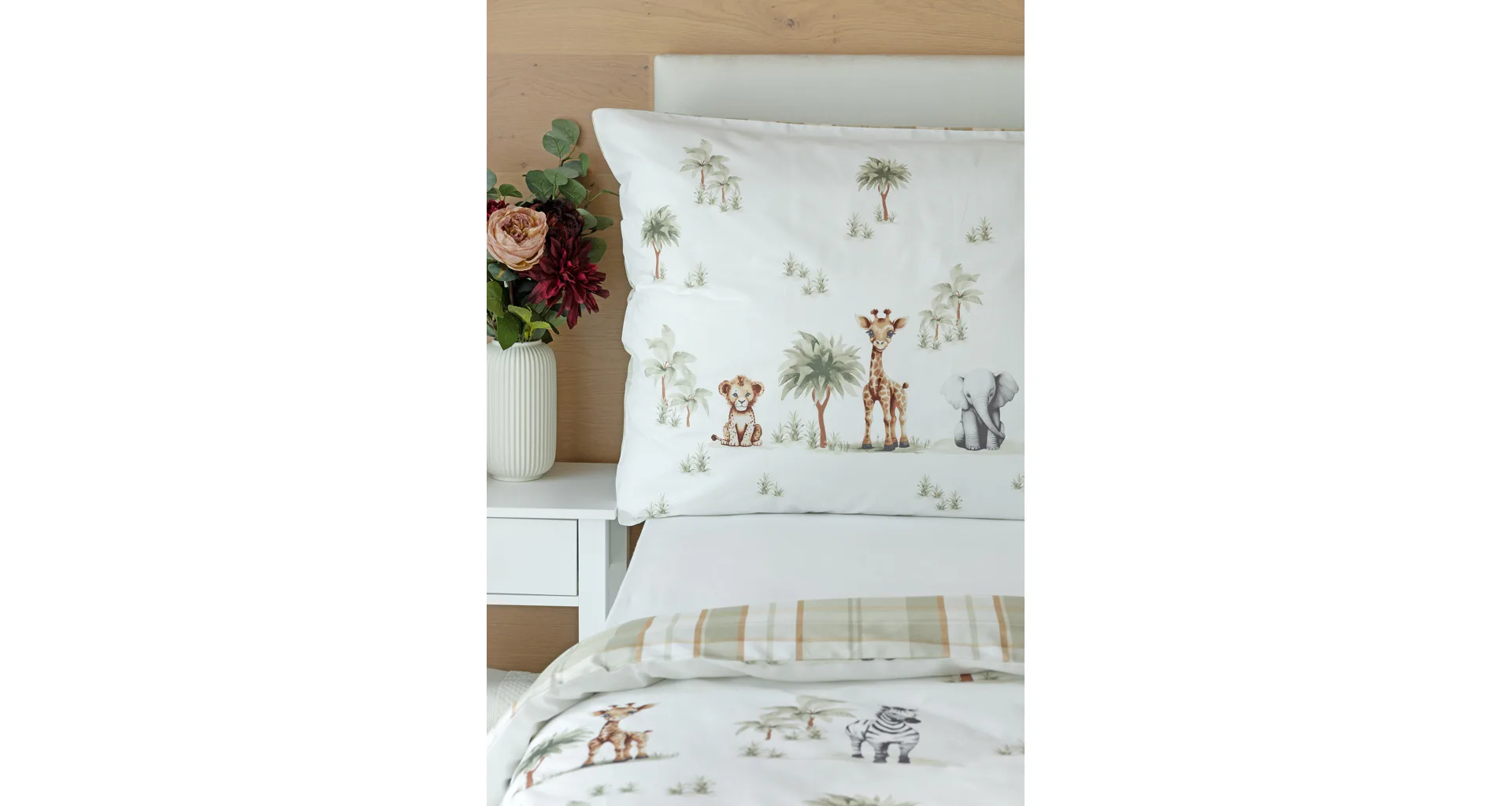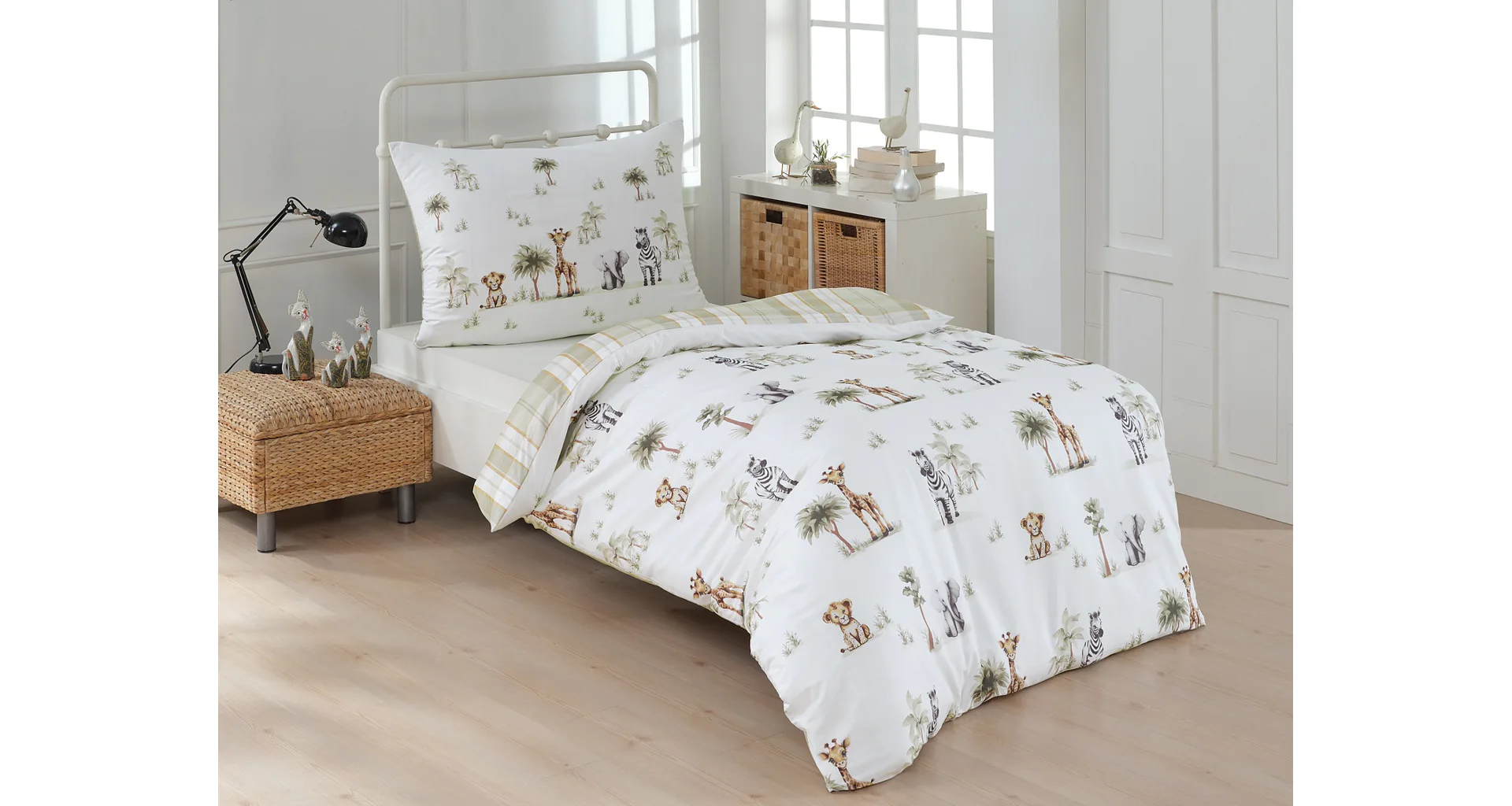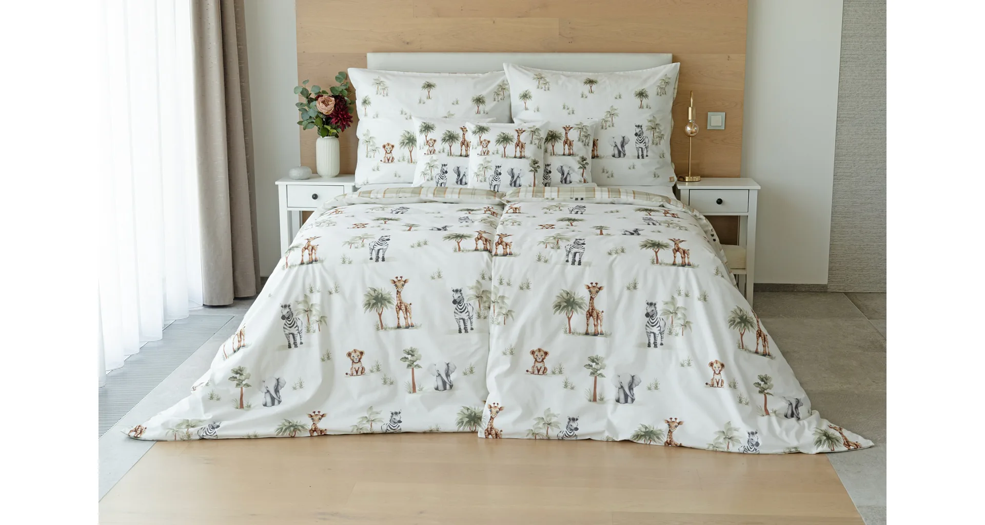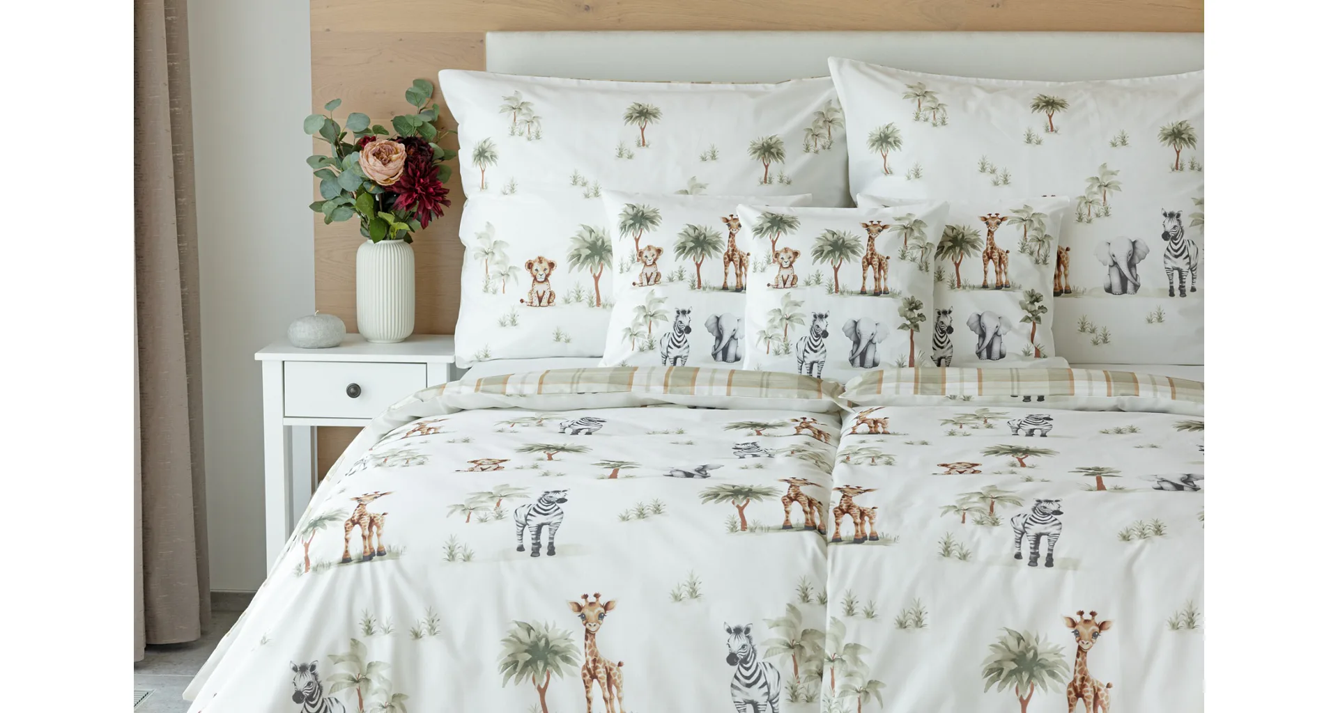 Proměňte dětský pokojíček v zábavné safari s bavlněným povlečením Happy! Roztomilý a hravý design je díky neutrální kombinaci barev vhodný pro děvčátka i chlapce. O jejich spokojený spánek se už postará hebká prvotřídní bavlna.