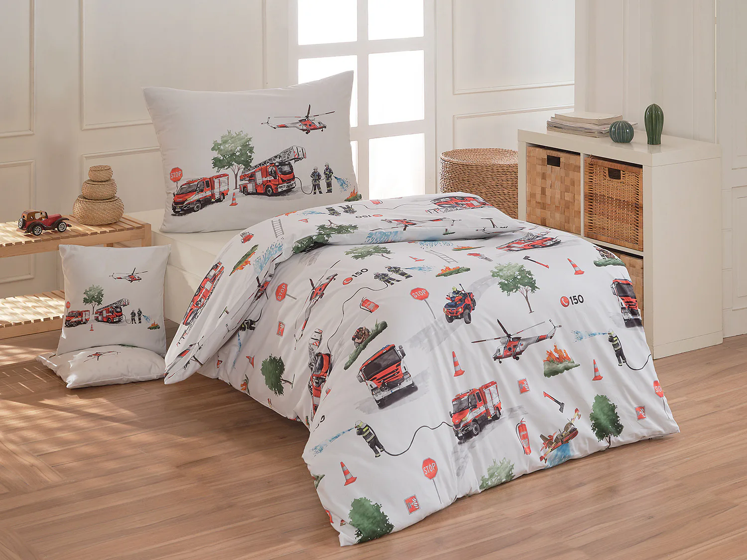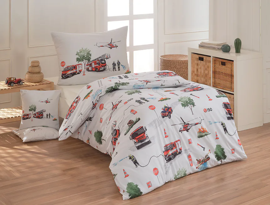 JEDNÁ SE O ZBOŽÍ II. JAKOSTI. VÝROBNÍ VZOREK. VÝROBNÍ VZORKY SE MOHOU ODSTÍNOVĚ LIŠIT  JAK MEZI SEBOU, TAK I S BĚŽNĚ NABÍZENÝM POVLEČENÍM. Není originálně zabaleno. Dětské povlečení Hasiči s...