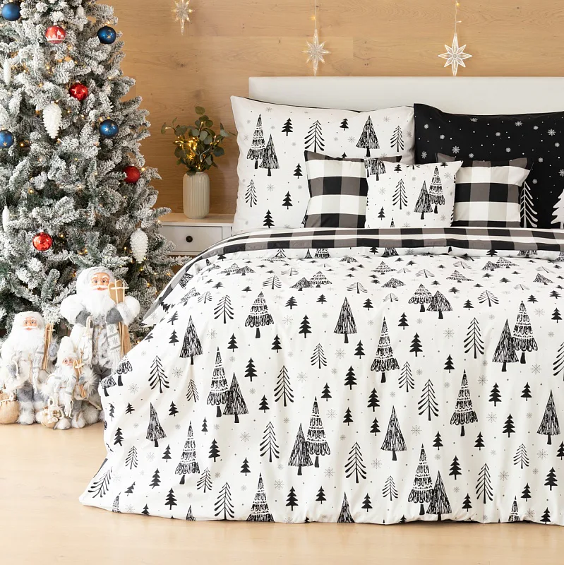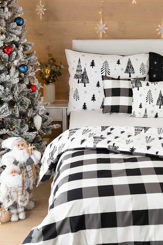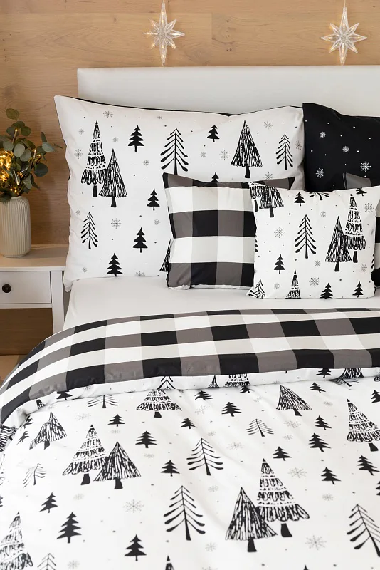 Černobílá ložnici sluší v každé roční době. S vánočním povlečením Holy bude vaše ložnice sváteční a moderní zároveň. Díky kreativnímu zpracování můžete při stlaní experimentovat.