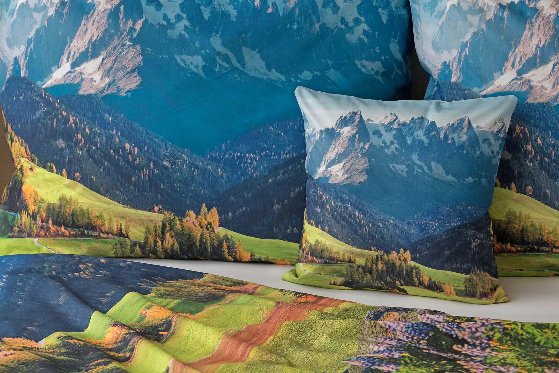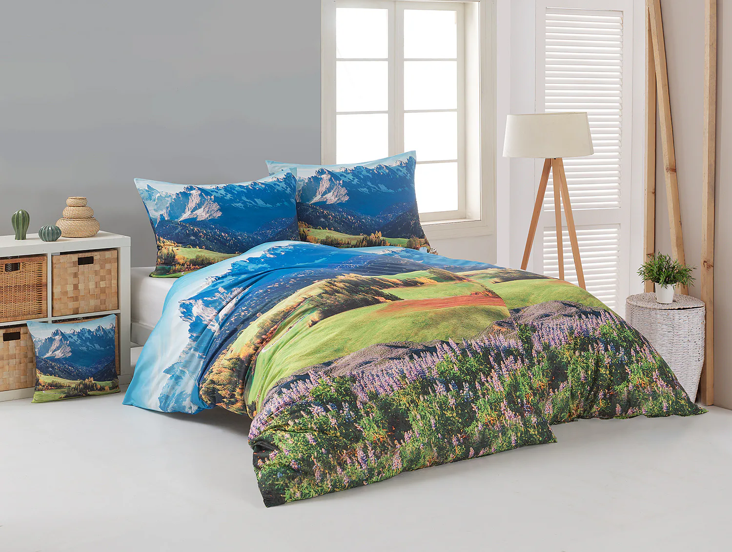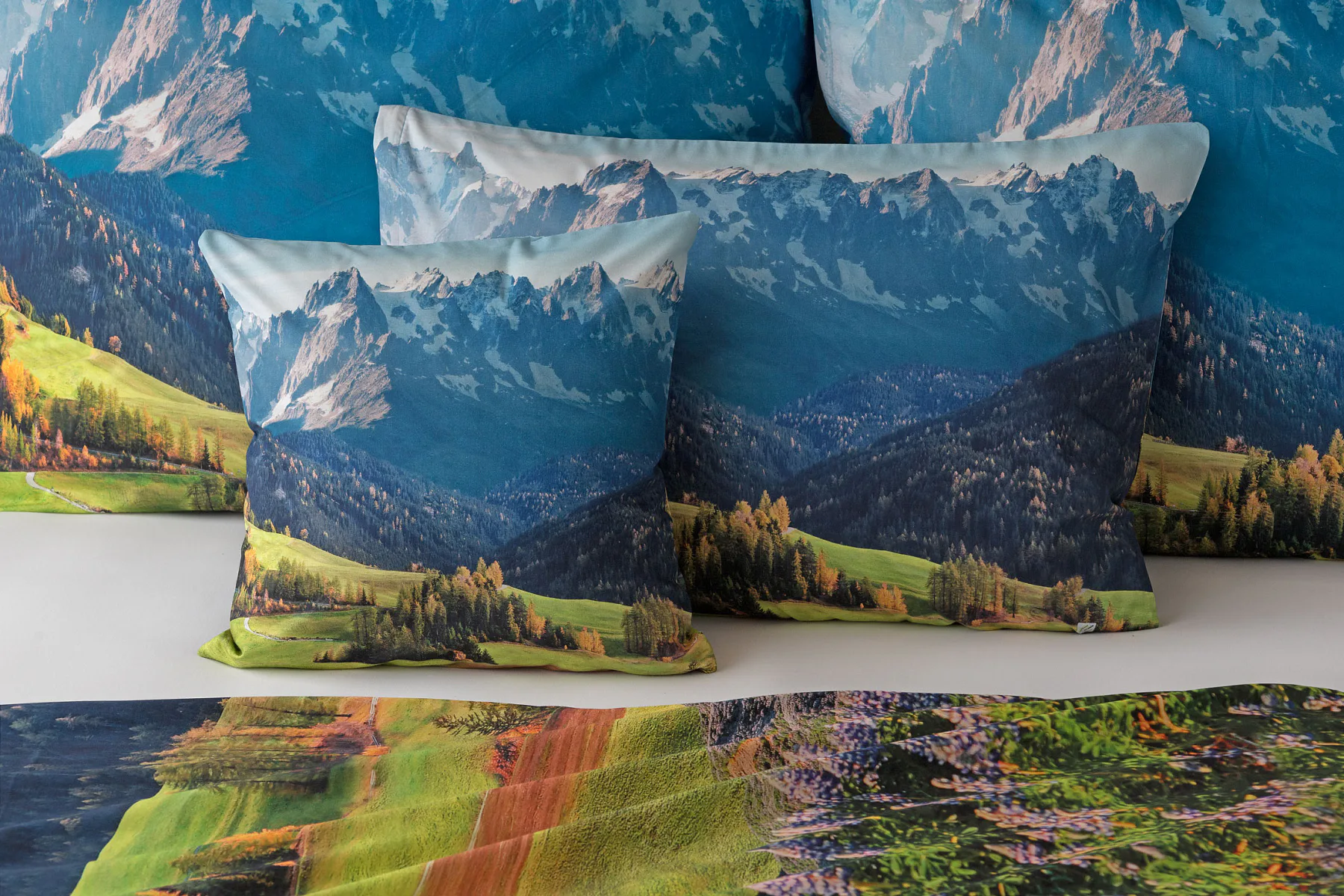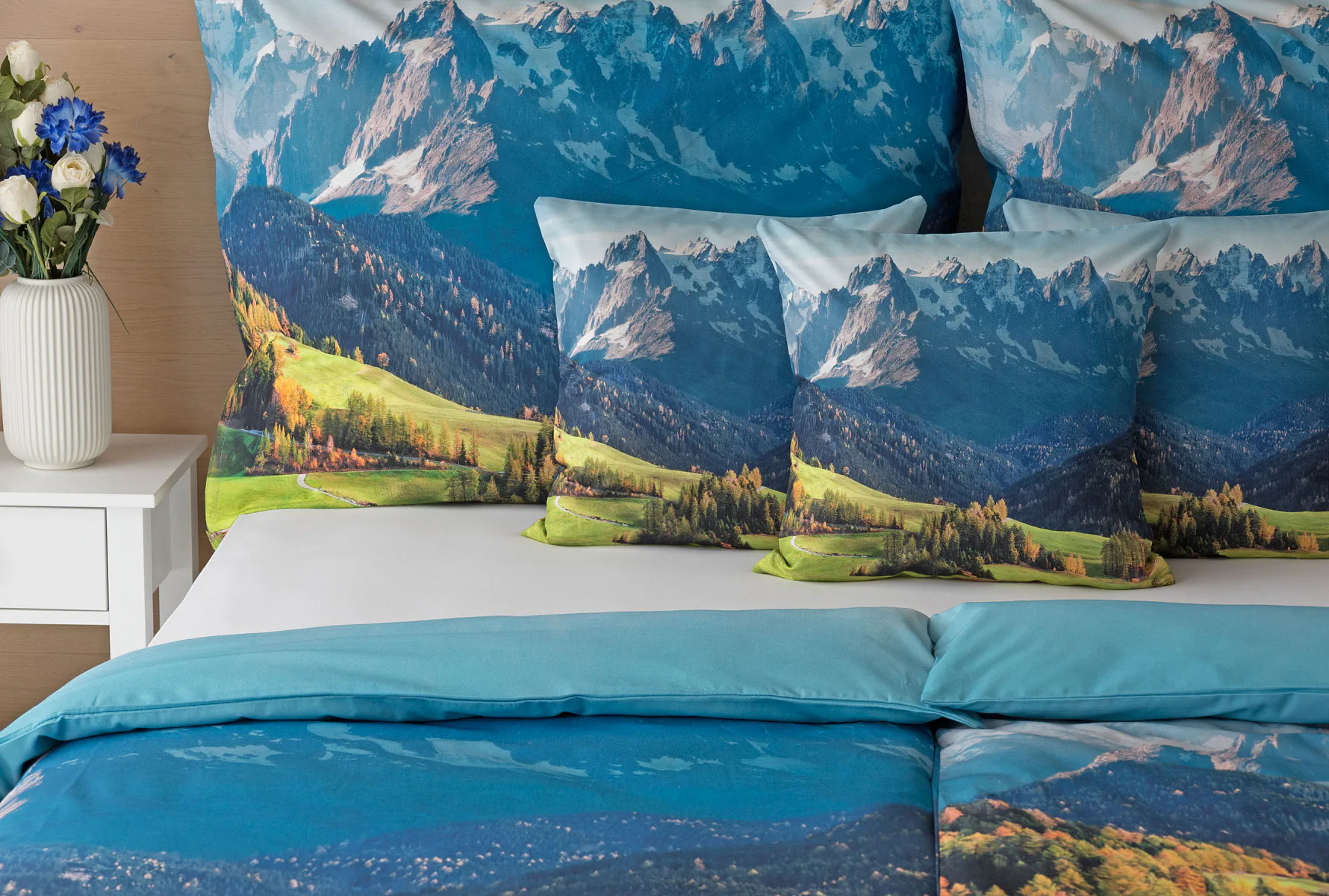 Ložní povlečení Hory s panoramatickým motivem horské krajiny vnese do vaší ložnice pocit svobody, klidu a propojení s přírodou. Rozkvetlé louky, zelené svahy a majestátní horské štíty vytvářejí harmonickou scenérii. Syté barvy a detailní tisk dodávají povlečení přirozený charakter, díky kterému se stane dominantou interiéru. Ideální volba pro milovníky přírody, hor a cestování. Dopřejte si každý večer pocit, jako byste usínali uprostřed rozkvetlé horské krajiny.