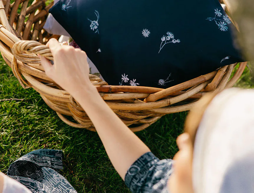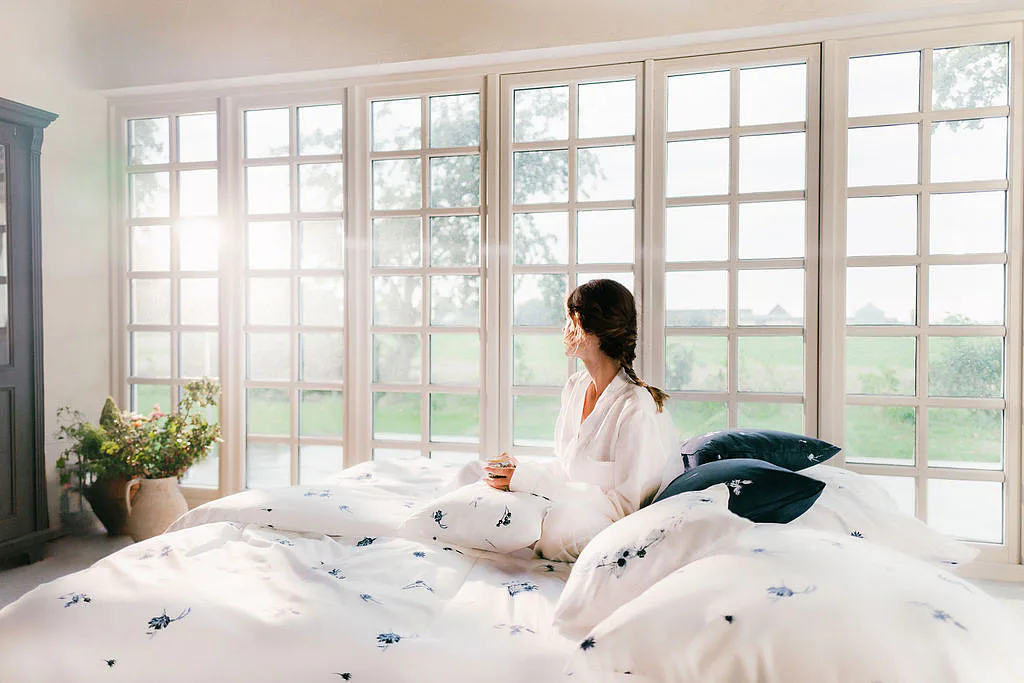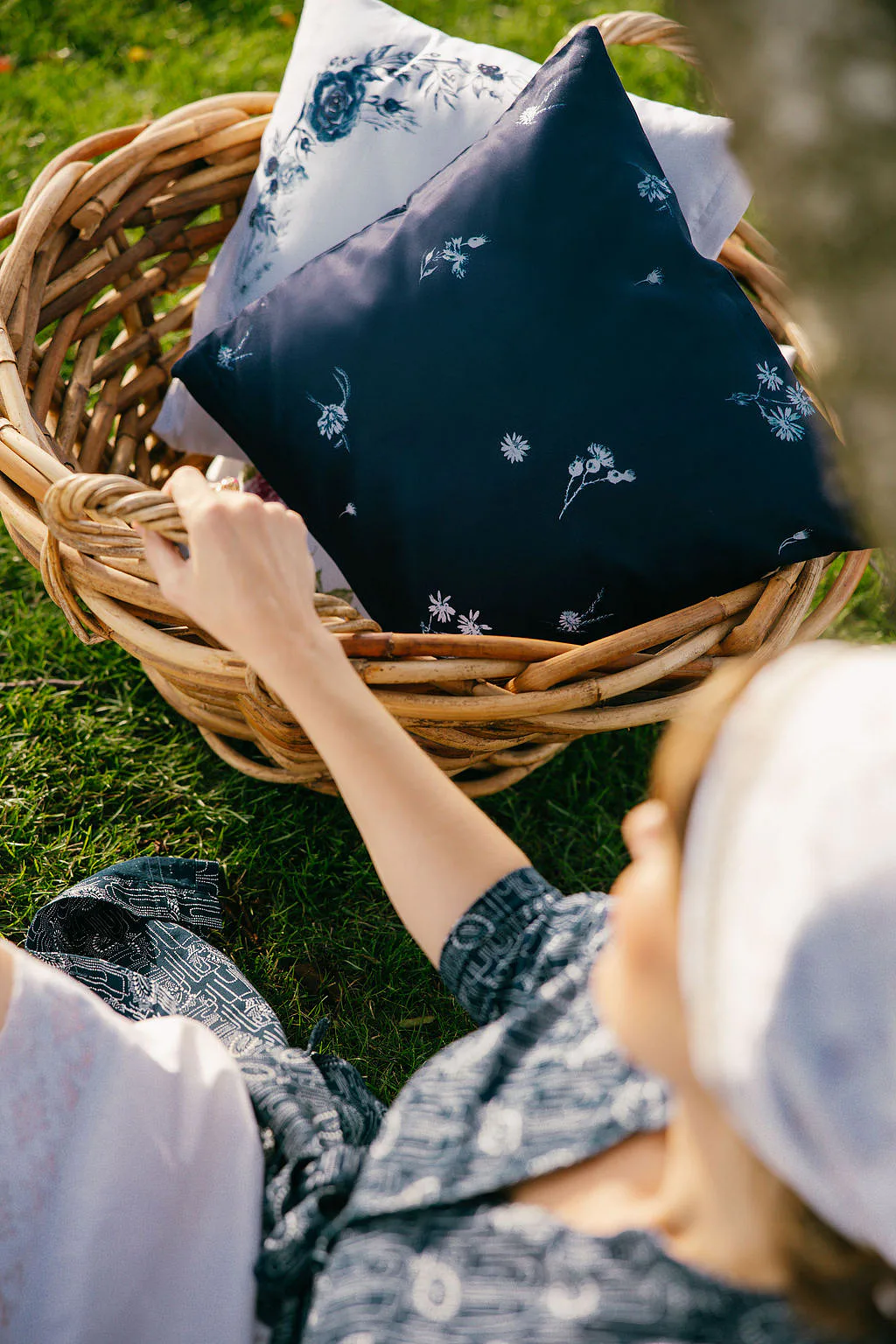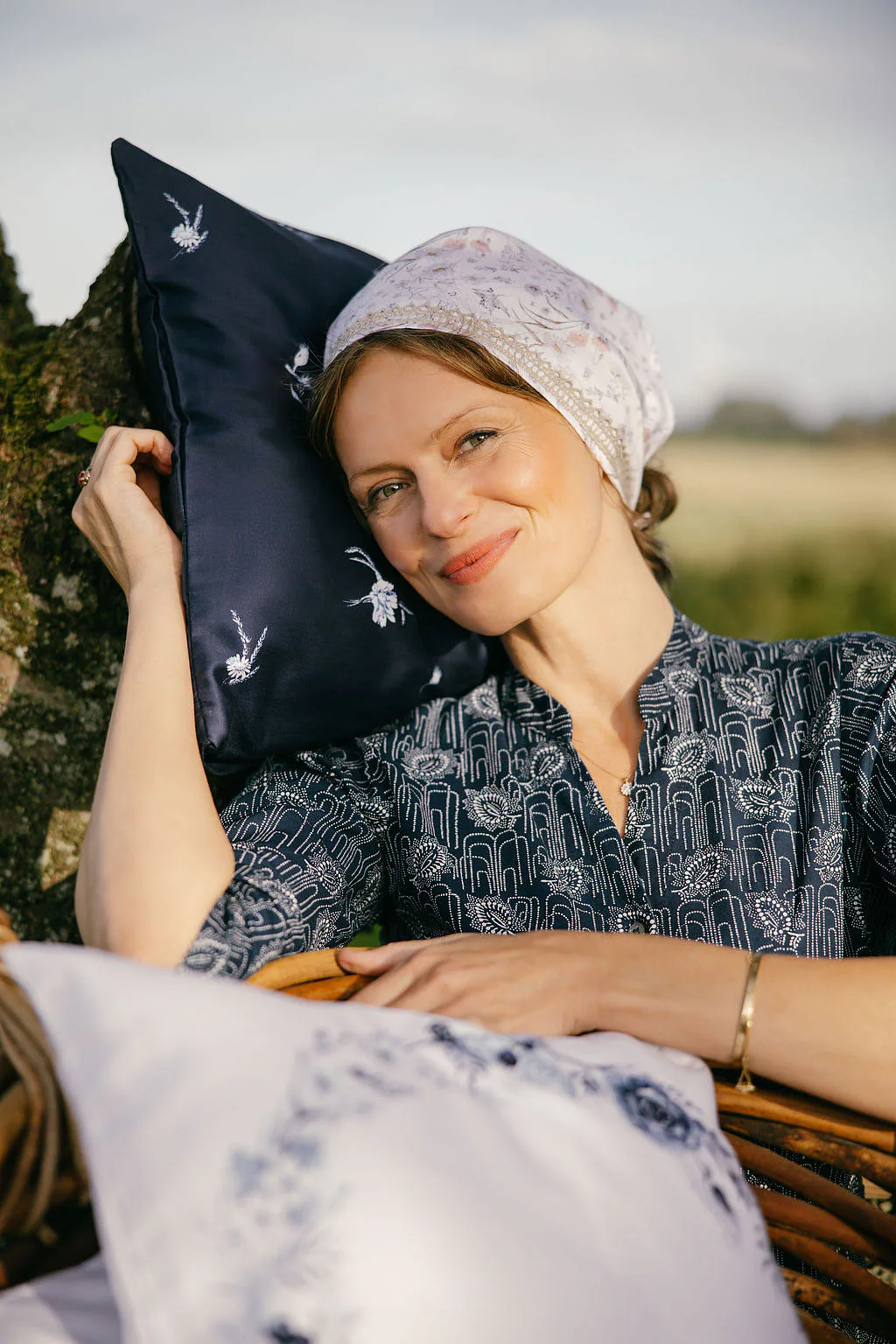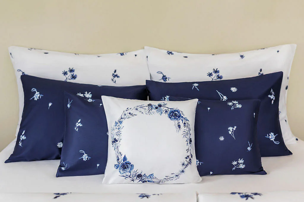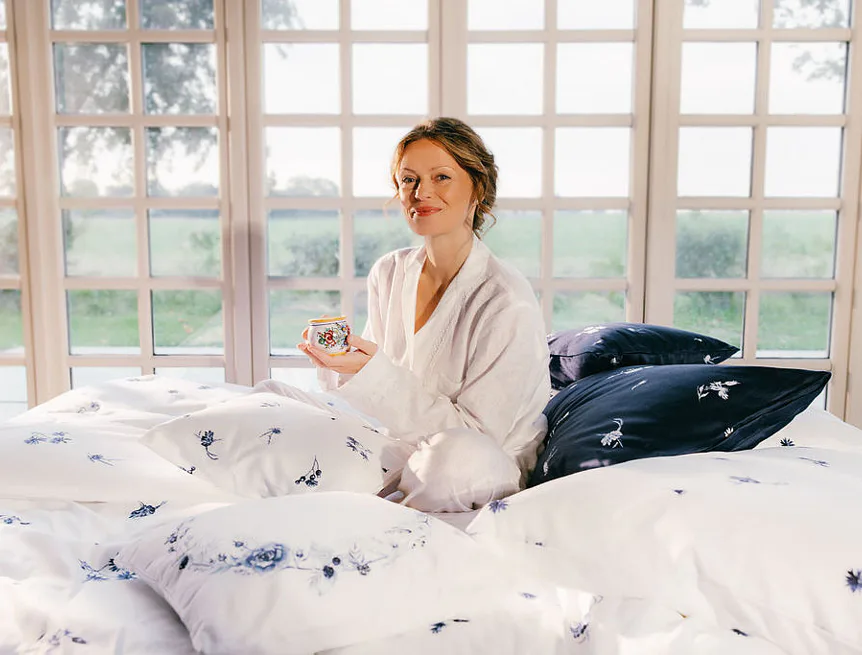 Indigo je něžně osobité. Zuzana ho vnímá jako svou srdeční linku: „Modrobílá kombinace je součástí mého rukopisu… nadčasově krásná, s odkazem tradice,“ od porcelánu po modrotisk. V interiéru přináší disciplínu i mír – čistou linii, kterou si zamilují chalupy i městské byty. Je to návrat k „něčemu, co je nám milé“, přenesený do současnosti s lehkostí saténu.