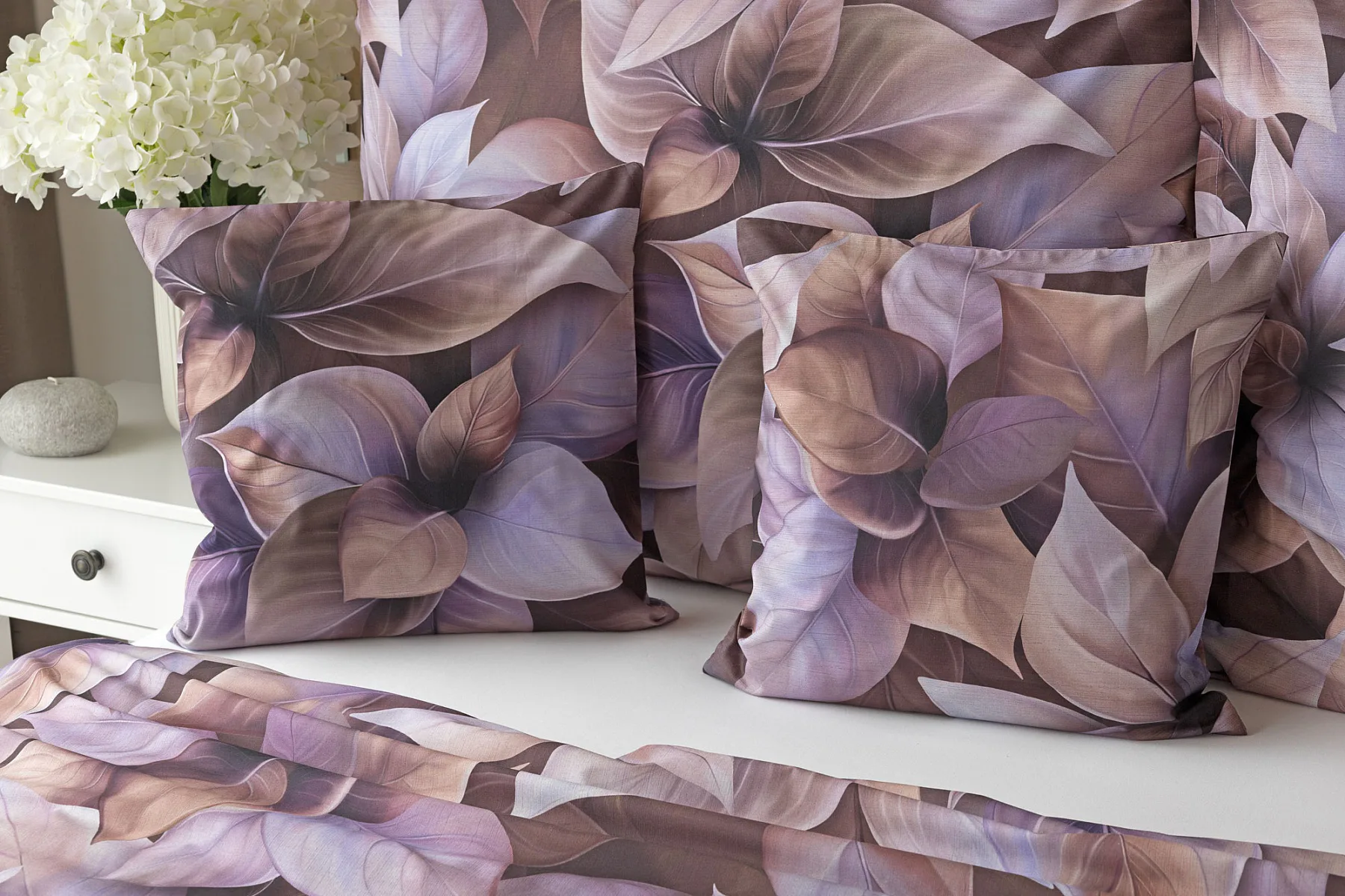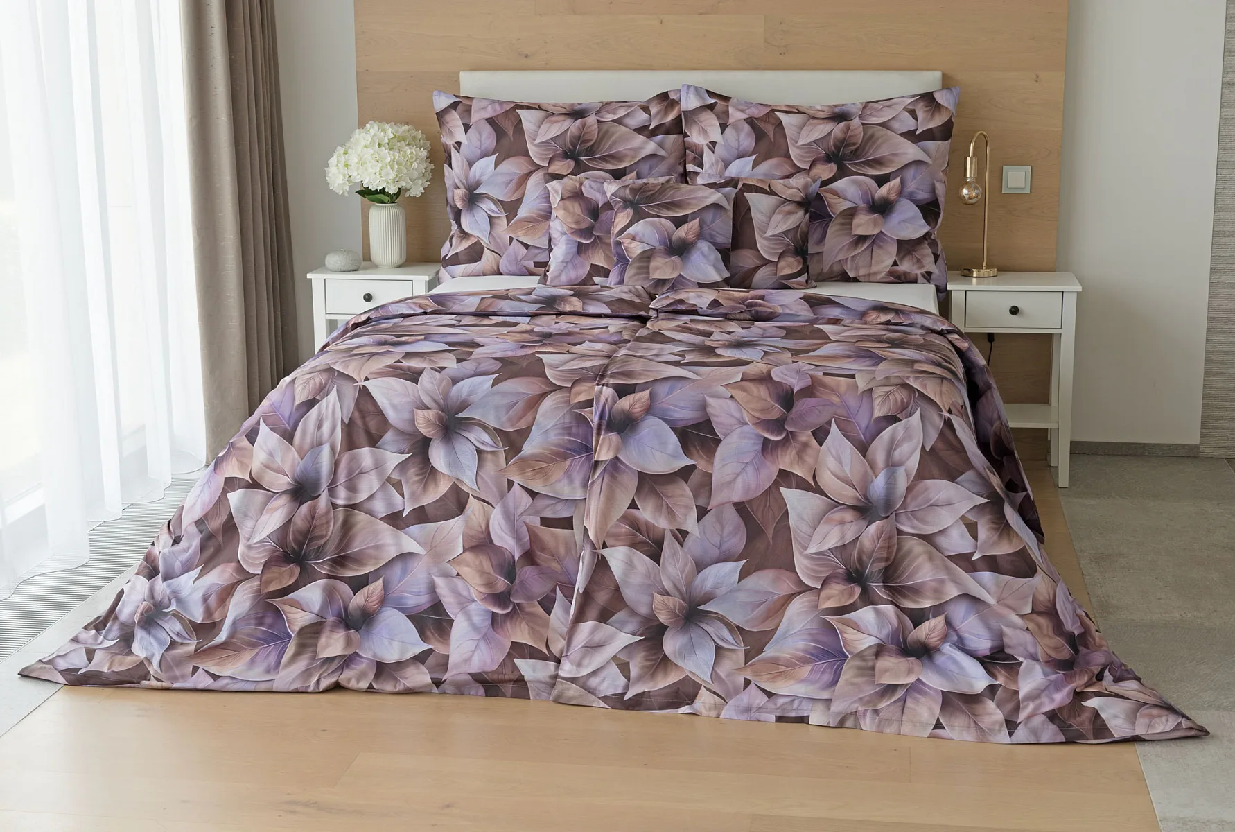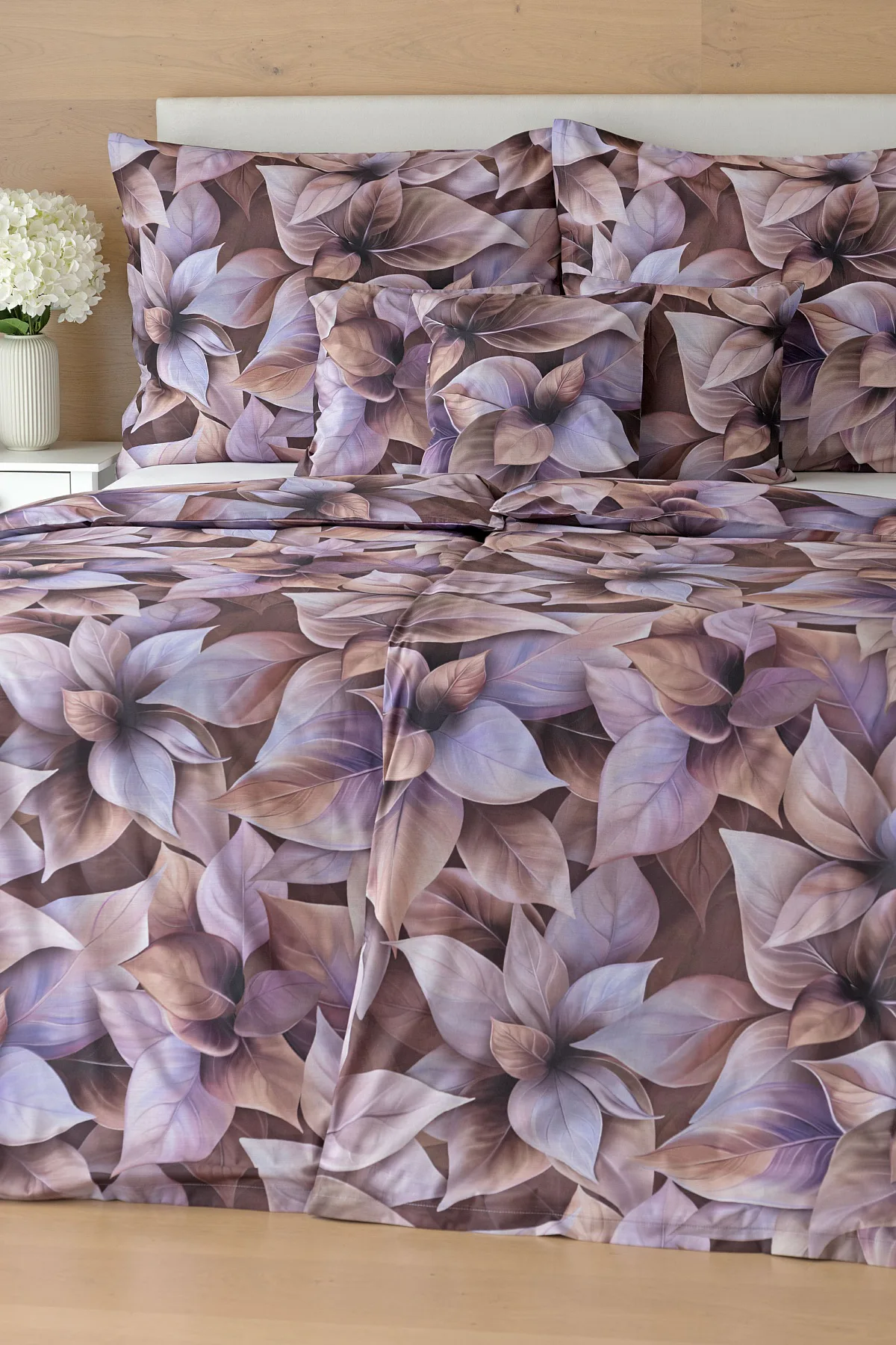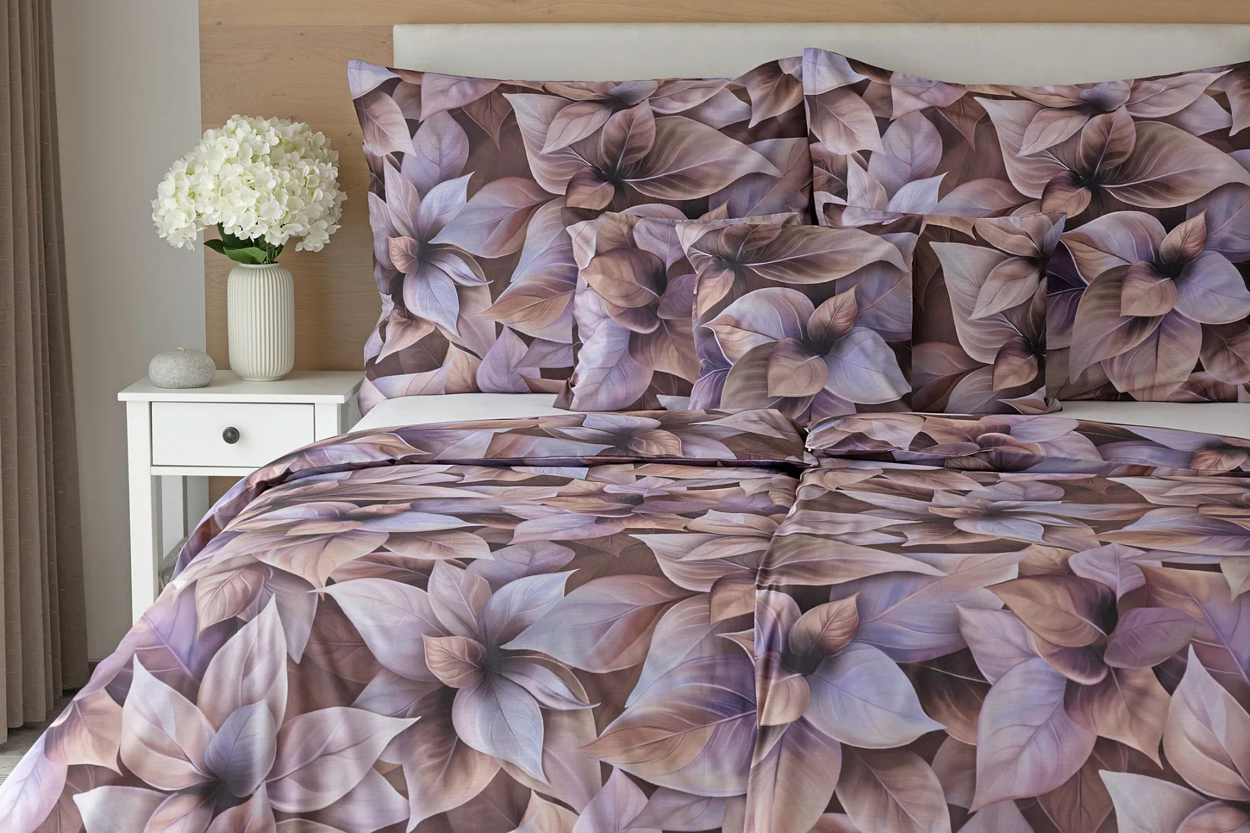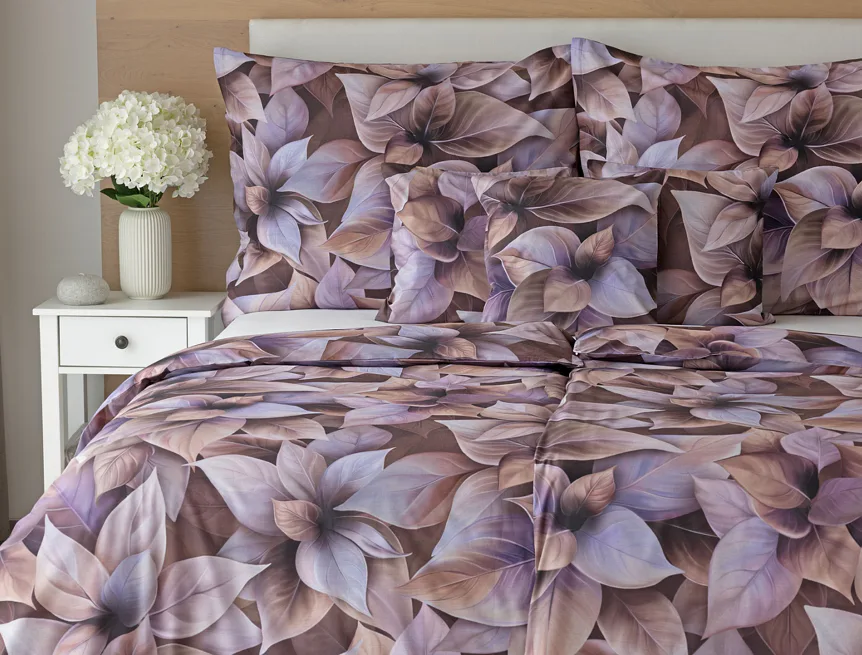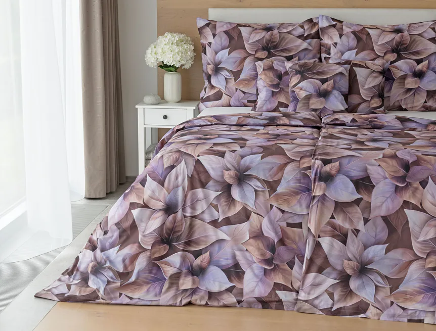 Vyšperkujte si ložnici s bavlněným povlečením Ines. Netradiční květinový vzor zachycuje motiv vánoční růže v trendy odstínech pudrové, fialové a hnědé. Originální motiv a dobře zvolená kombinace barev přináší jedinečný vzor, který můžete s radostí povléknout v každé roční době.