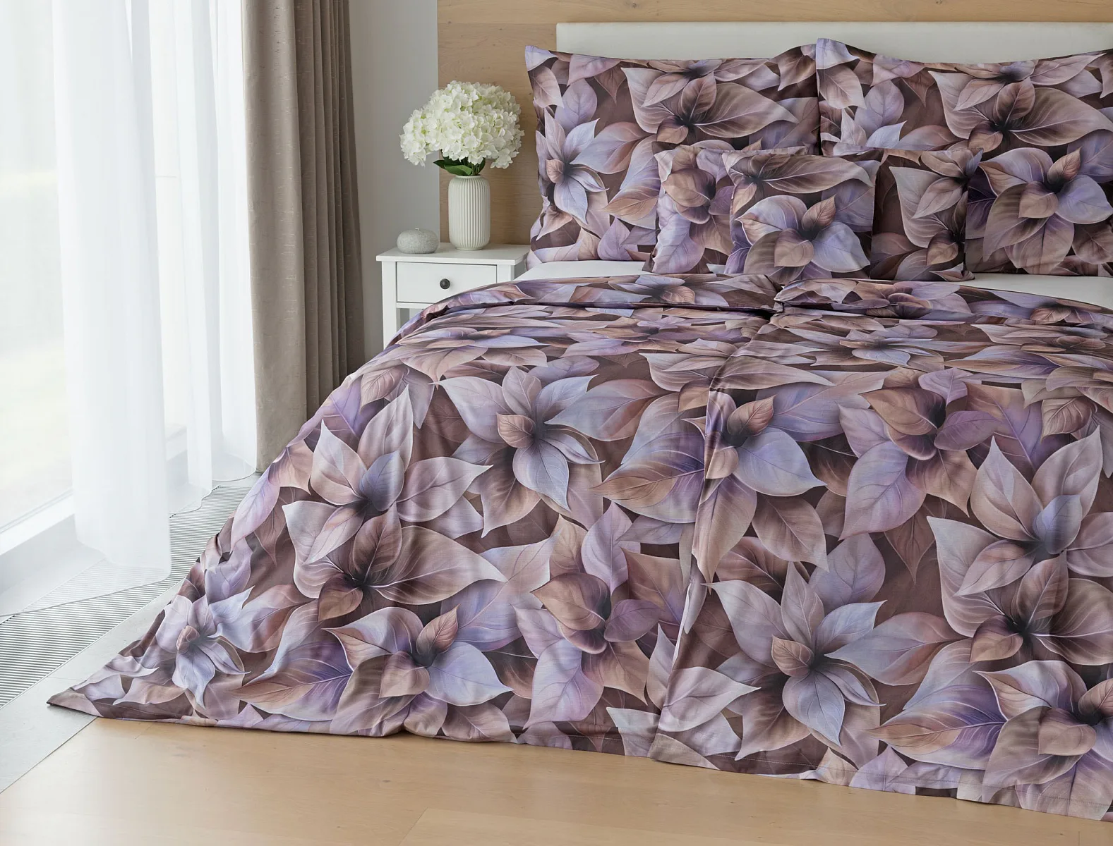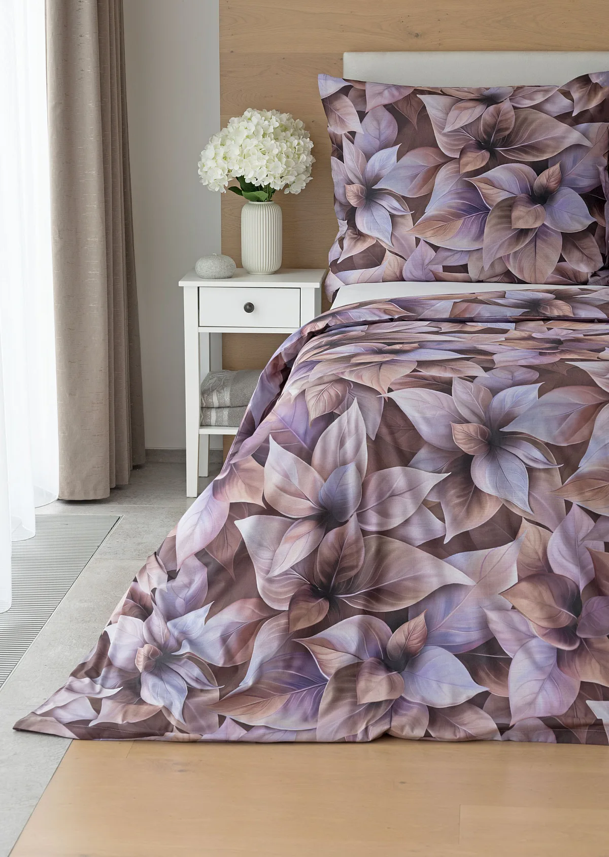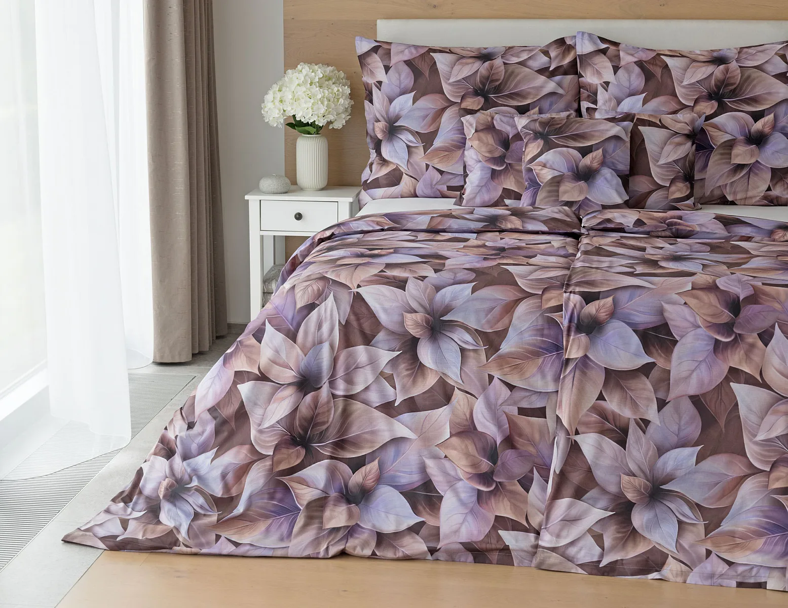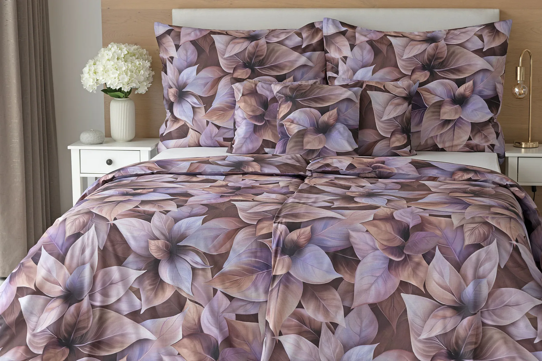 Vyšperkujte si ložnici s bavlněným povlečením Ines. Netradiční květinový vzor zachycuje motiv vánoční růže v trendy odstínech pudrové, fialové a hnědé. Originální motiv a dobře zvolená kombinace barev přináší jedinečný vzor, který můžete s radostí povléknout v každé roční době.