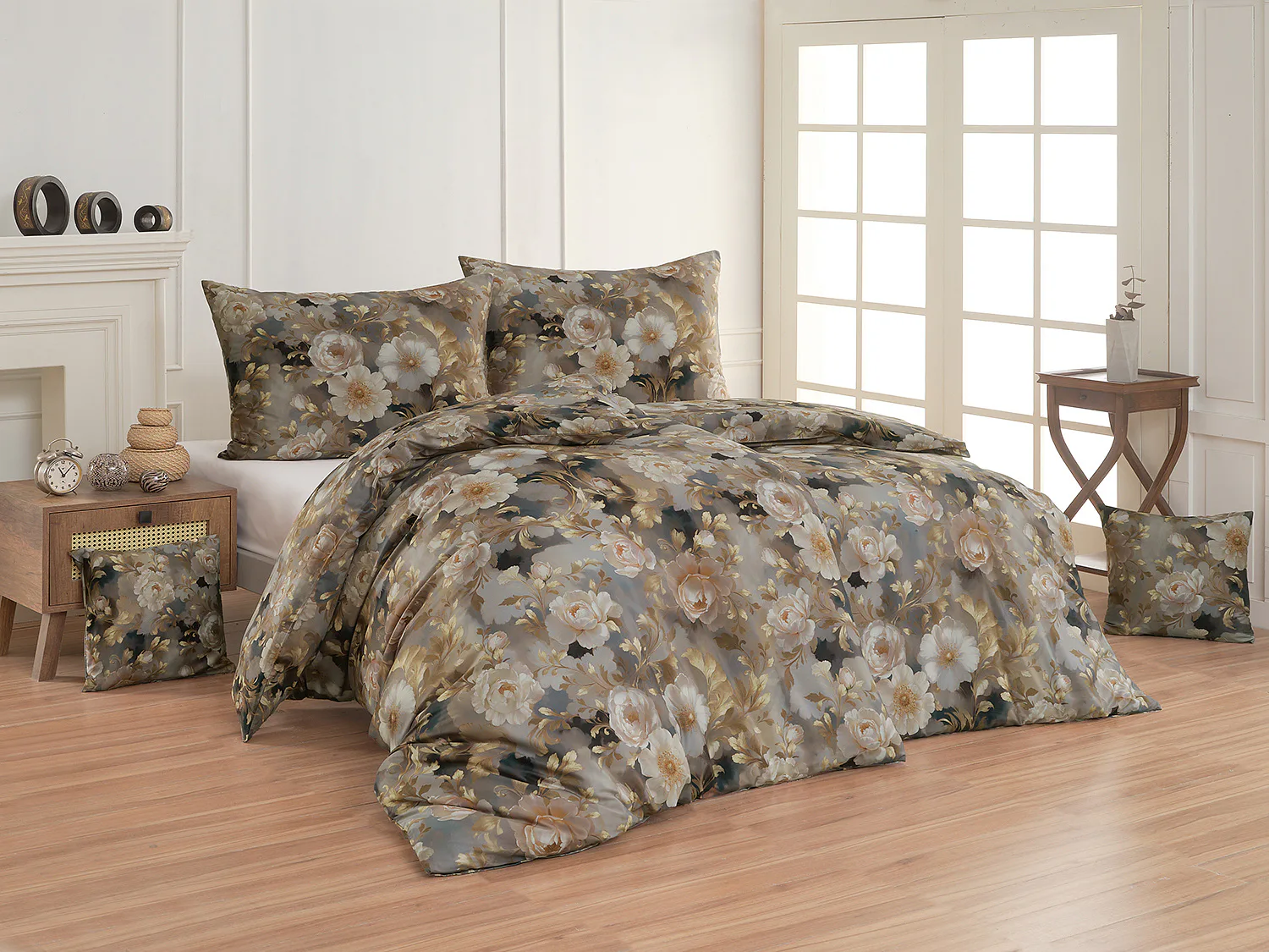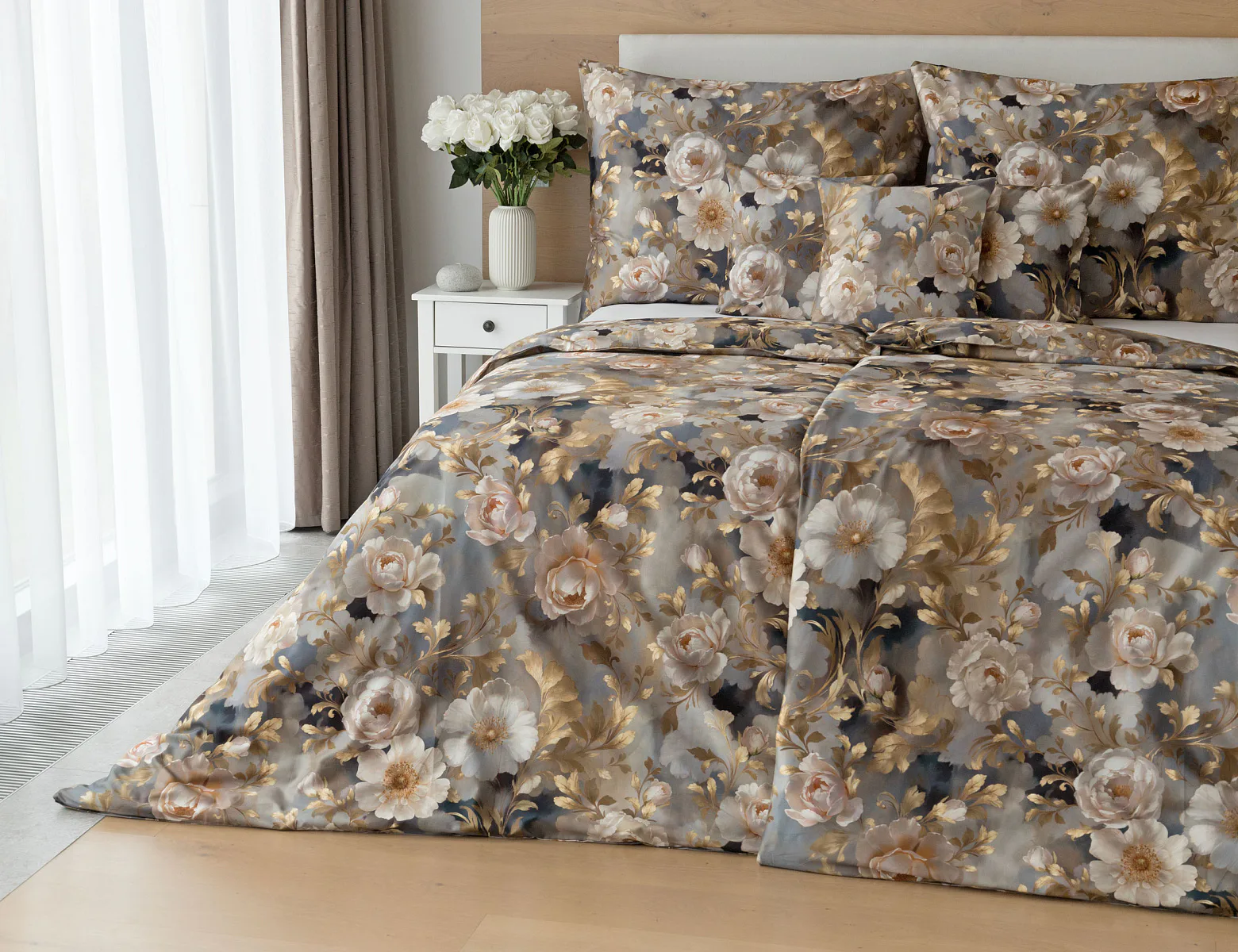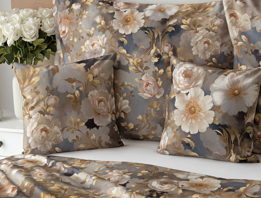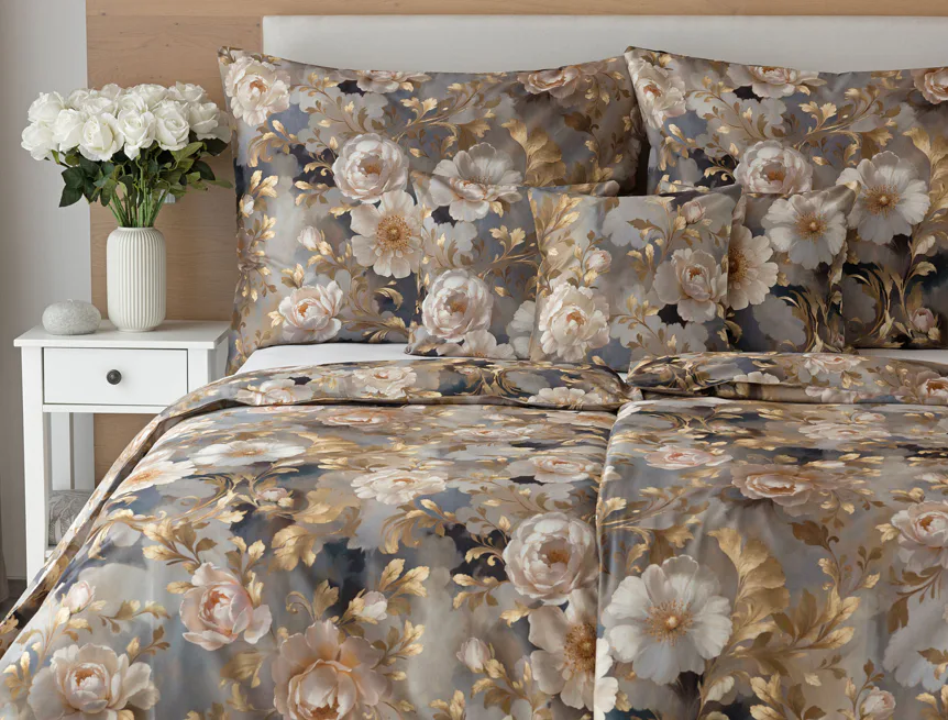 Saténové povlečení Ivelle vnese do vaší ložnice nádech zámecké atmosféry. Zlatavé tóny, které dominují tomuto jedinečnému květinovému vzoru, působí nesmírně elegantním dojmem, a promění každou ložnici v okouzlující oázu odpočinku. O precizní detail tištěného vzoru se postarala nejmodernější digitální technologie a hebký bavlněný satén propůjčil ložnímu povlečení decentní odlesk, který si tento vzor opravdu zaslouží.