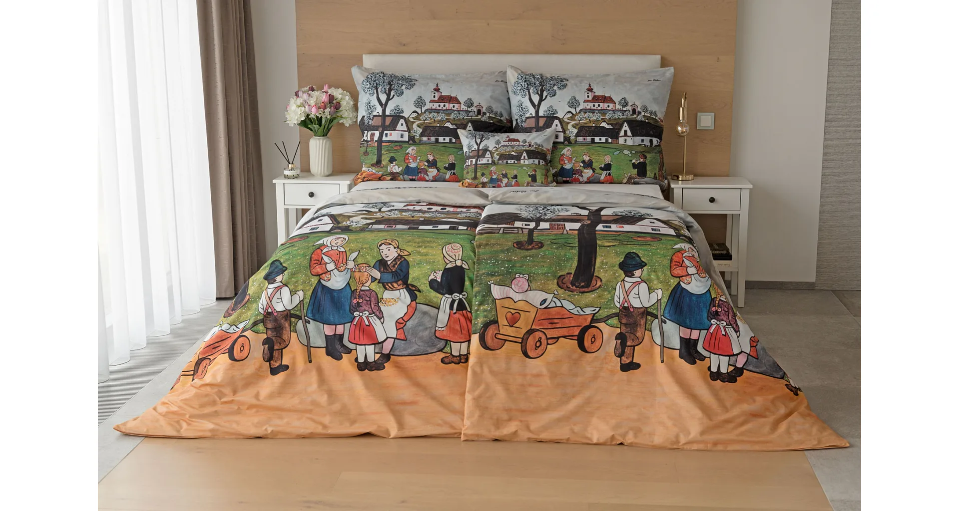 Pozvěte k sobě domů kouzlo nestárnoucích kreseb Josefa Lady, které jsou pro mnohé z nás symbolem dětství, harmonického venkova a české tradice. Svěží jarní atmosféru do vaší ložnice vnese bavlněné povlečení Jaro na vsi.