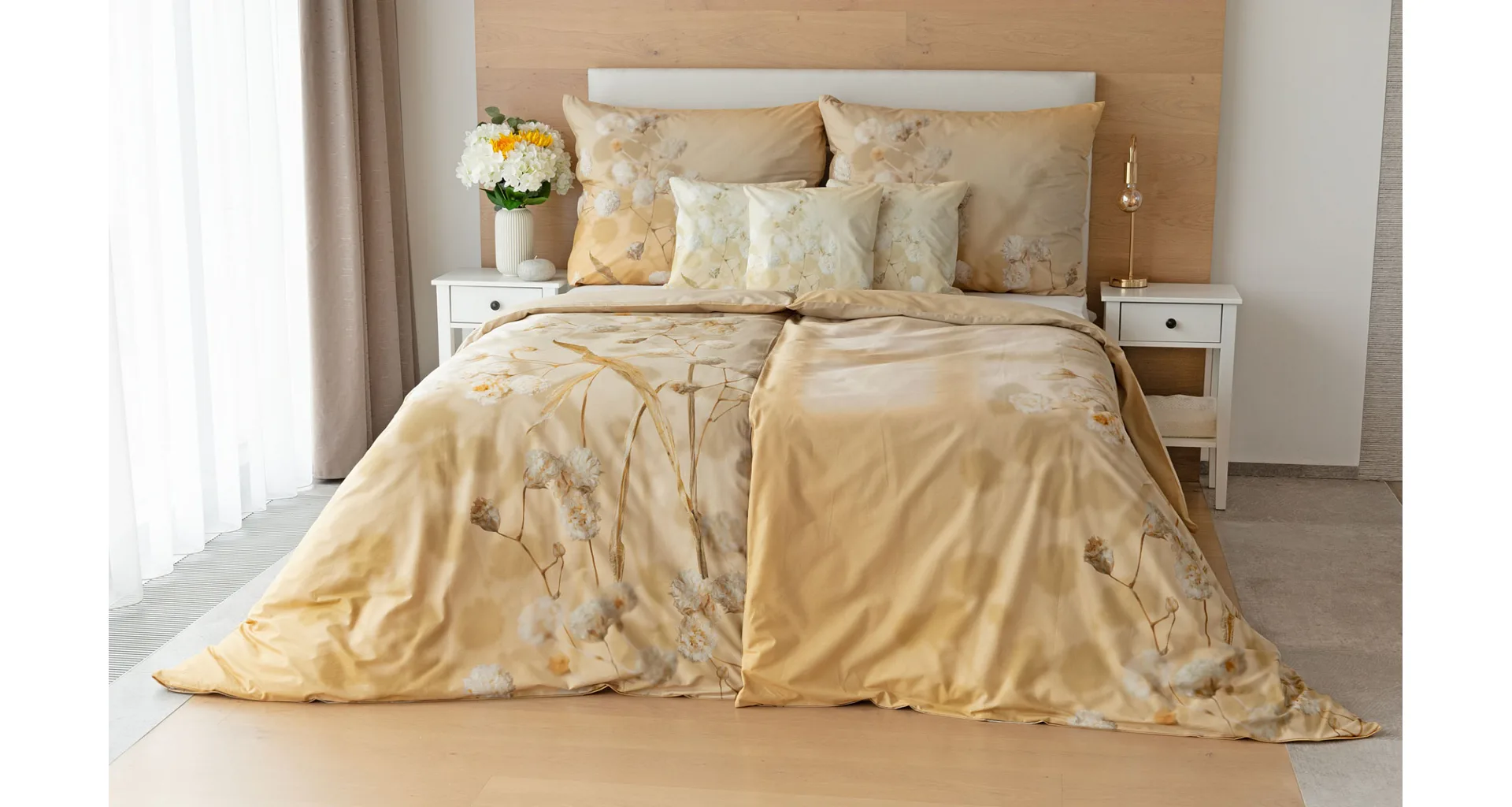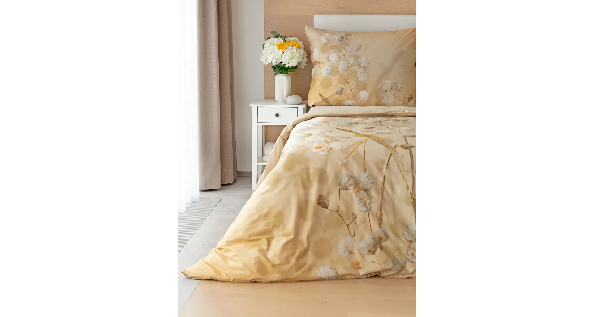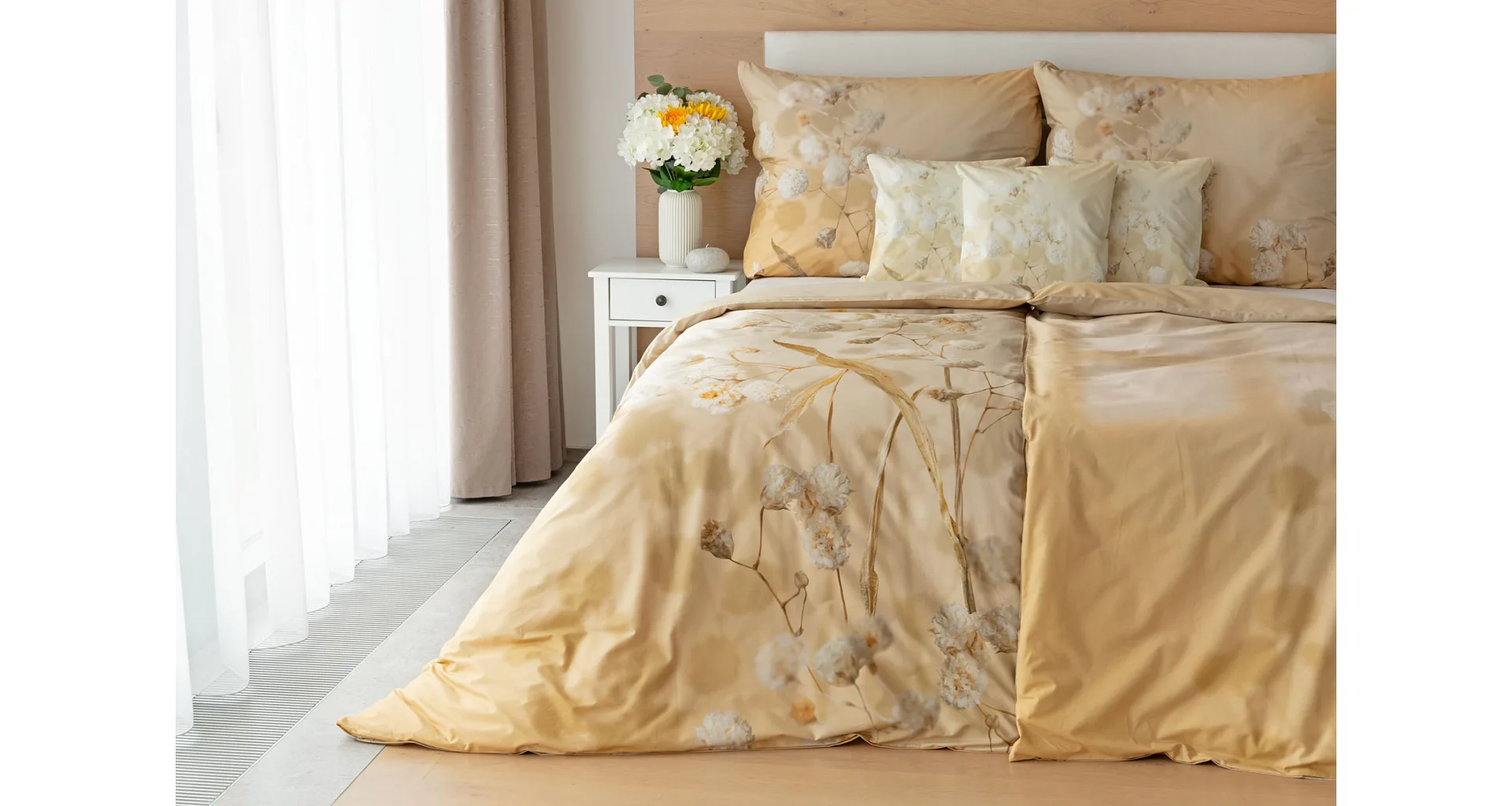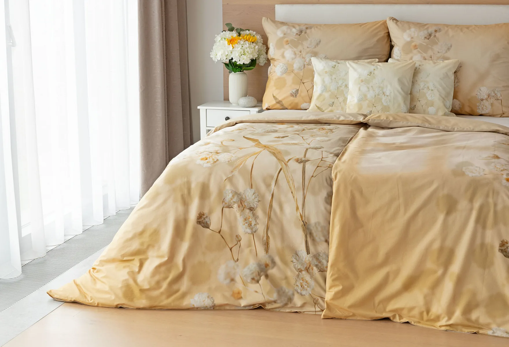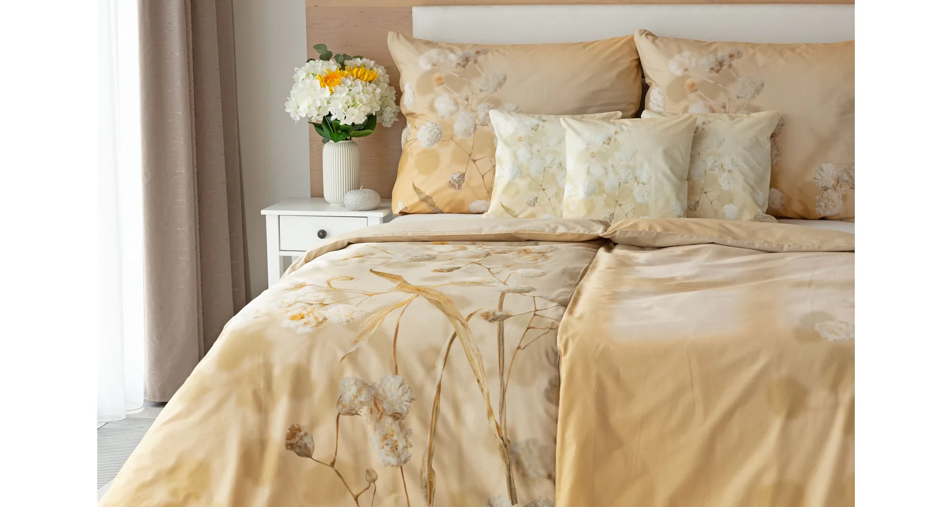 Luxusní bavlněné povlečení Julia úplně svádí k zachumlání. Něžný florální motiv v hřejivých krémových a béžových tónech se bude vyjímat v každém interiéru.