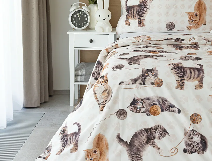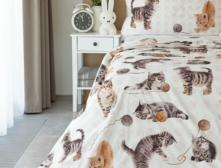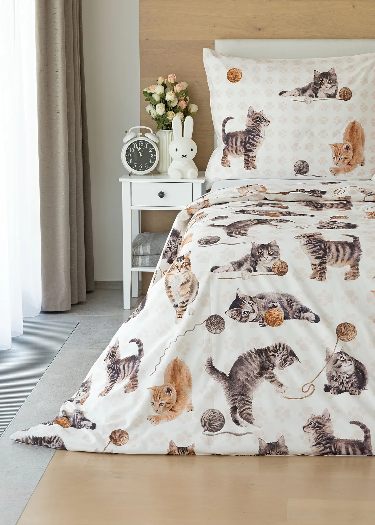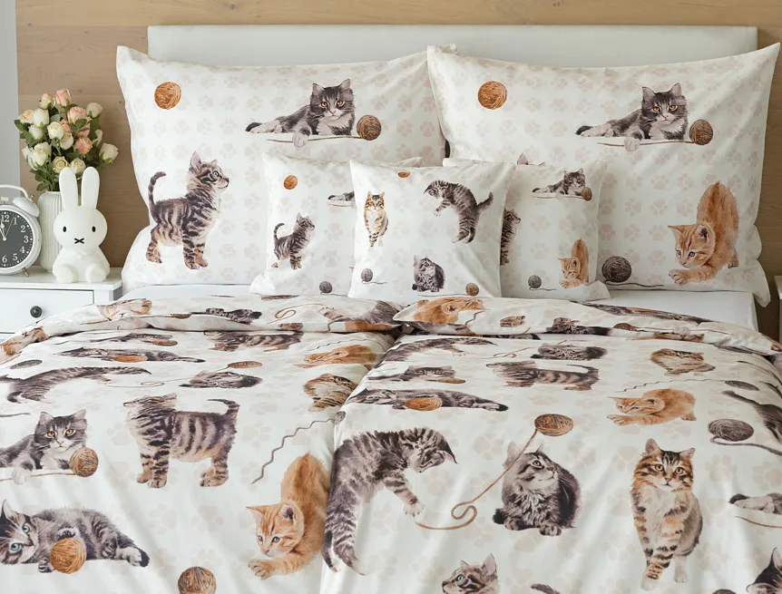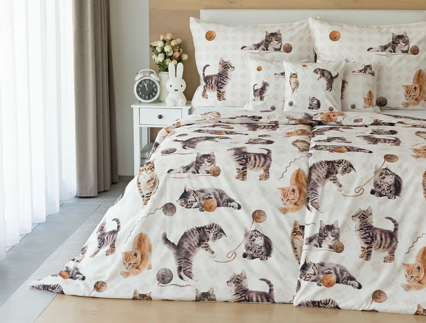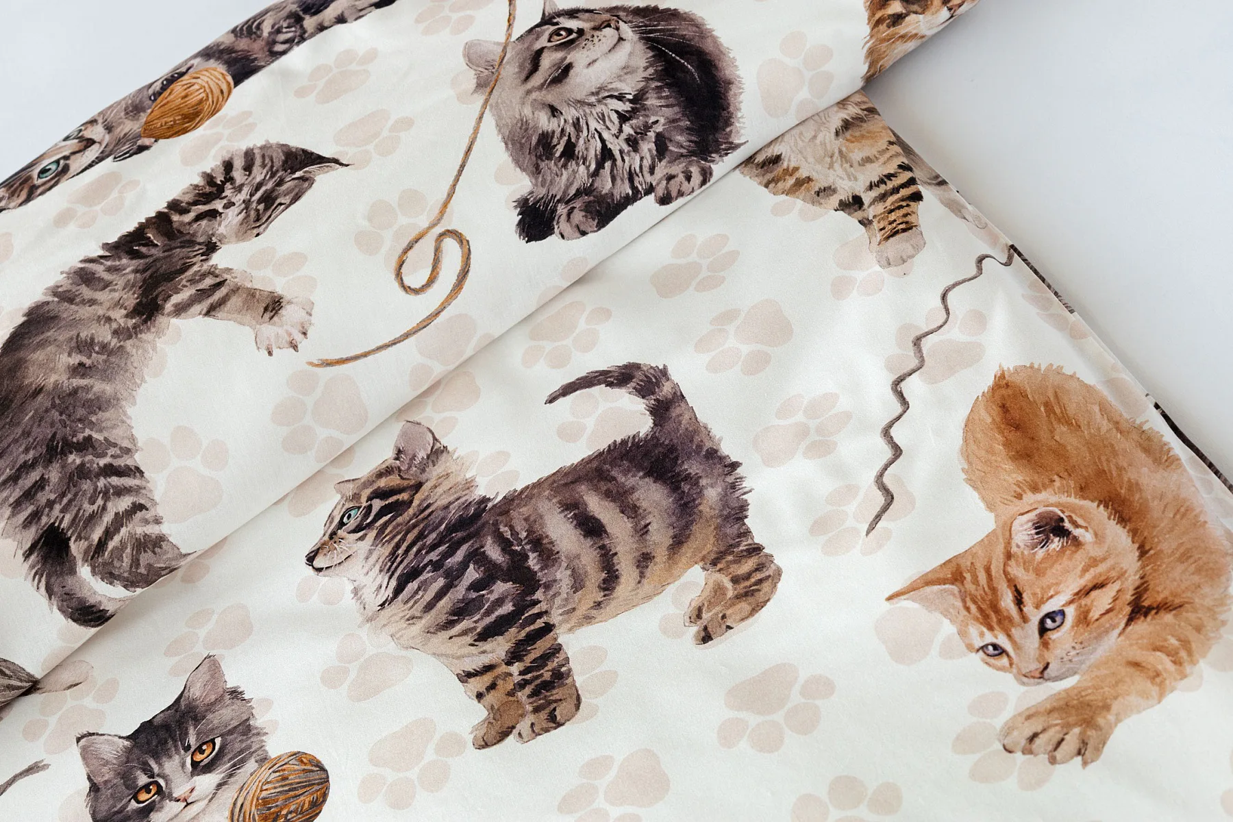 Bavlněné povlečení Kočky je jako stvořené pro všechny, kteří milují tyto čtyřnohé lísavé mazlíčky! Hravý design je díky neutrální kombinaci barev vhodný do dívčího i chlapeckého pokojíku. O jejich spokojený spánek se postará hebká prvotřídní bavlna.